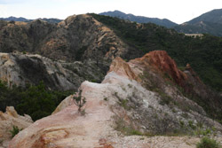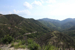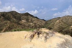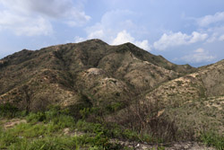 After reaching the peak, the trail turns into gravel but continues fairly flat for a while. Locals have made tents and chairs to enjoy the cooler shade up here.