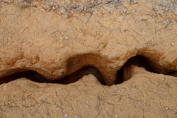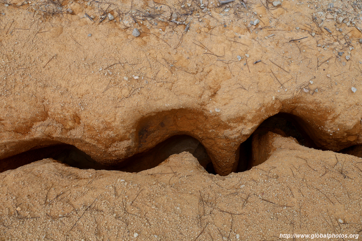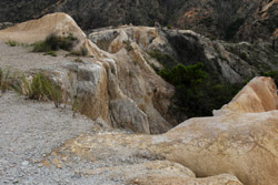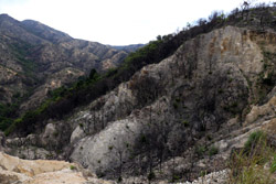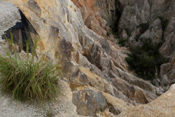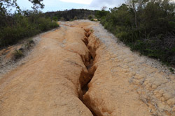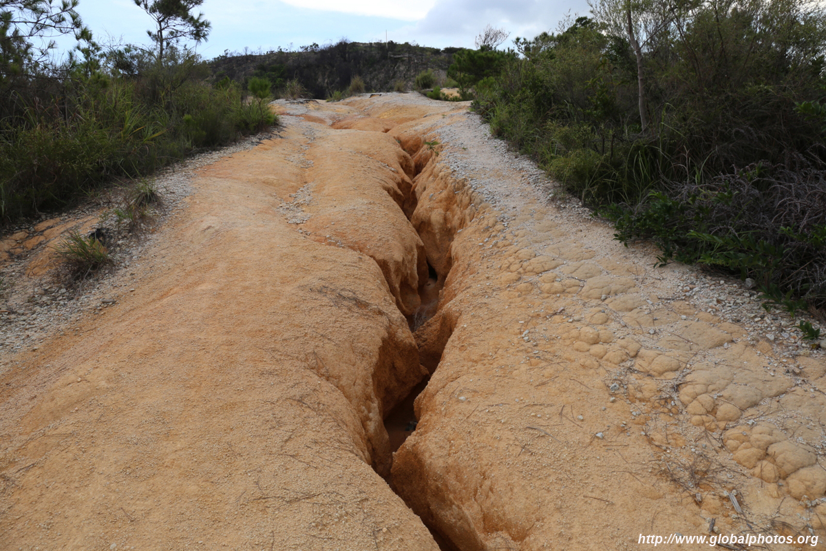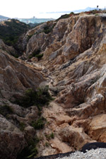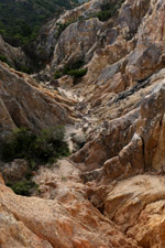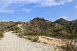 The path down is partially paved although gravel and sand at different parts. There are no signs but it is only one direction down.