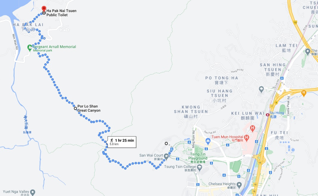 Behind Leung King Estate in Tuen Mun is a paved access road that leads up to one of Hong Kong's most unique geological features, the canyons at Por Lo Shan. While the ascent is not too difficult and had no steps, most parts are not shaded and hence can get quite uncomfortable under the summer heat.