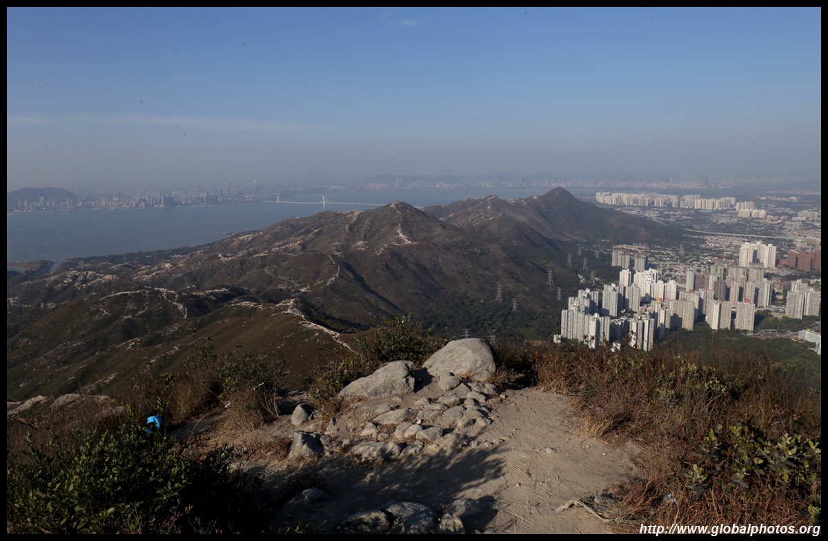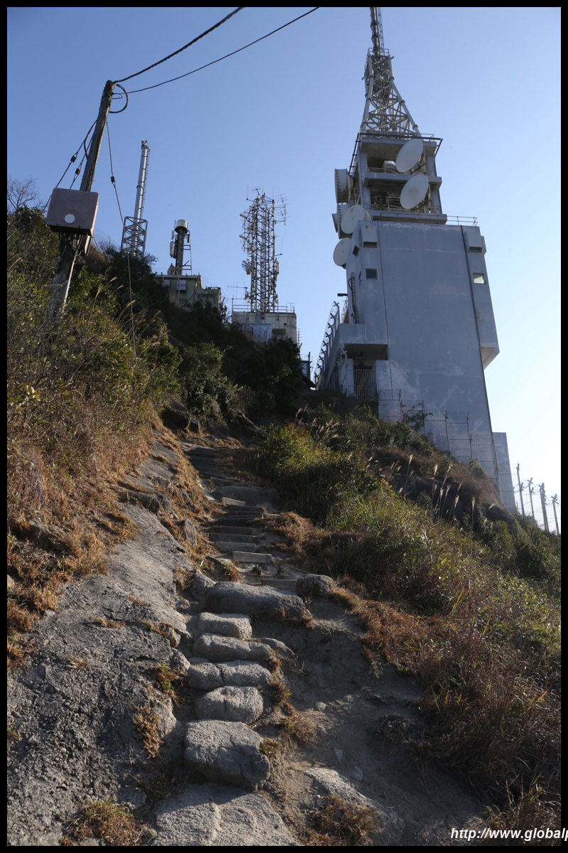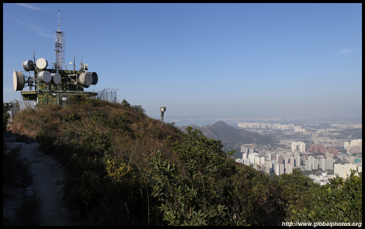 This gruelling path ends at yet another pavilion, a fairly odd sight at these stretches. Turn right and head towards the radio transmitting station first. Looking northeast towards Tuen Mun, Tin Shui Wai, and Yuen Long far beyond.