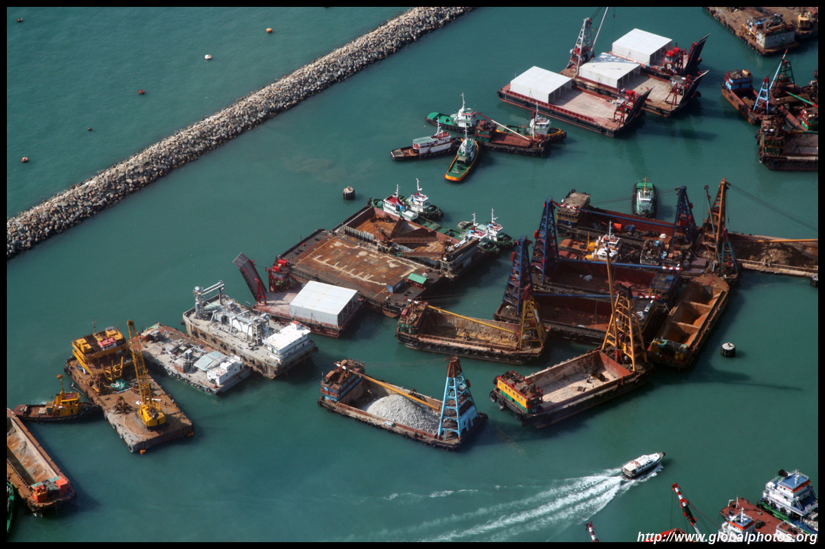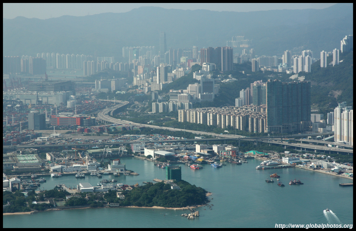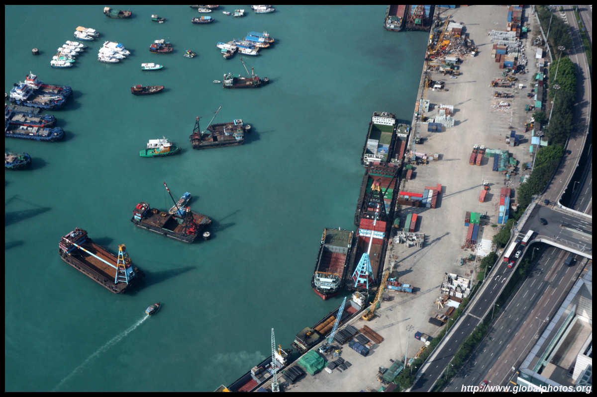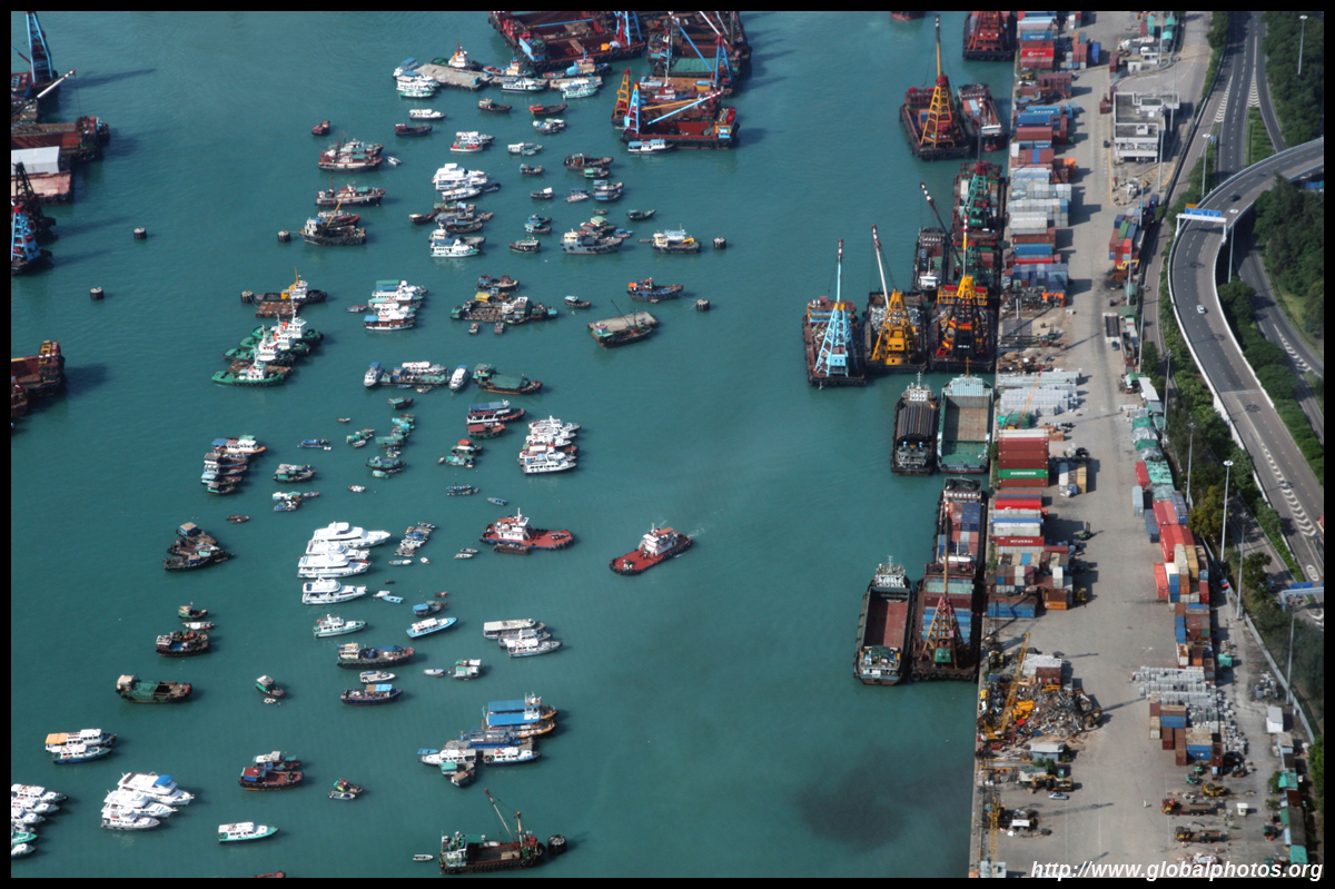 Looking north, many boats are parked just outside the typhoon shelter. In the distance is the container port, which some lawmakers think would be better off being redeveloped into residences.