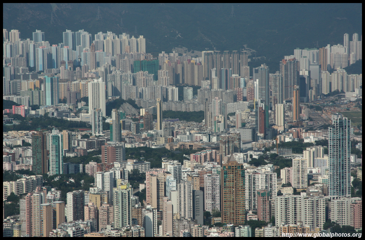 The famed Lion Rock rises in the distance.