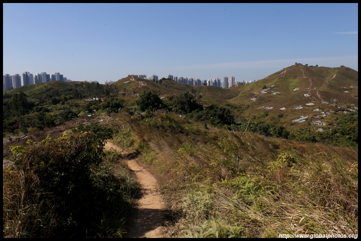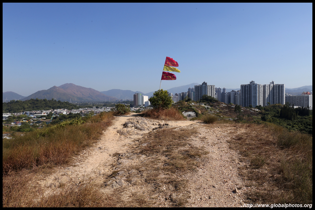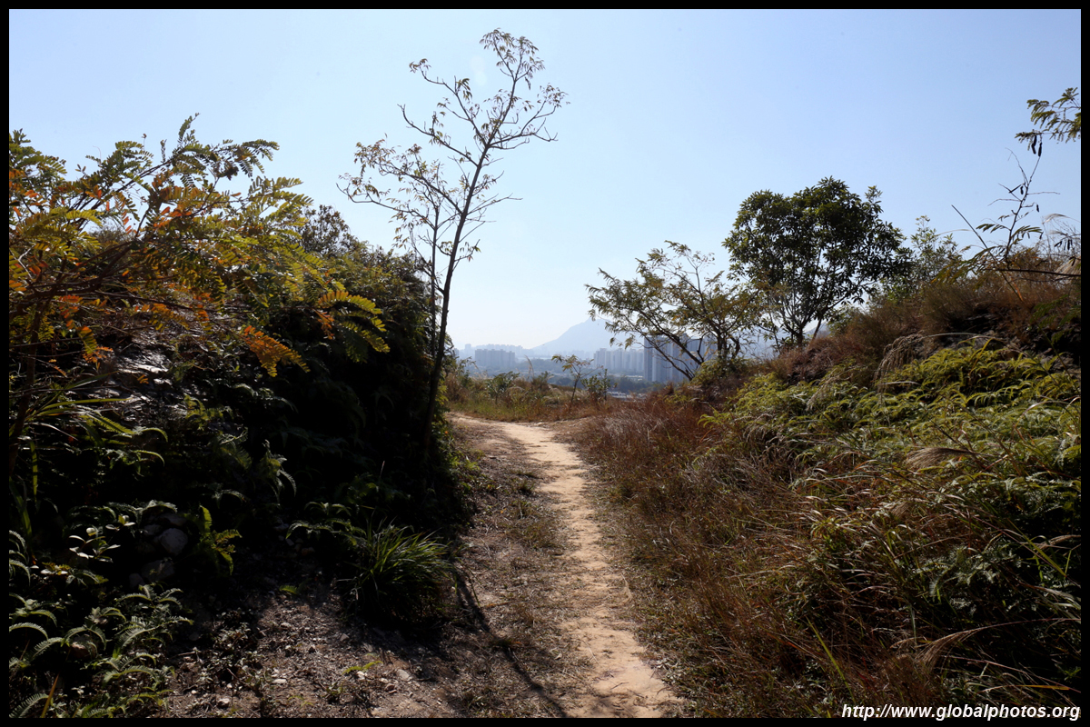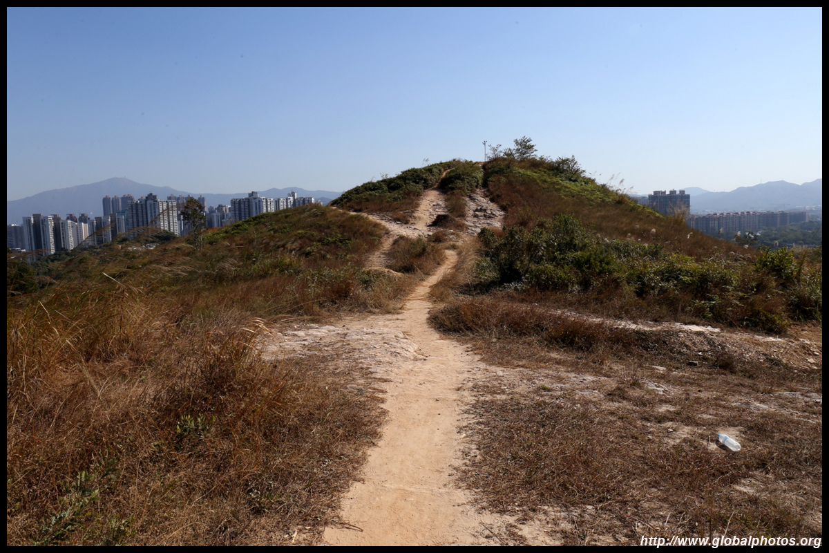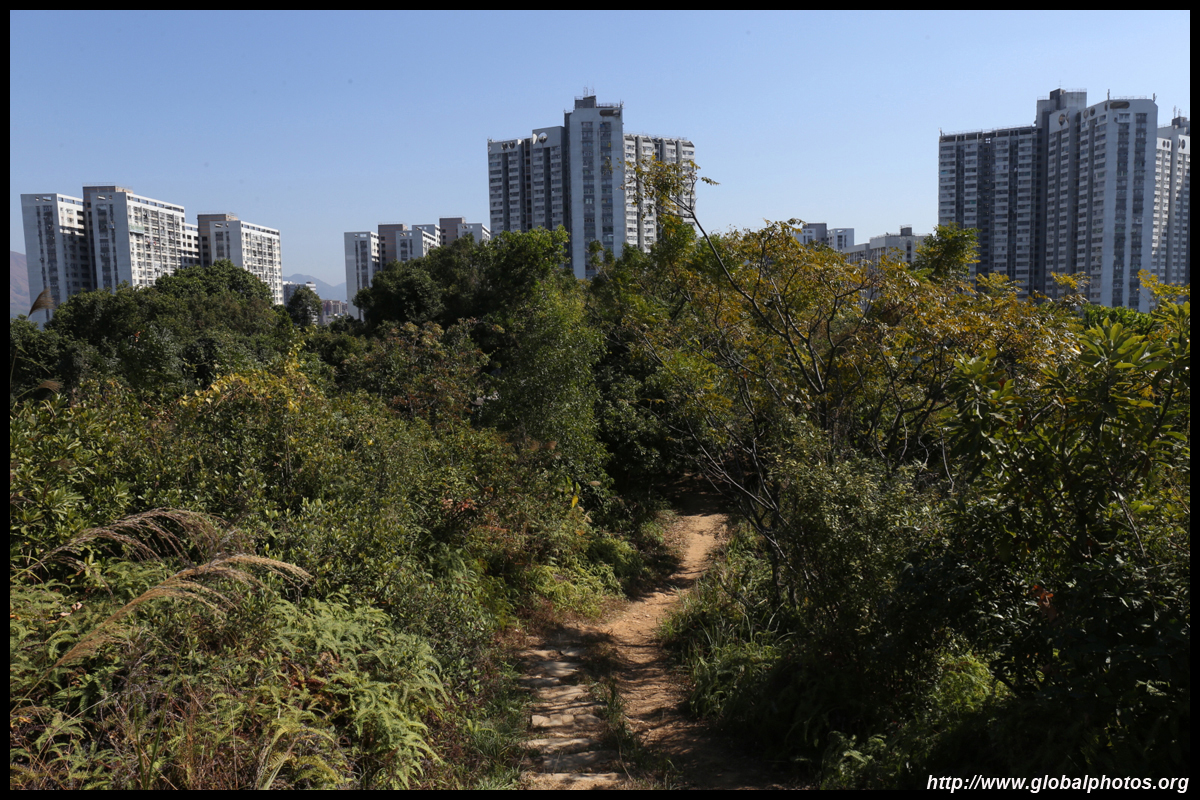 Past the protest signs, continue north along Long Ping Road. To your right are the towers of Long Ping Estate. To the left, you will see a path cross a bridge and twist into the countryside. Take it and head uphill. This would be the beginning of a series of hills.