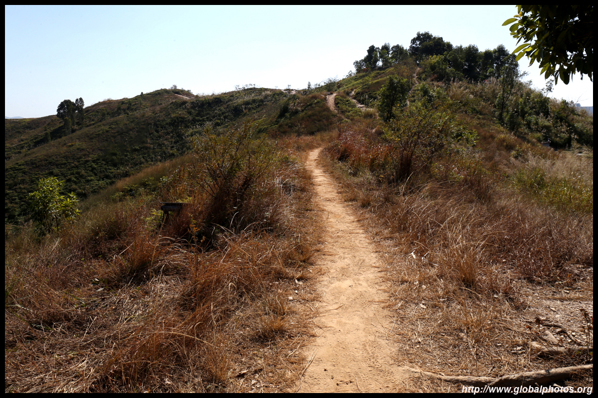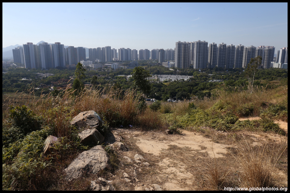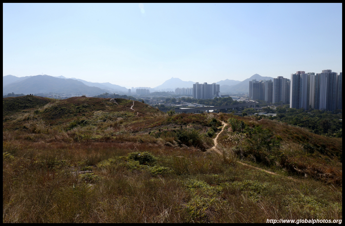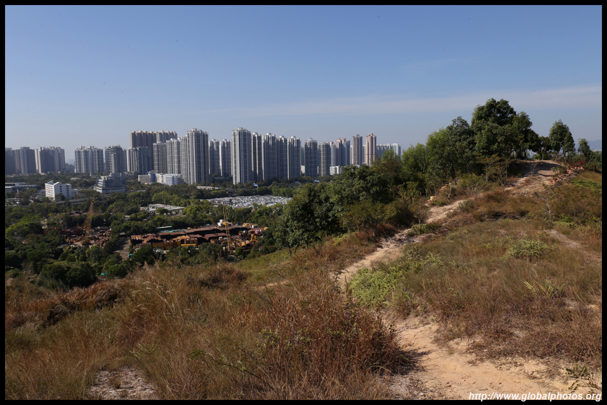Past the protest signs, continue north along Long Ping Road. To your right are the towers of Long Ping Estate. To the left, you will see a path cross a bridge and twist into the countryside. Take it and head uphill. This would be the beginning of a series of hills.