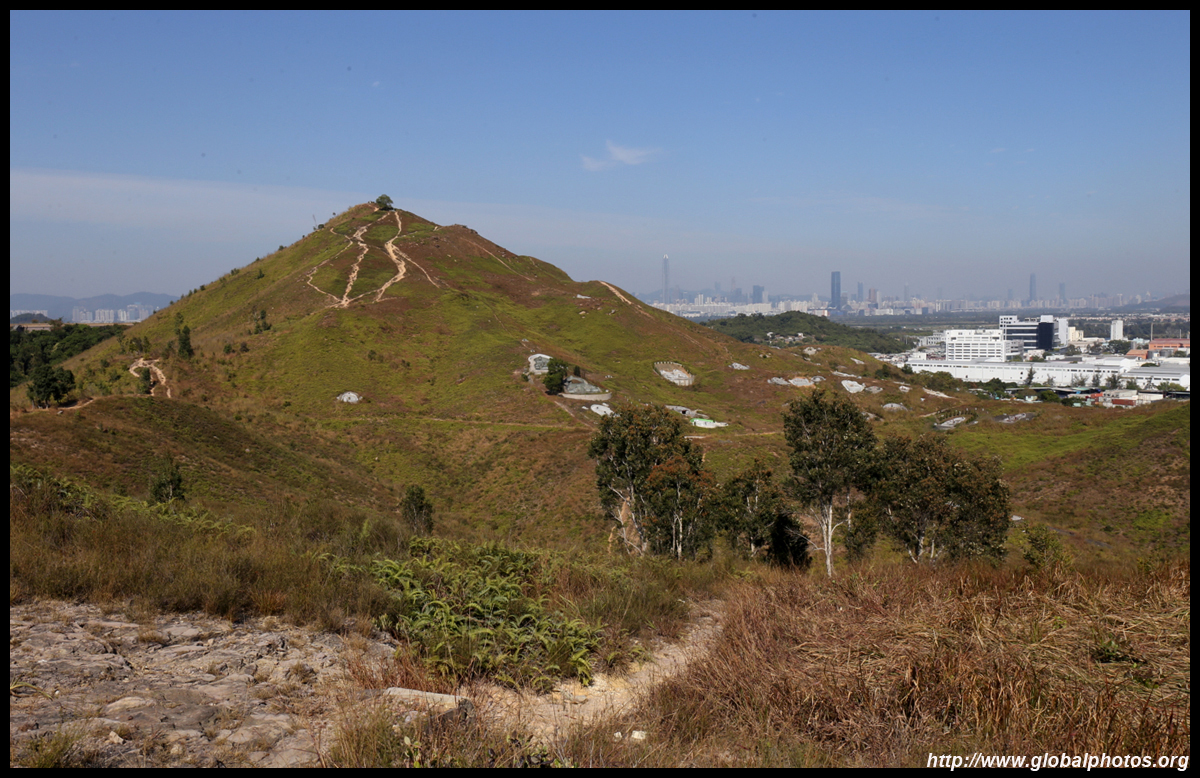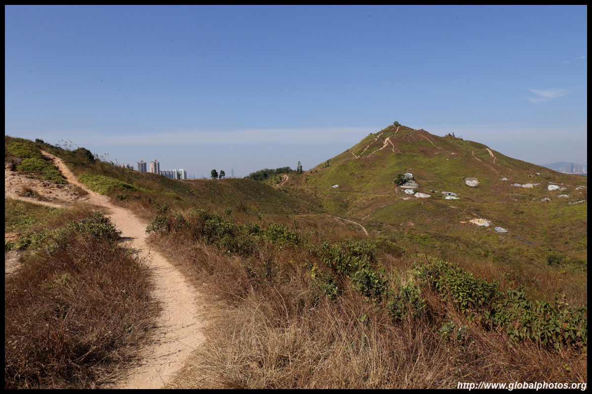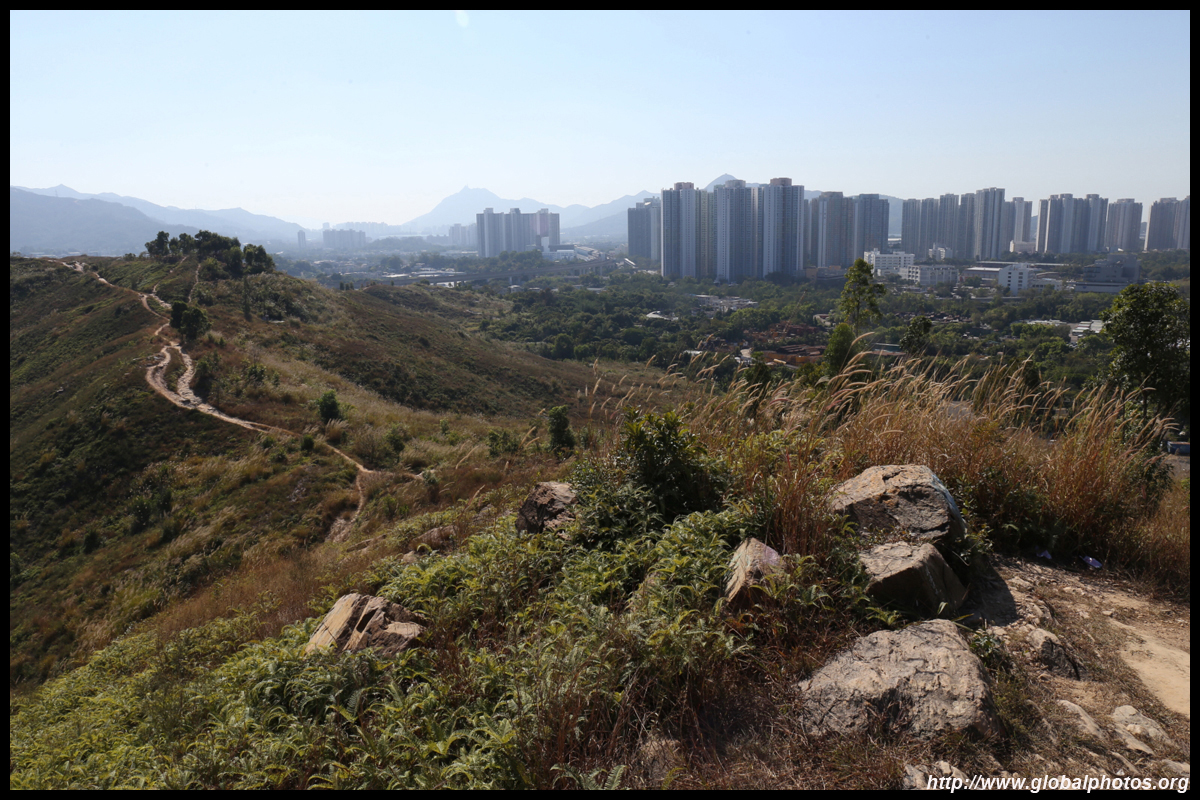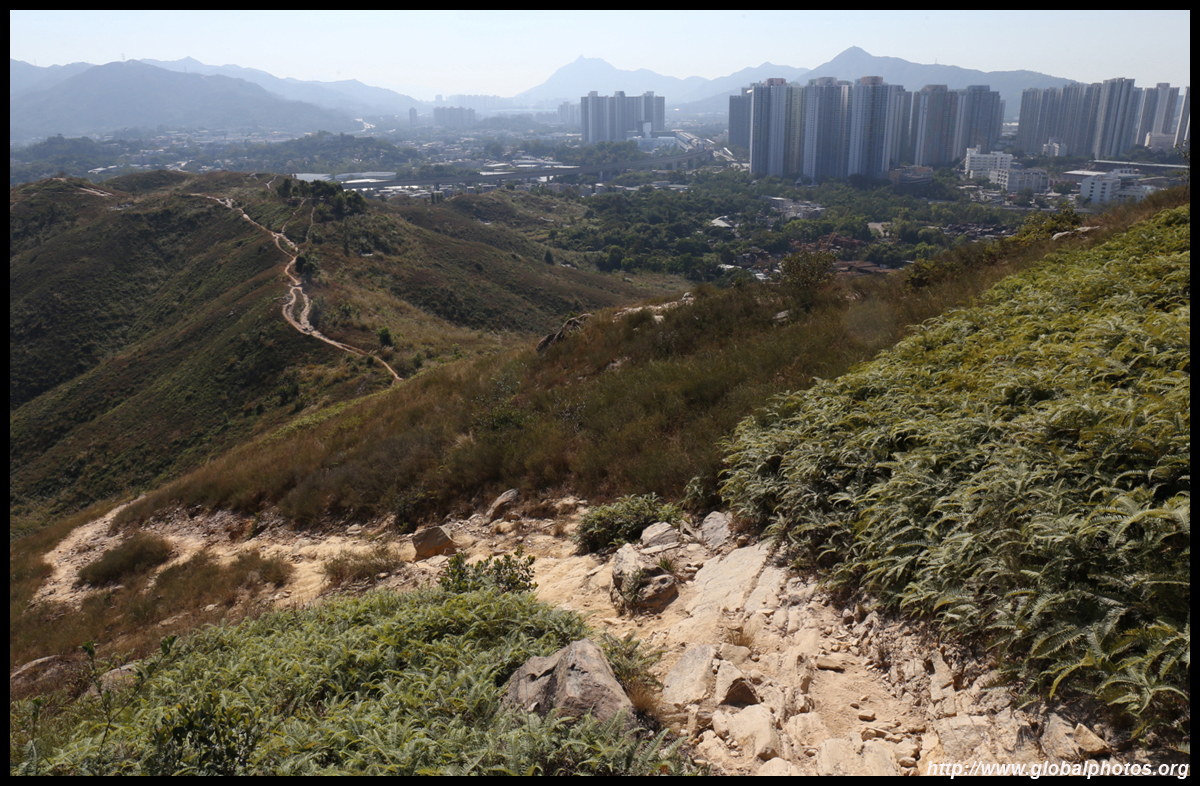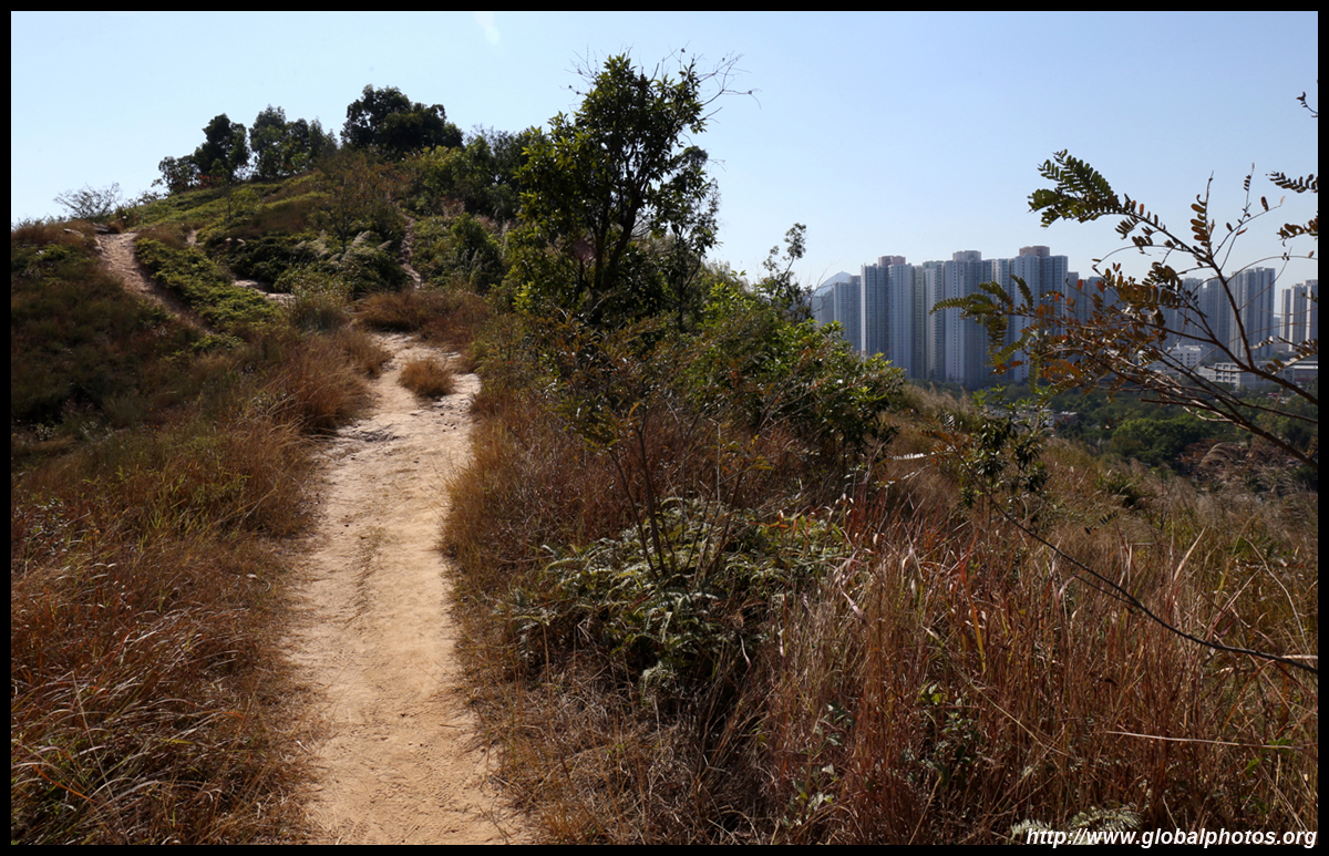 Past the protest signs, continue north along Long Ping Road. To your right are the towers of Long Ping Estate. To the left, you will see a path cross a bridge and twist into the countryside. Take it and head uphill. This would be the beginning of a series of hills.
