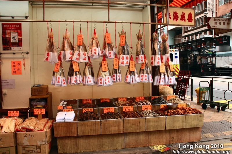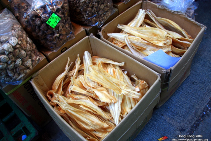Despite the change, the dried seafood market is still alive and well along Des Voeux Road West. Once selling just salted fish, growing affluence has broadened their range to other higher end dried seafood products such as abalone and shark's fin.