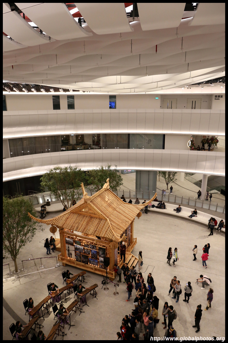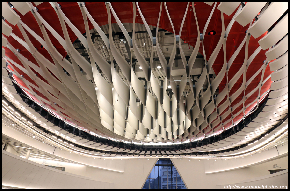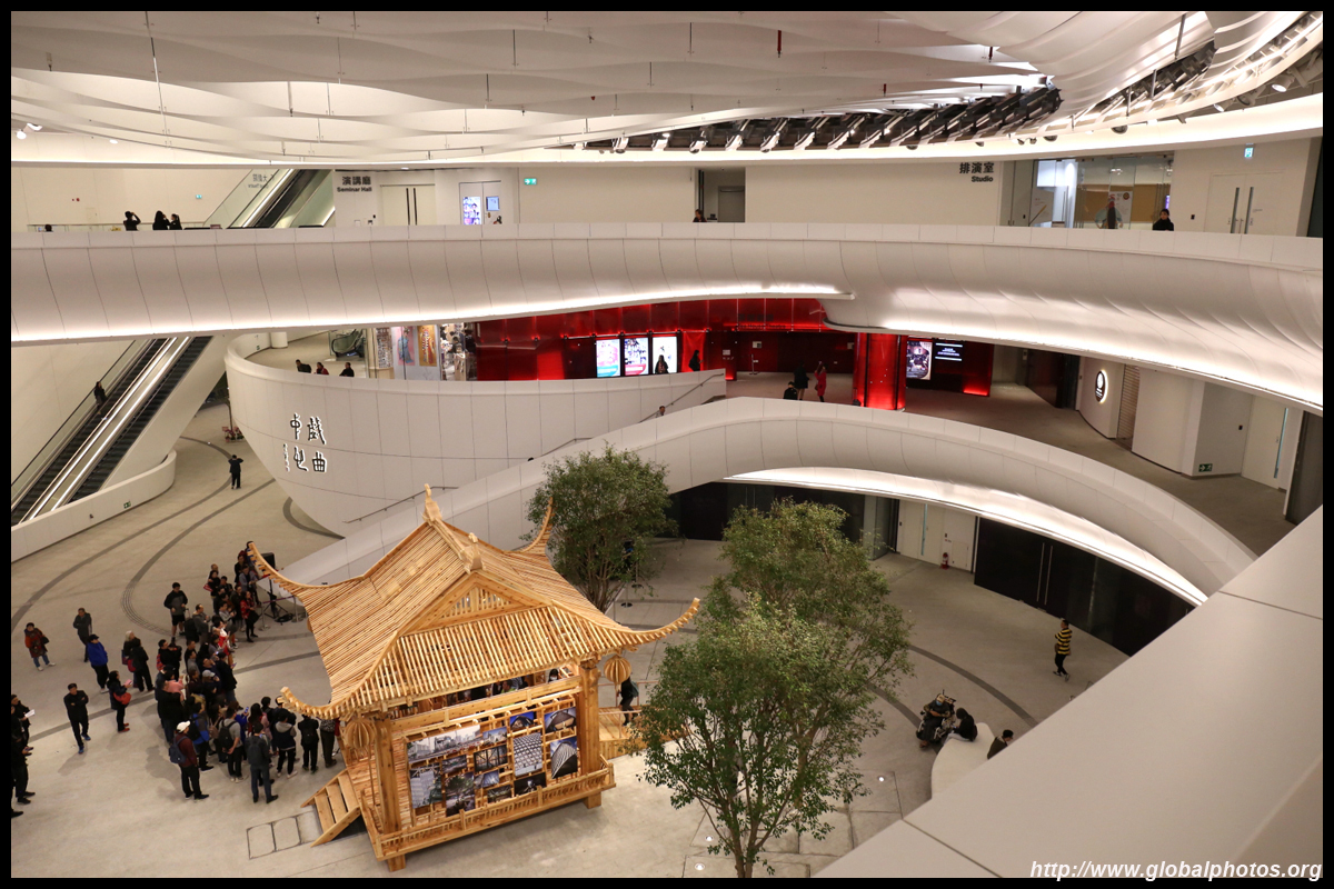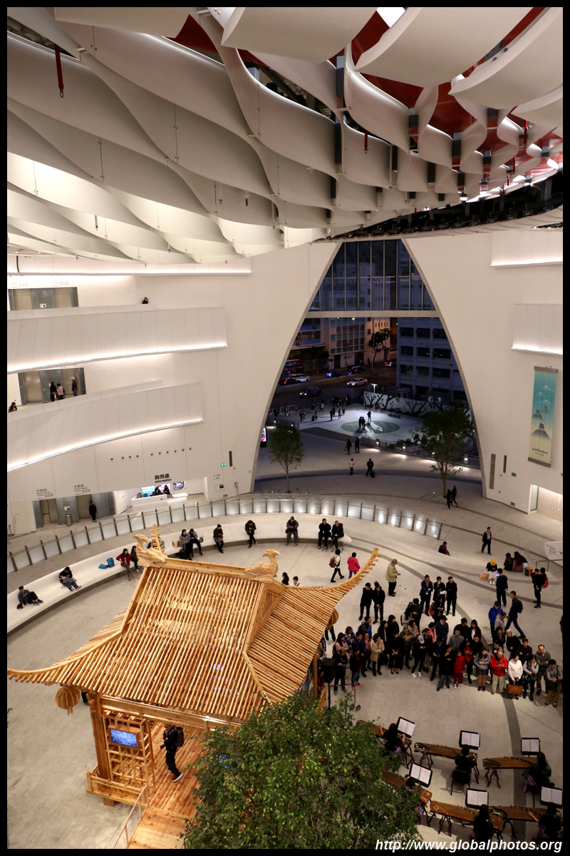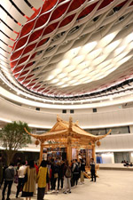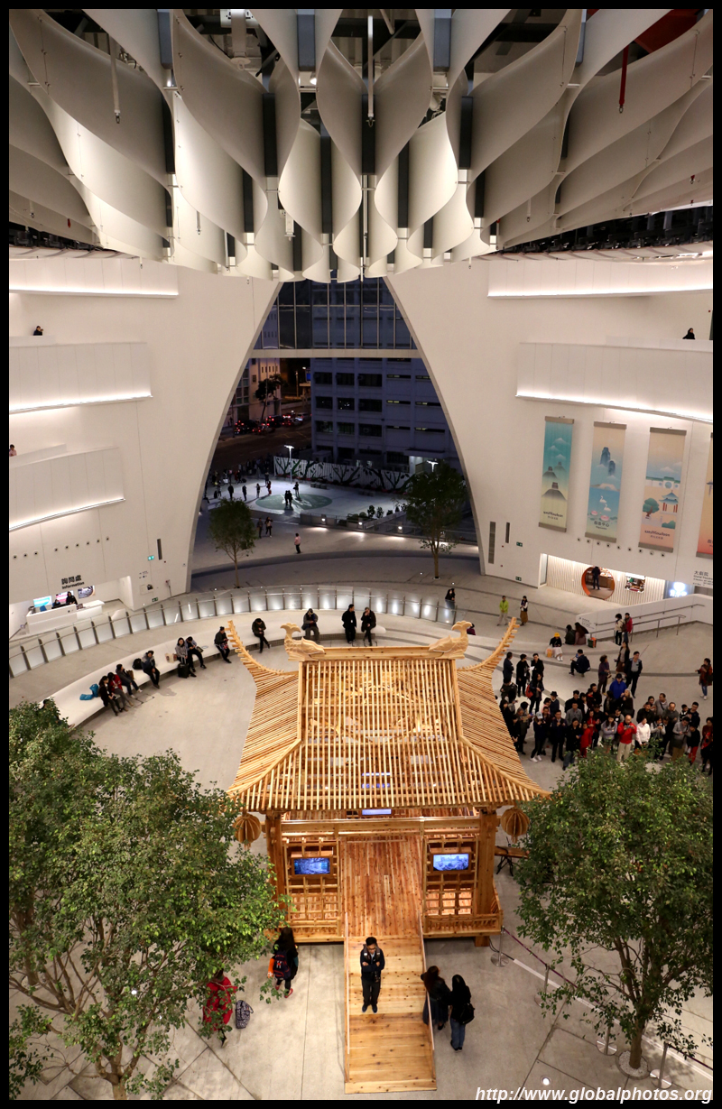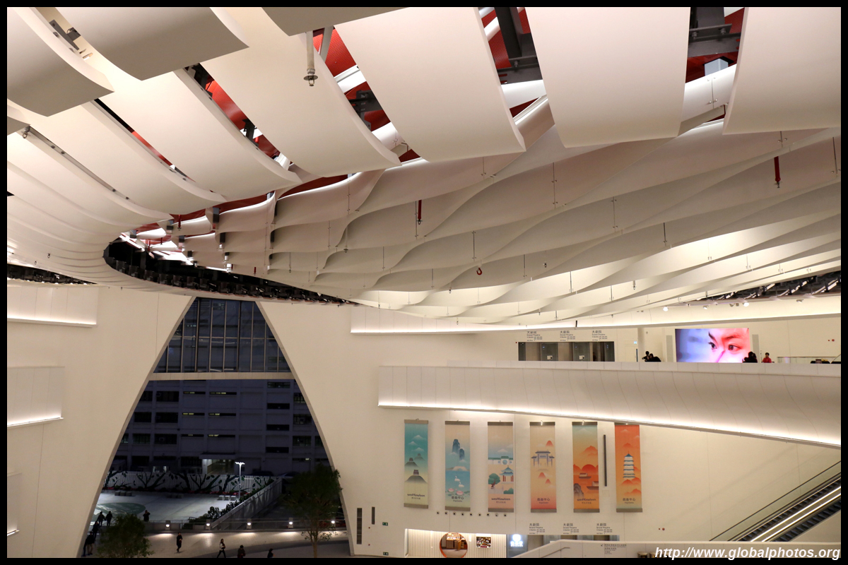 The Xiqu Centre's design is inspired by traditional Chinese lanterns with an entrance resembling stage curtains. The 8-storey performance venue hosts a large theatre of over 1000 seats and also smaller theatres for different types of opera events.