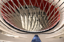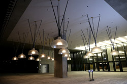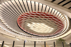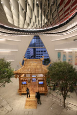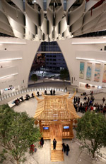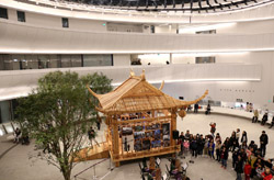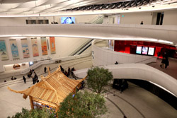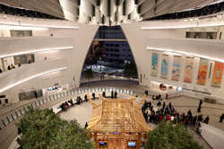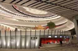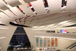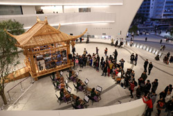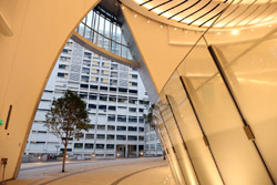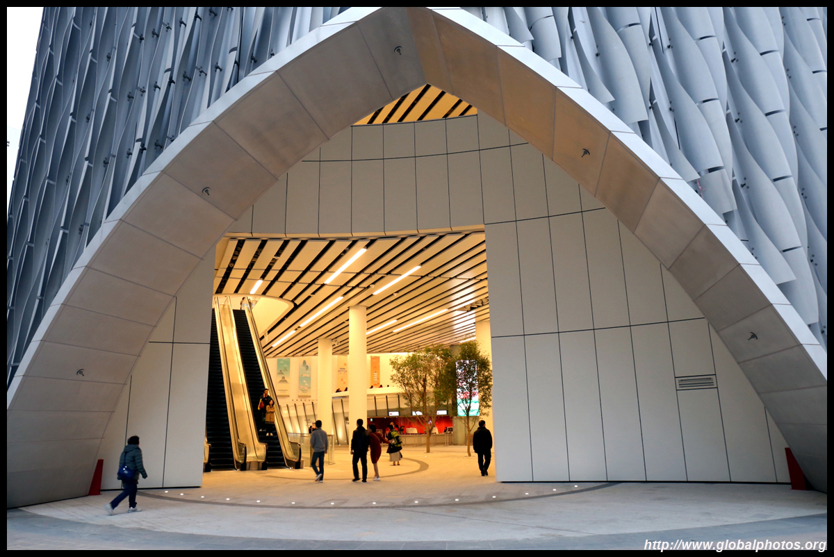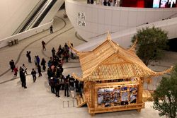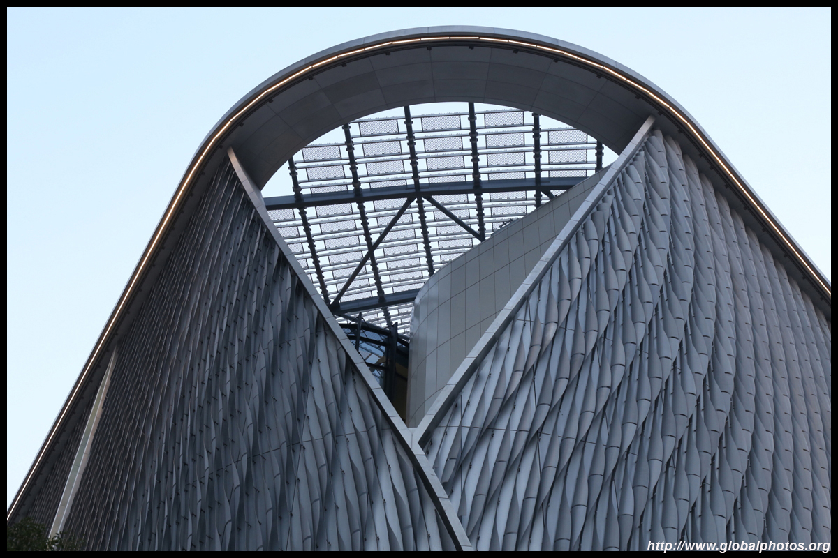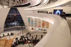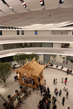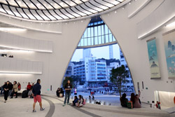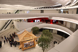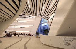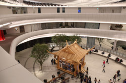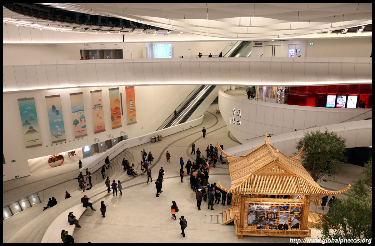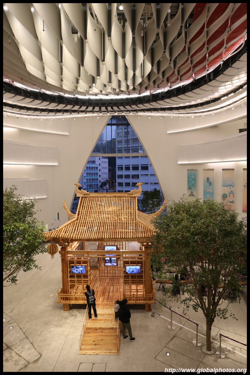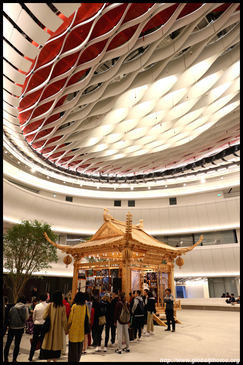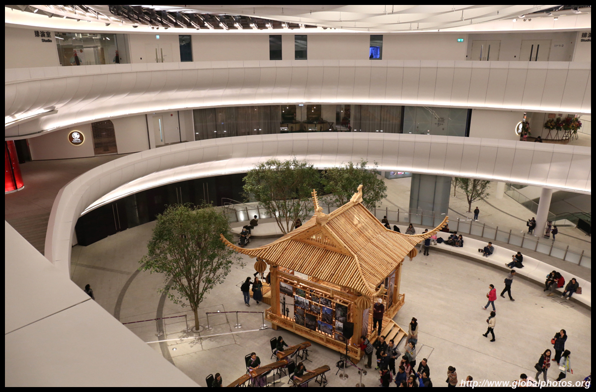 The Xiqu Centre's design is inspired by traditional Chinese lanterns with an entrance resembling stage curtains. The 8-storey performance venue hosts a large theatre of over 1000 seats and also smaller theatres for different types of opera events.