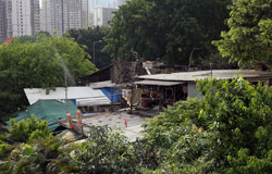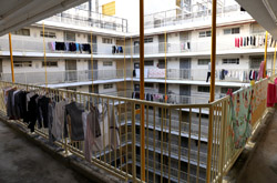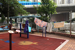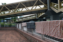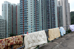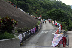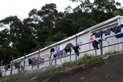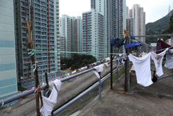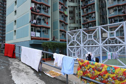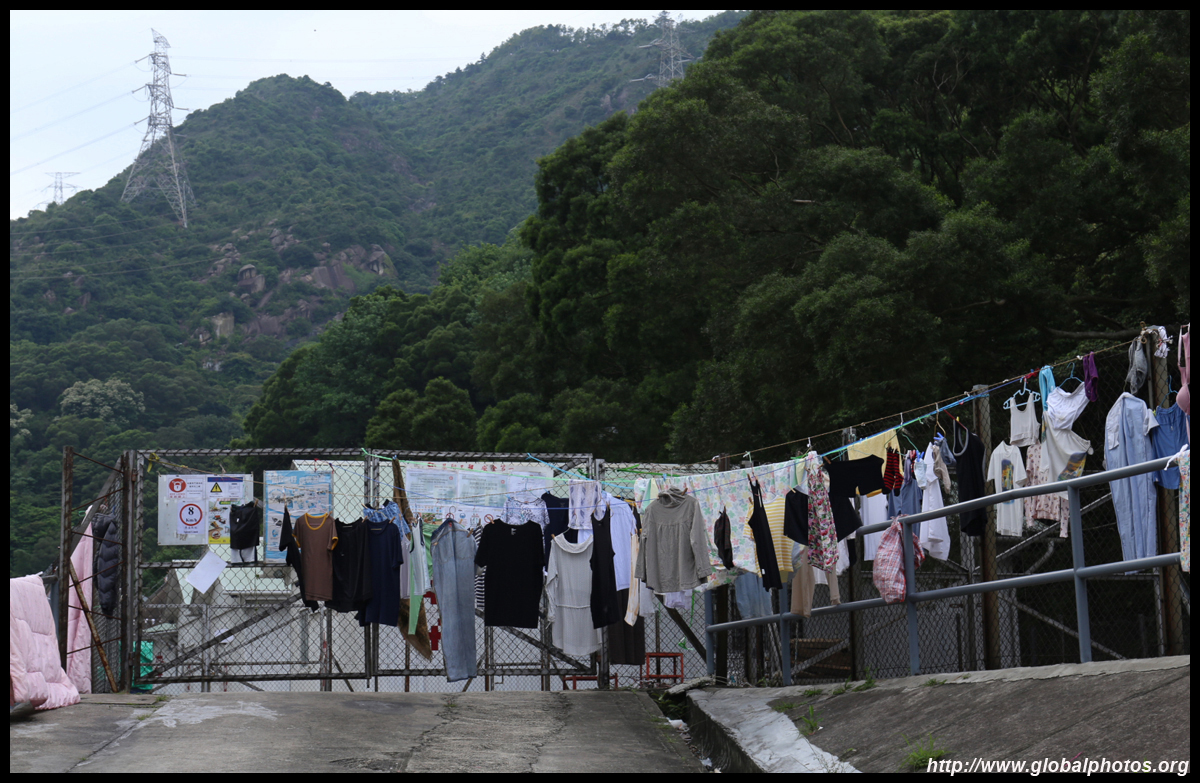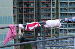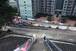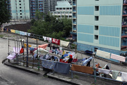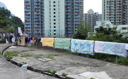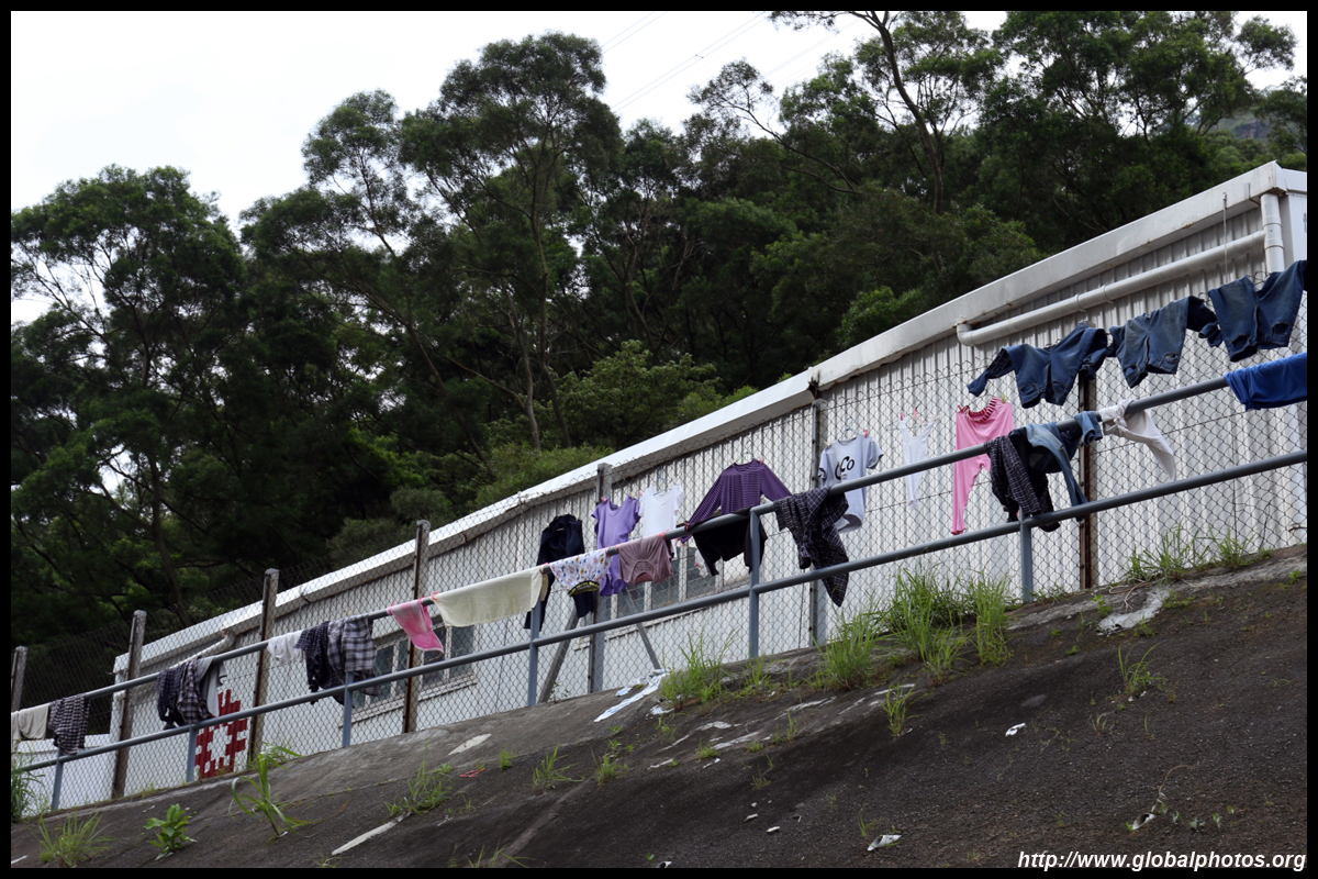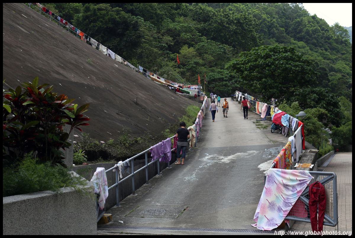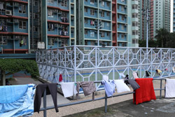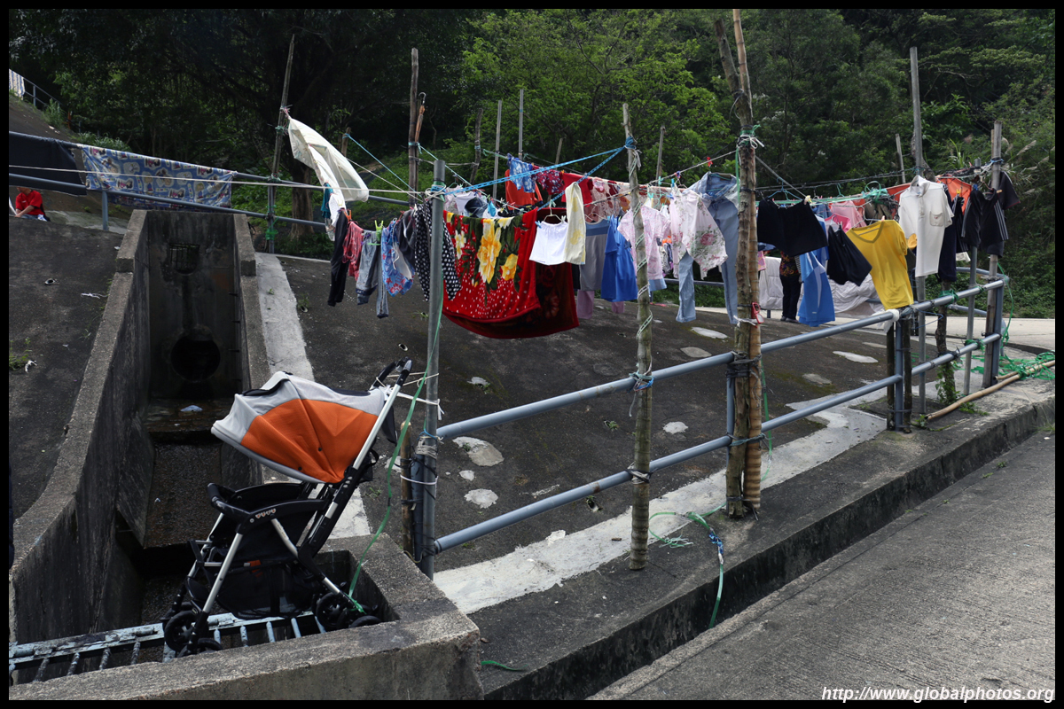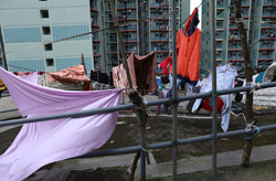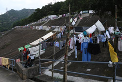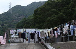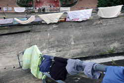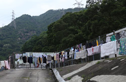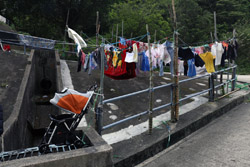 Residents take advantage of the reinforced slope by turning it into a clothes drying ground.