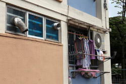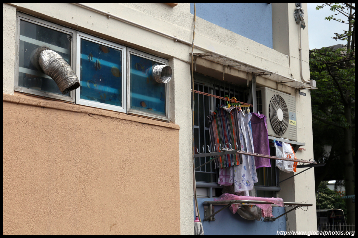 Dryers are not common in Hong Kong. Residents use the natural way to dry their laundry. With no balconies, more innovative ways are used to maximize output.