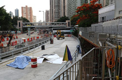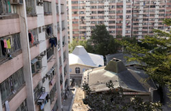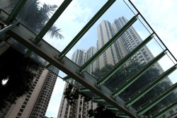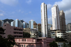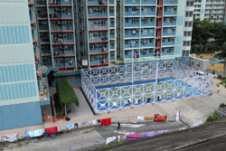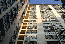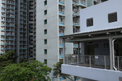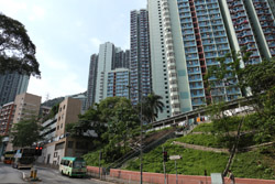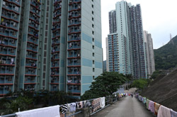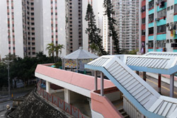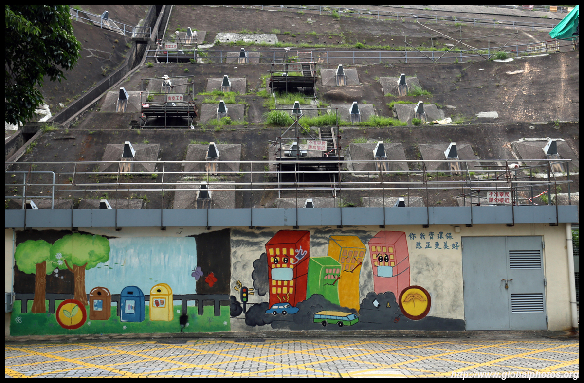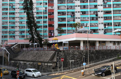 Tsz Wan Shan has more public housing blocks but is situated up along the hillsides from Choi Hung. To conquer geography, the slopes are reinforced to prevent landslides during the rainy season.