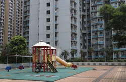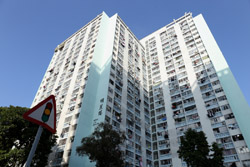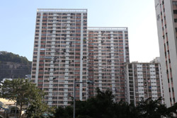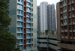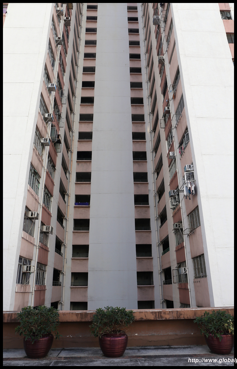 Heading back downhill, I enjoyed the view from Chuk Yuen Estate, which consists of southern and northern parts of 8 blocks each. The north section opened in 1987 while the south section opened in 1984.