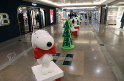Snoopy and his friends from Peanuts have decorated part of the mall with a fundraising campaign for the Hong Kong Blood Cancer Foundation.