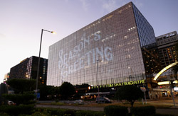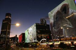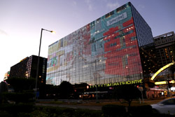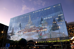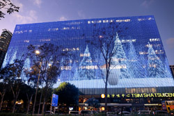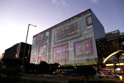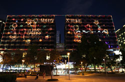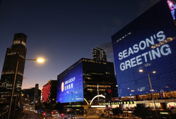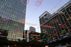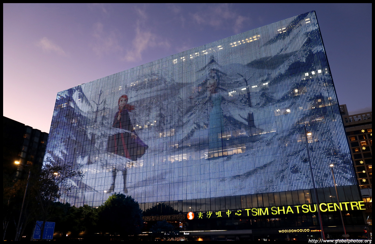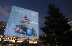 Many buildings in this district are lit up outside, with more technological displays facing the harbour in recent years.