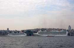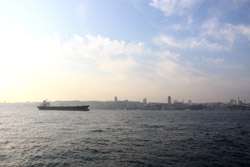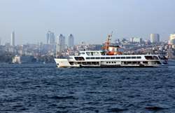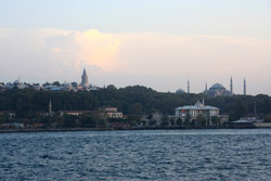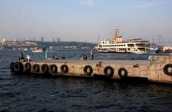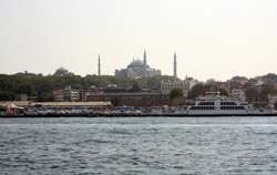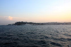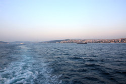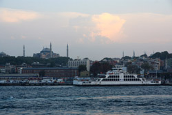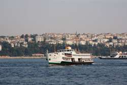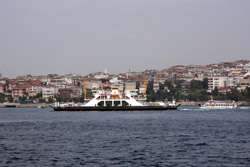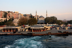 A quick ride later, the ferry arrived at its final stop in Kadikoy. The mosques on the European side are still visible on the horizon.