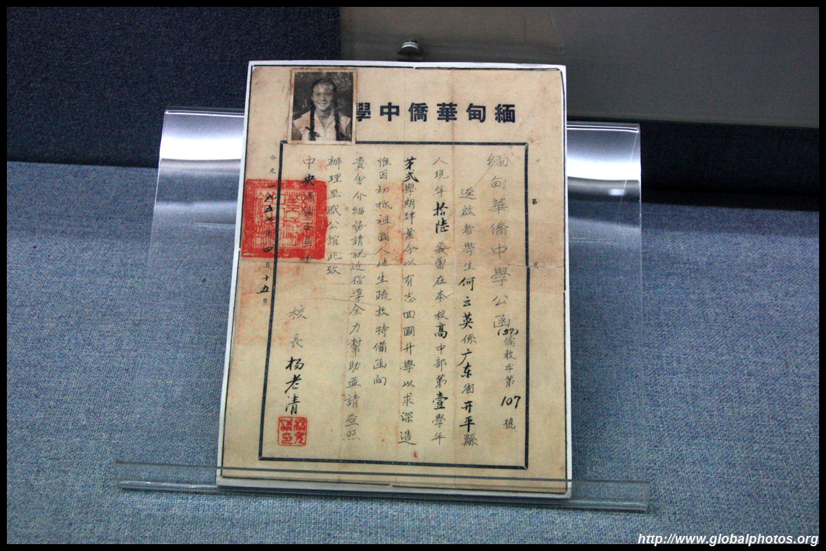 The Chinese diaspora is spread around the world. This artifact is from a Chinese high school in Myanmar.