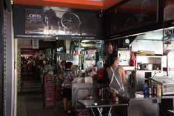Many buildings have canopies on the ground floor to protect pedestrians from the elements. Shops can also extend their wares to this additional space.