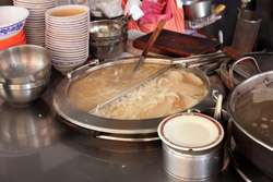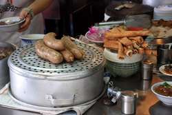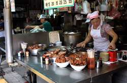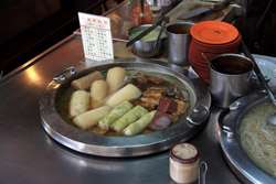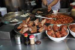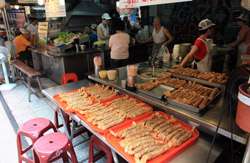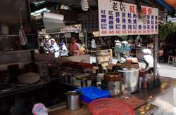 Miaokou is an all-hours "night market". Some stalls were already open upon my morning arrival. The market is a short section of street, but there's plenty to eat and see.