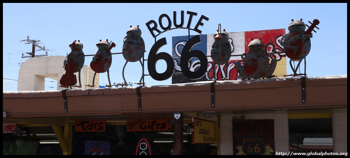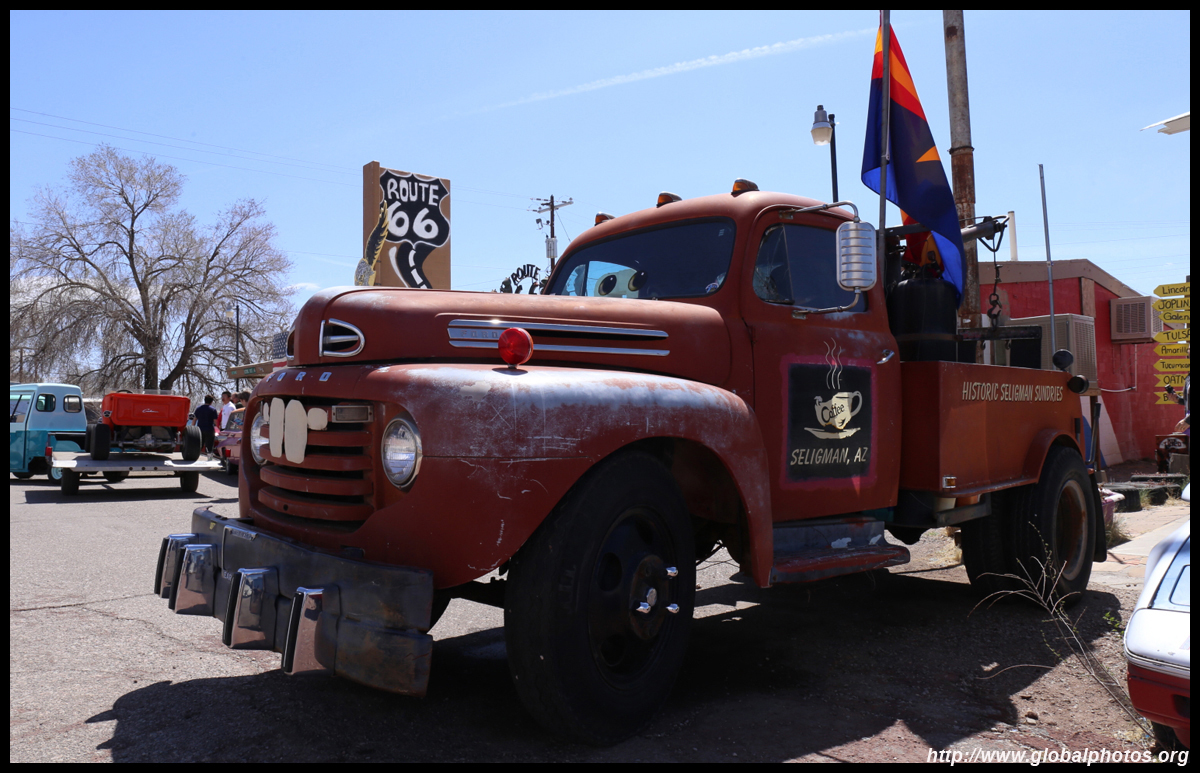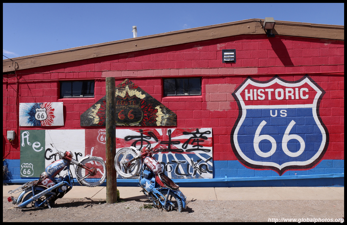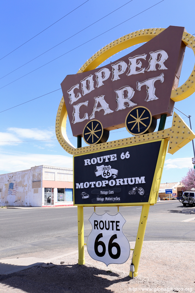 Route 66, or the Mother Road, is the first all-weather highway from Chicago to Los Angeles. Symbolizing hope, progress, adventure, and the automobile's impact on the country, the route reduced the driving distance by over 200 miles, and was the preferred route to head west. Seligman, Arizona celebrates this highway's history, and there were some spring flowers to throw in as a bonus. Originally a railroad town, it suffered badly when the Interstate opened in 1978, diverting traffic away from Route 66.