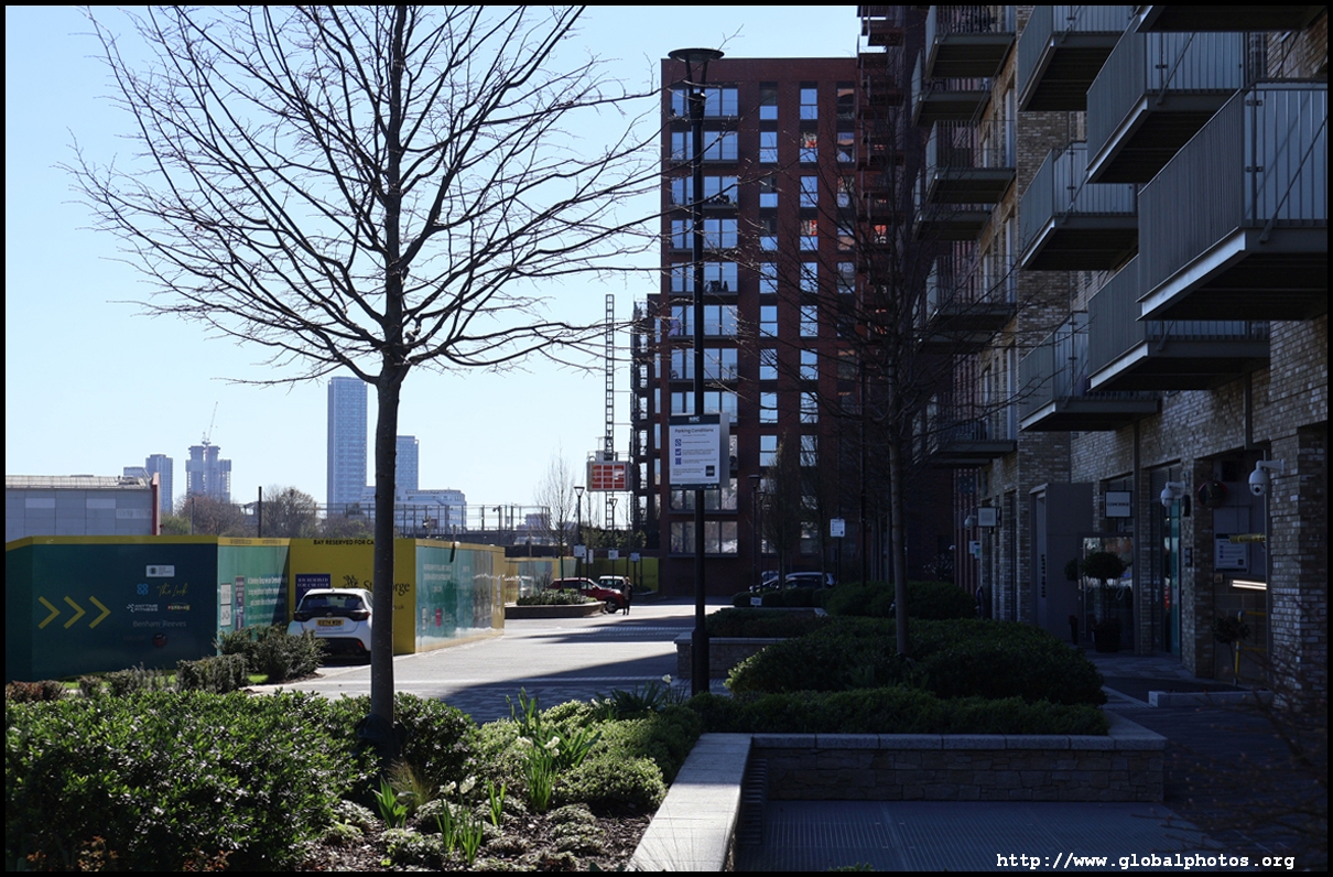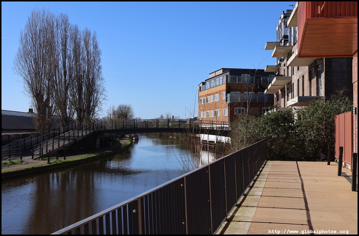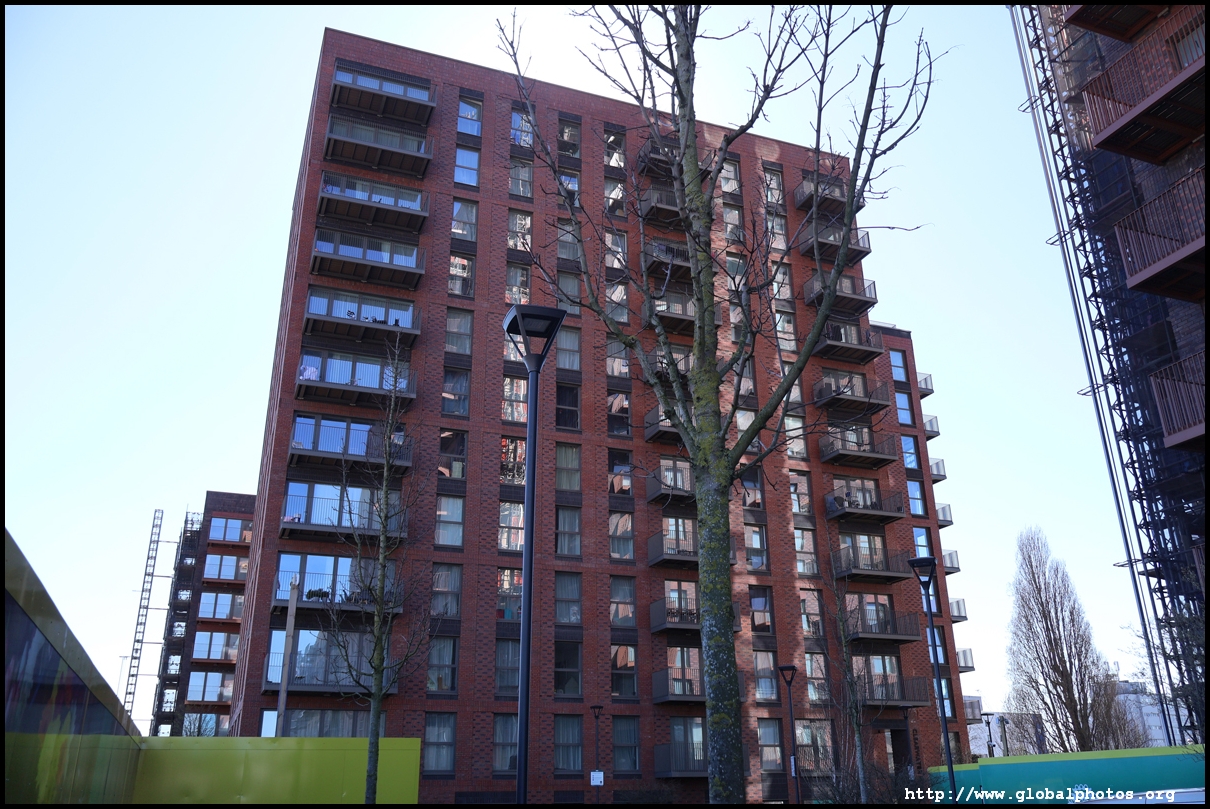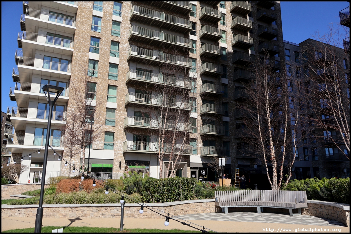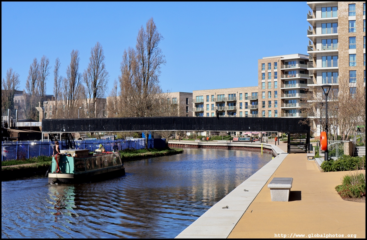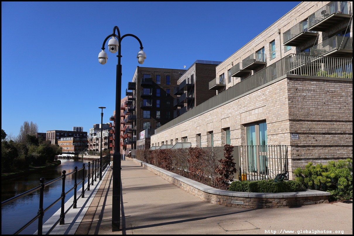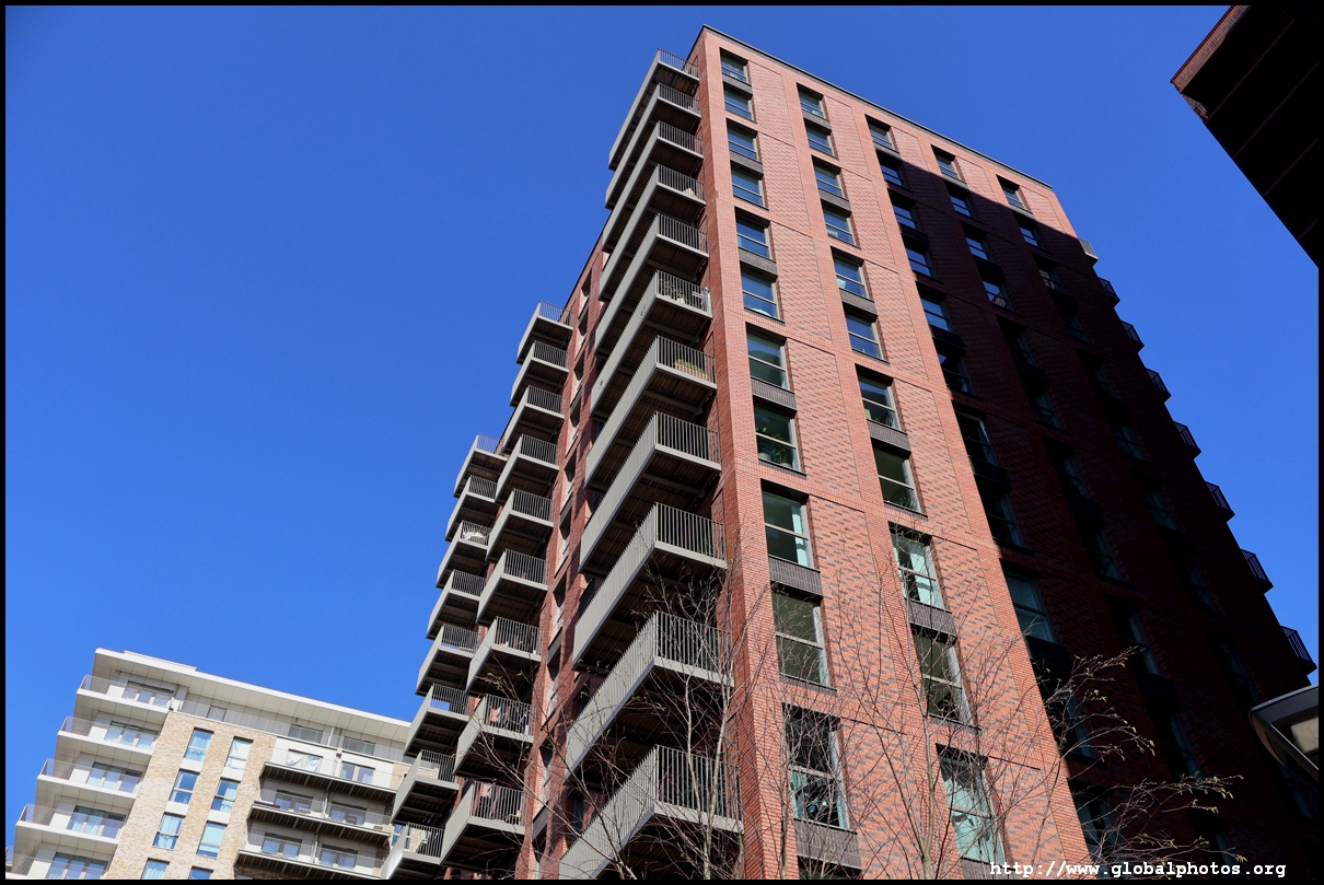 Across the canal, you face industrial buildings. This area is still fairly mixed use with pre-existing lowrises homes as well. It is a fairly long 10-minute walk to the nearest Tube station.