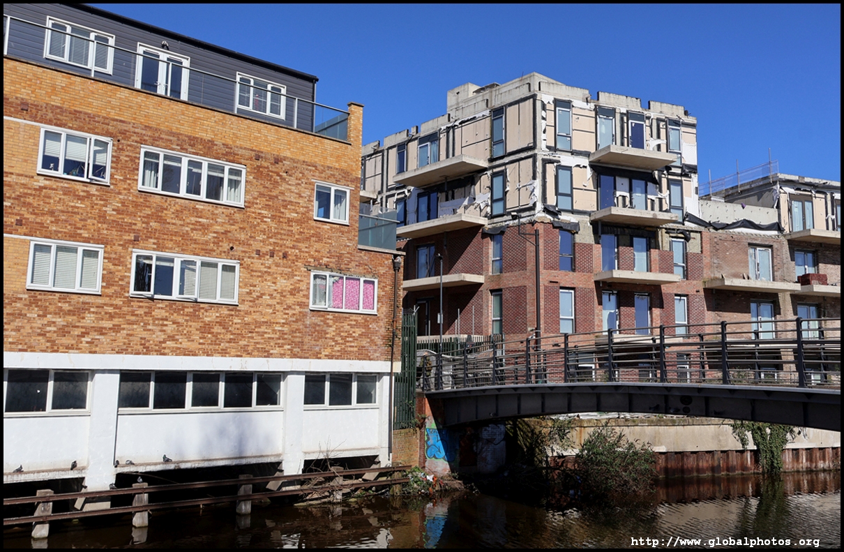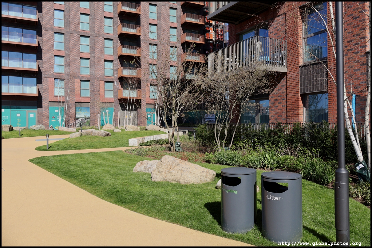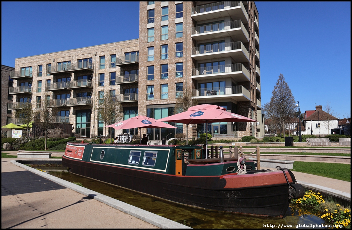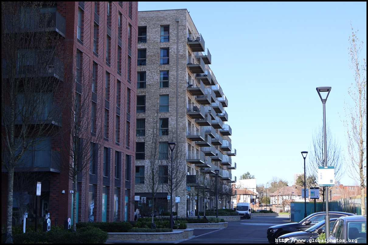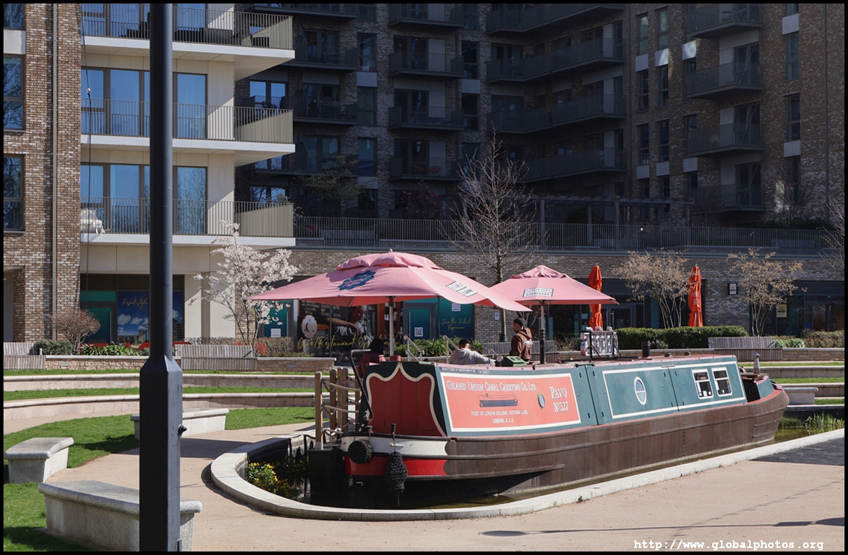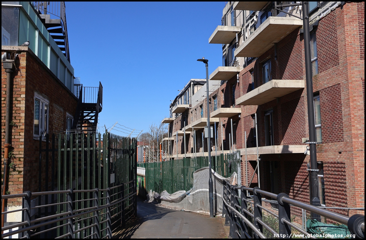 Across the canal, you face industrial buildings. This area is still fairly mixed use with pre-existing lowrises homes as well. It is a fairly long 10-minute walk to the nearest Tube station.