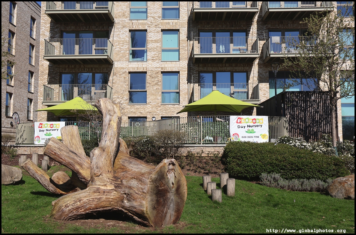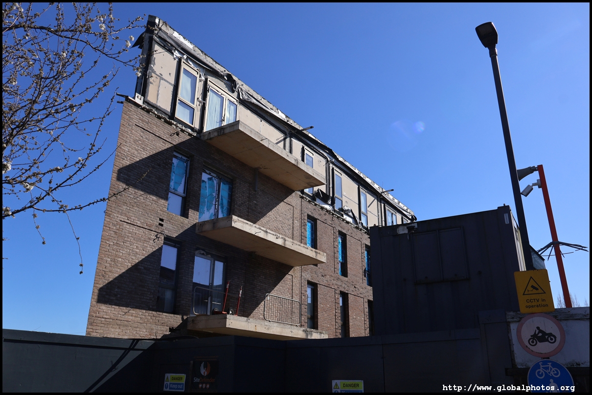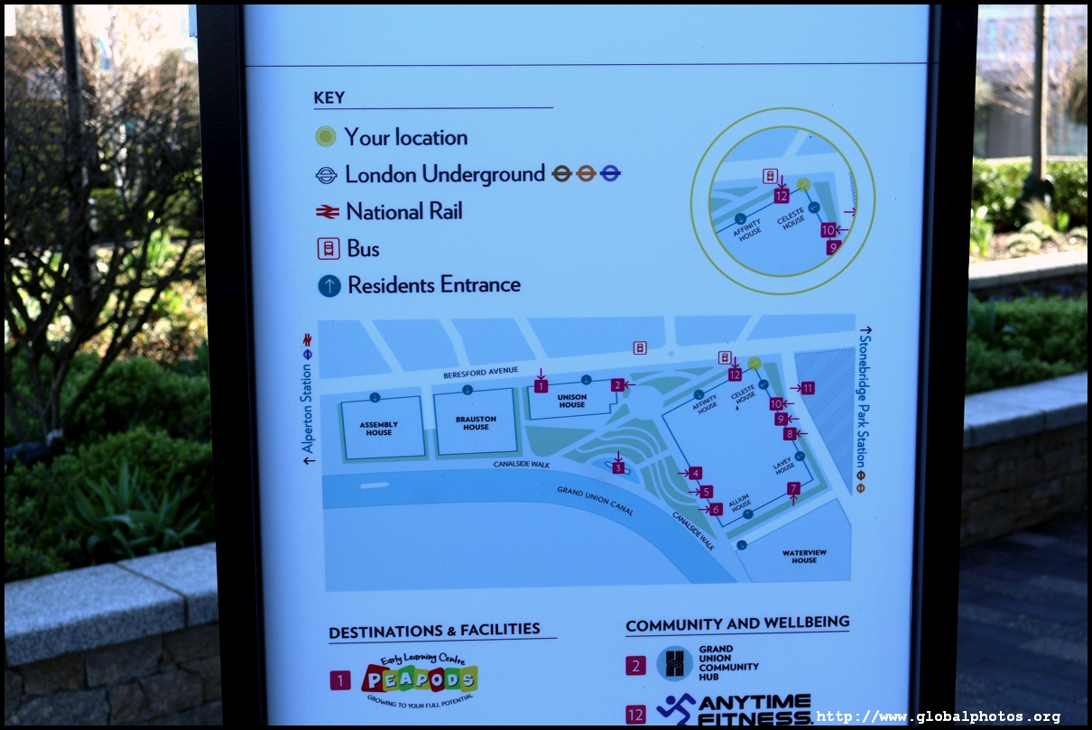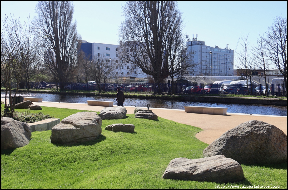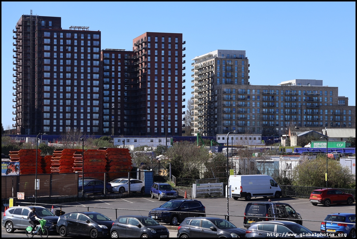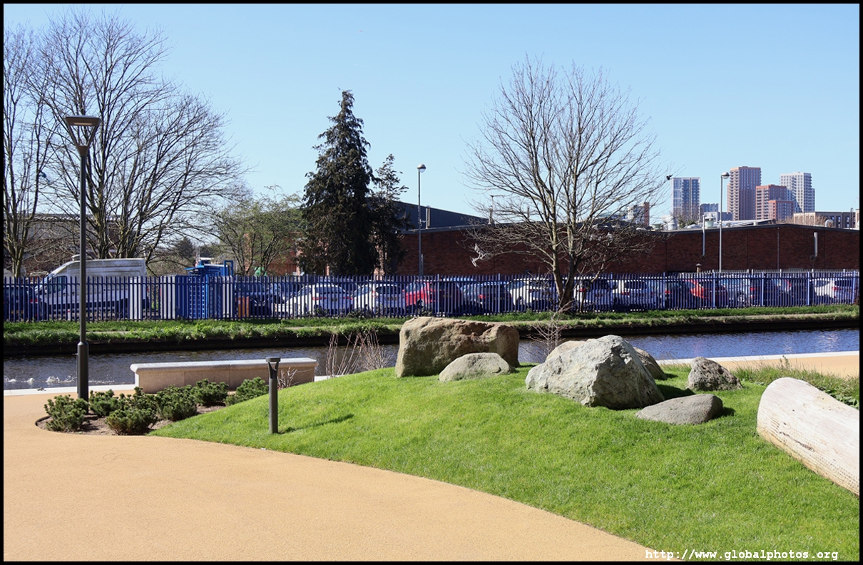 Across the canal, you face industrial buildings. This area is still fairly mixed use with pre-existing lowrises homes as well. It is a fairly long 10-minute walk to the nearest Tube station.
