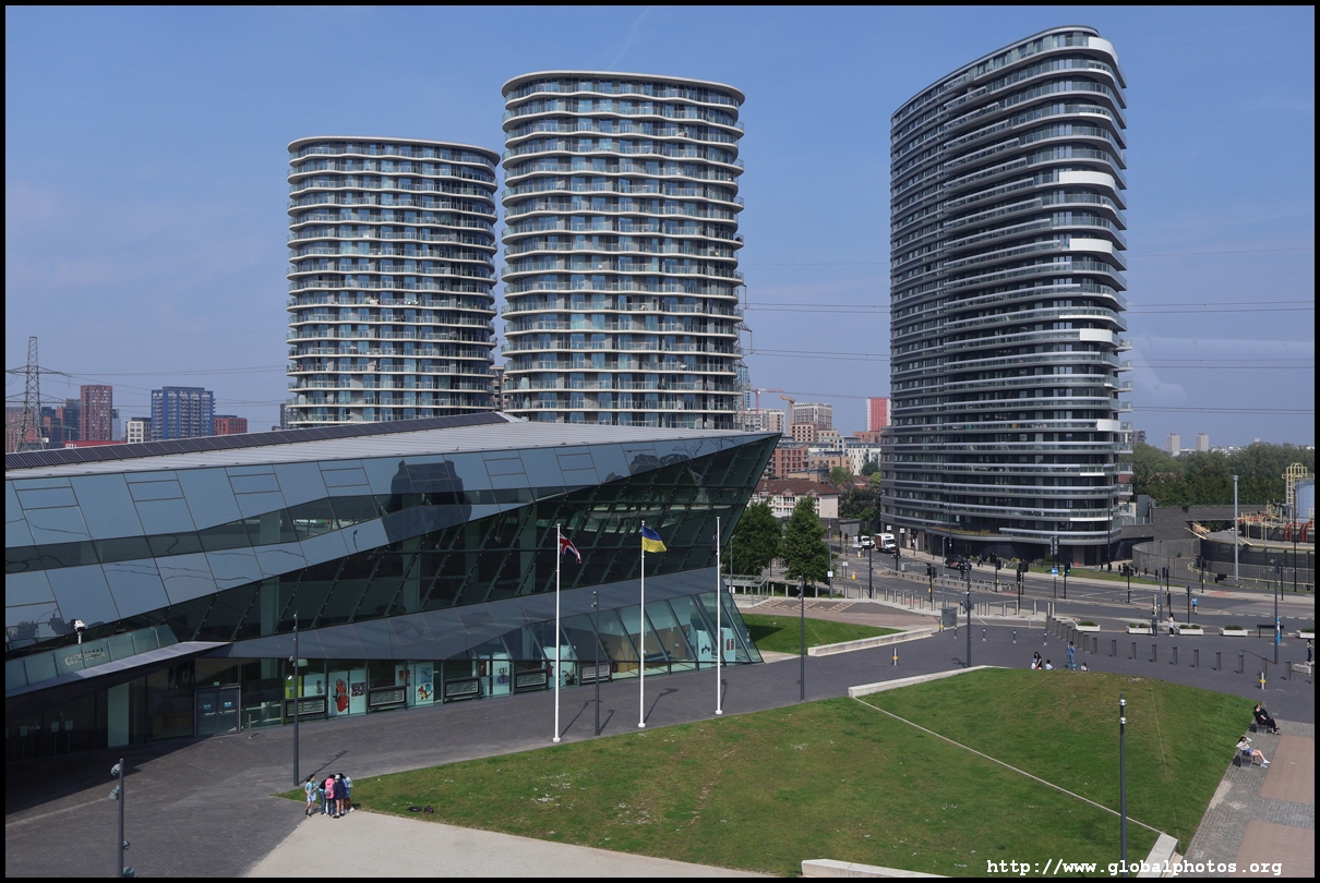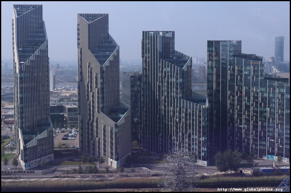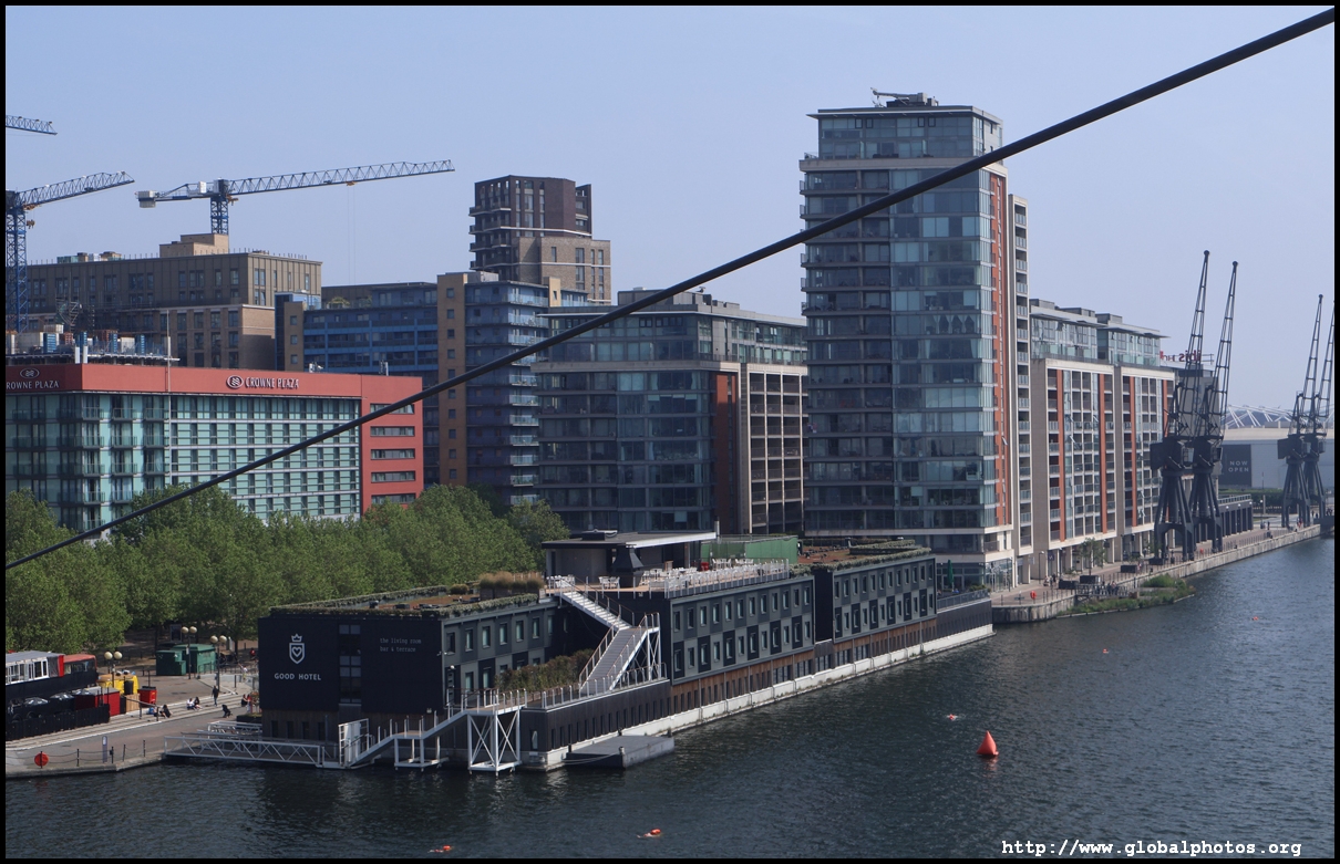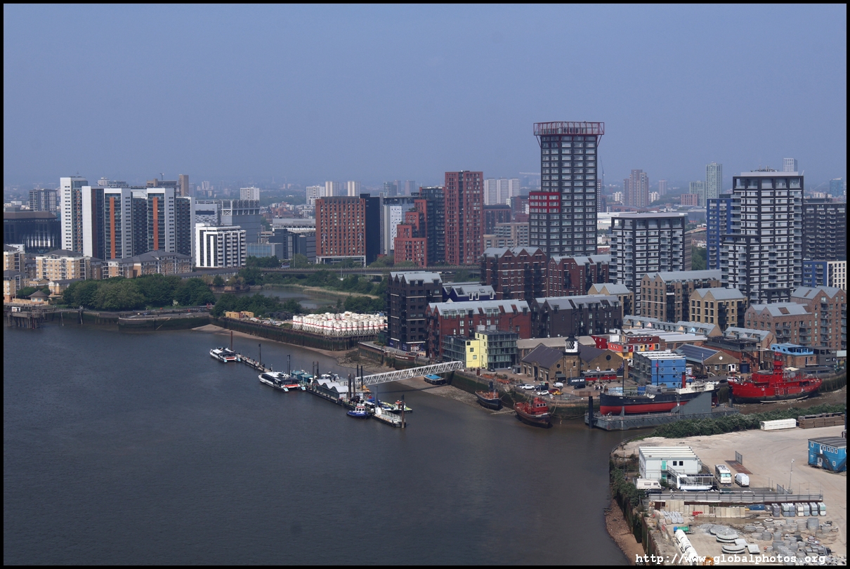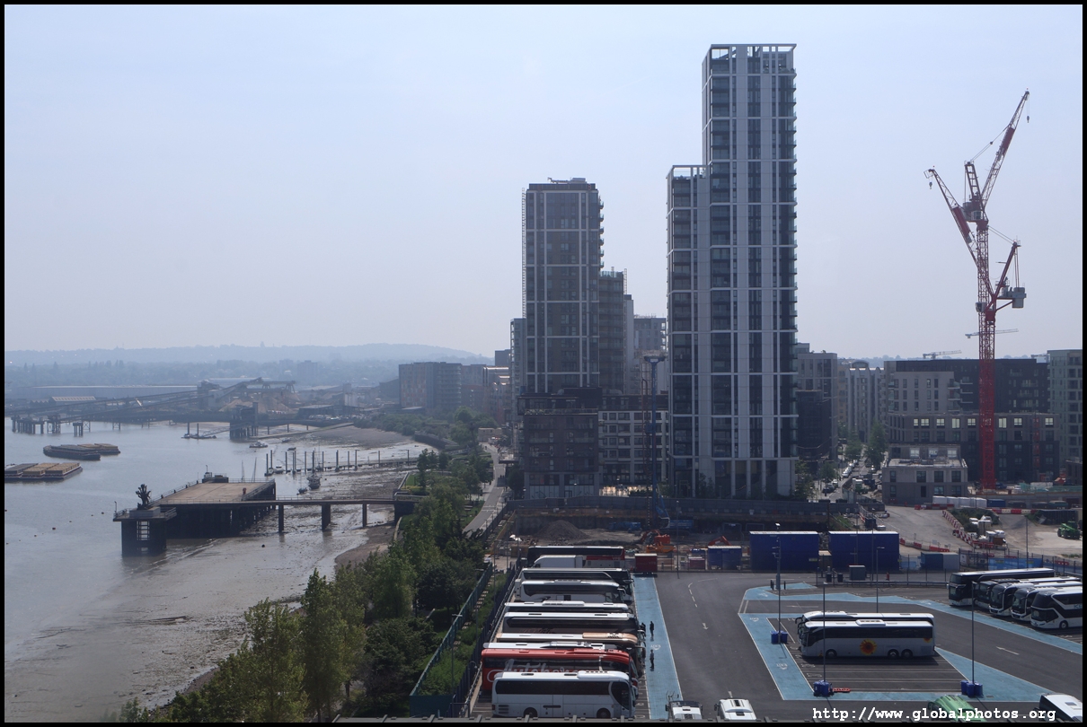 There are more beautiful new flats on the north side of the Thames, with many planes coming in on approach to London City Airport nearby.
