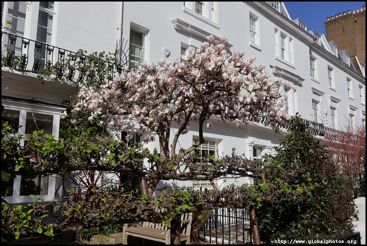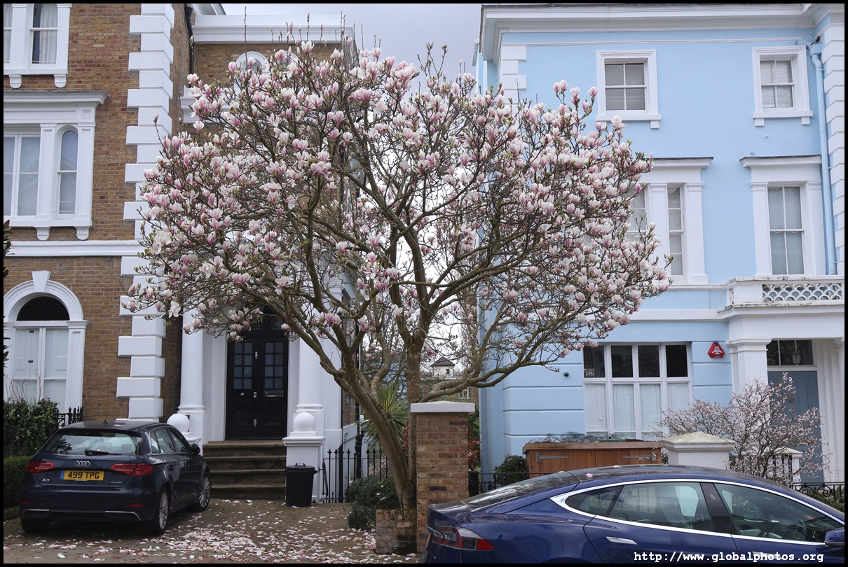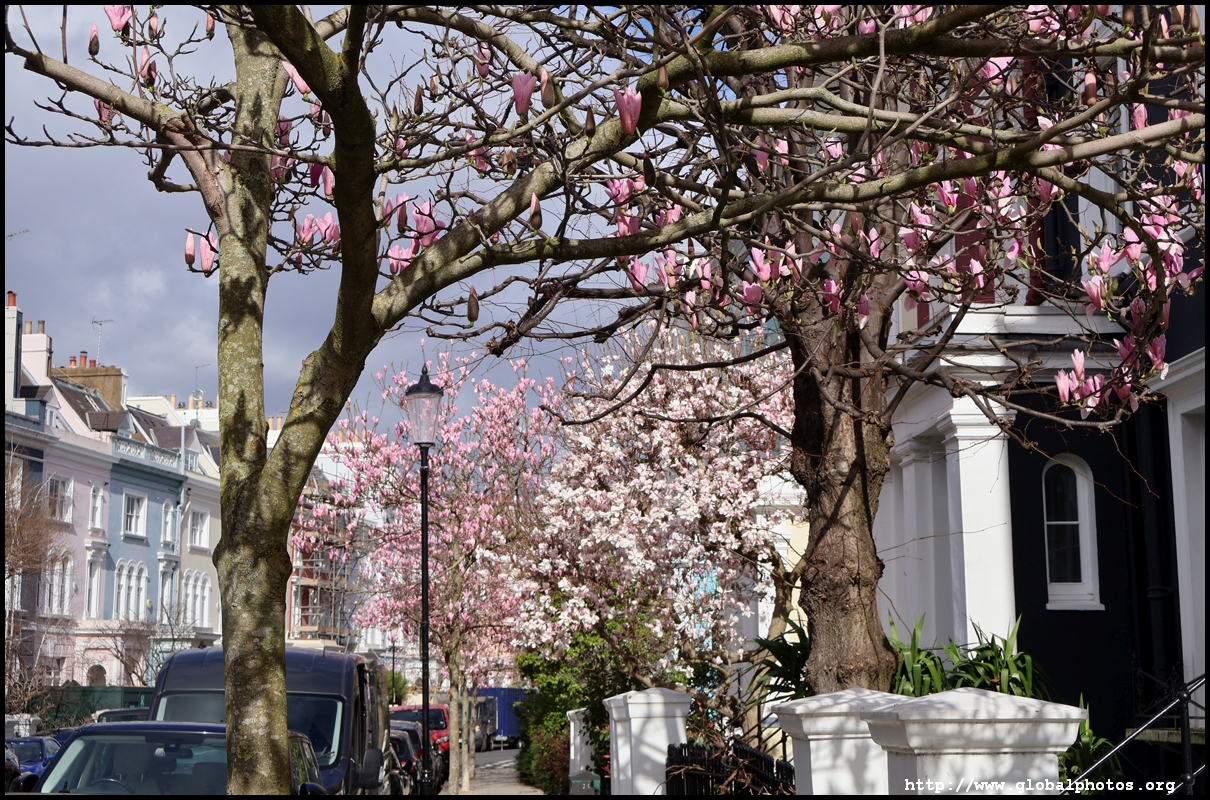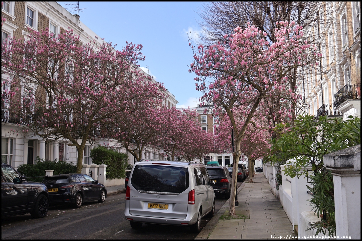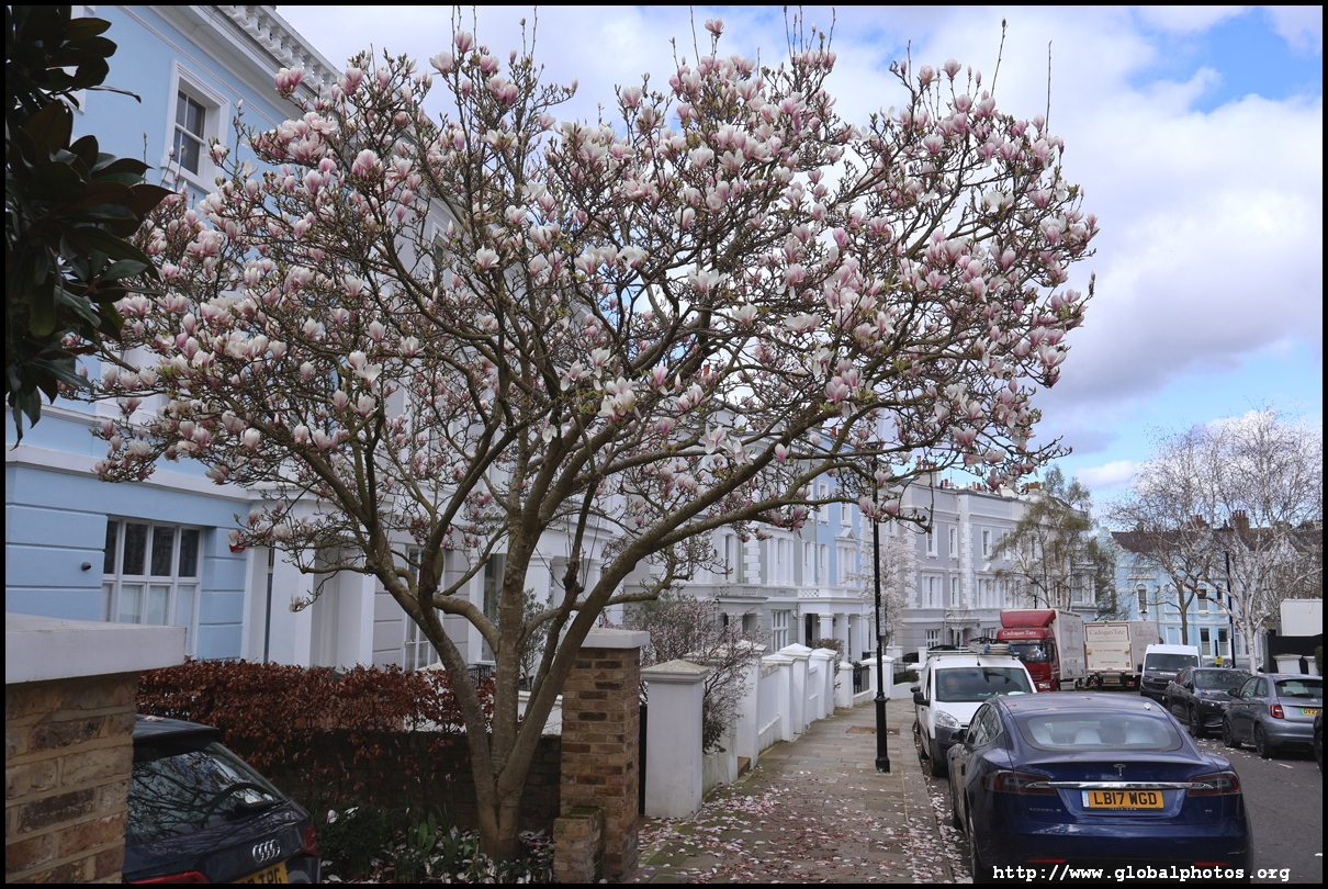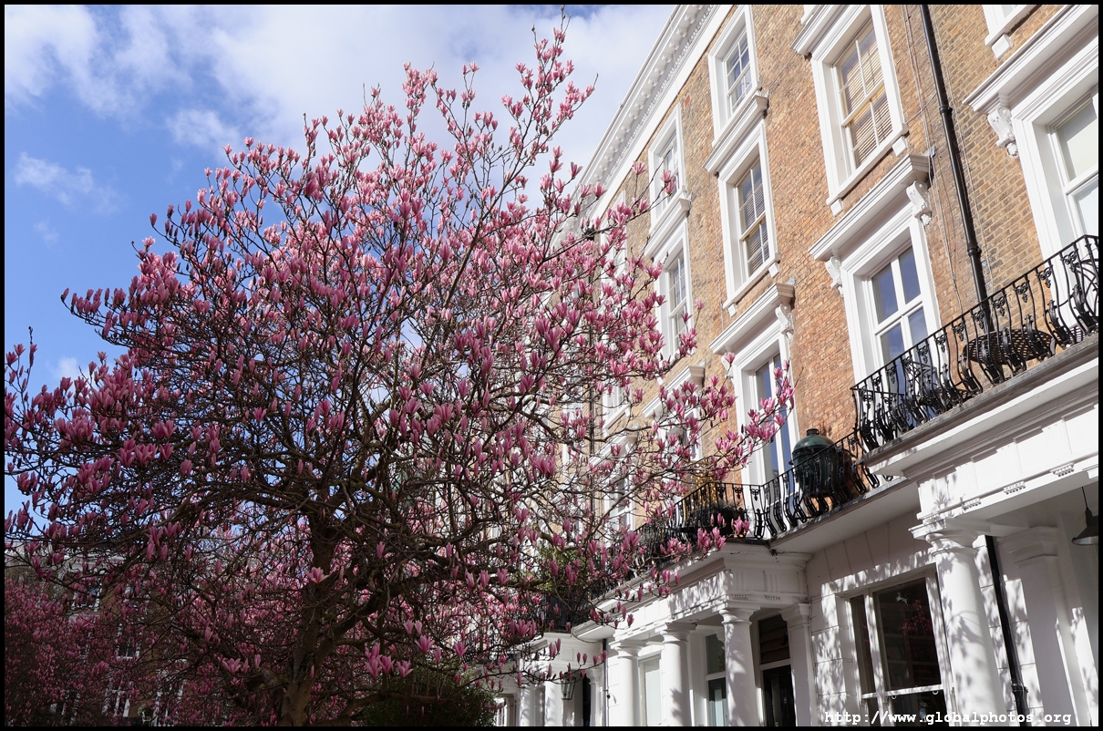 Magnolias typically bloom around March in London and there are plenty of recommendations online to head to the West End for some beautiful scenes.However, a lot of these spots in Notting Hill, South Kensington, and Chelsea are just individual trees, perhaps the work of specific homeowners. Very few places have a substantial number of trees clustered together. Sunderland Terrace near Royal Oak station is the only place where I found a long and continuous stretch of magnolia trees. I walked around Notting Hill's streets to find trees every now and then. Similarly, the Holland Park area had a sprinkle of magnolia trees every now and then. Walking past Earl's Court and heading towards the Thames, the blossoms get more plentiful around The Little Boltons and The Boltons.