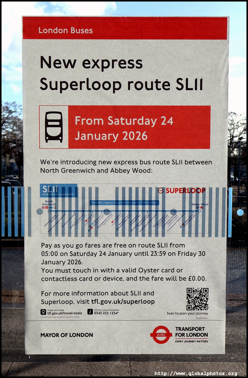 On Saturday January 24, 2026, a new Superloop express bus route launched in London's southeast. SL11 replaces the 472, running between London between North Greenwich and Abbey Wood via Woolwich Arsenal and Thamesmead.Thamesmead has been designated as a major regeneration location in the coming years, and a DLR extension was included in the government's budget. During the daytime, buses are scheduled to run fairly frequently at every 5-8 minutes.