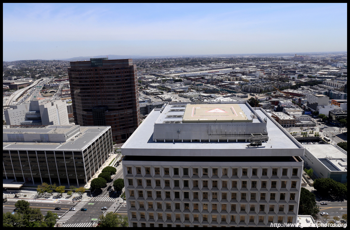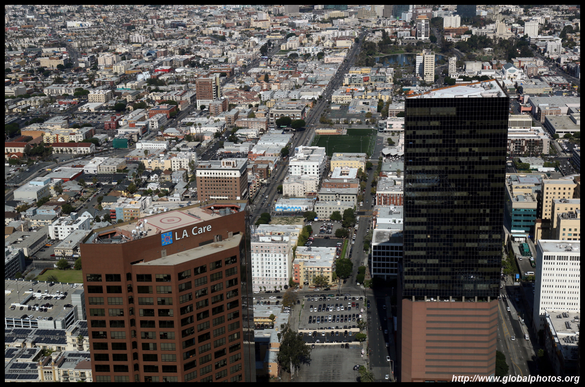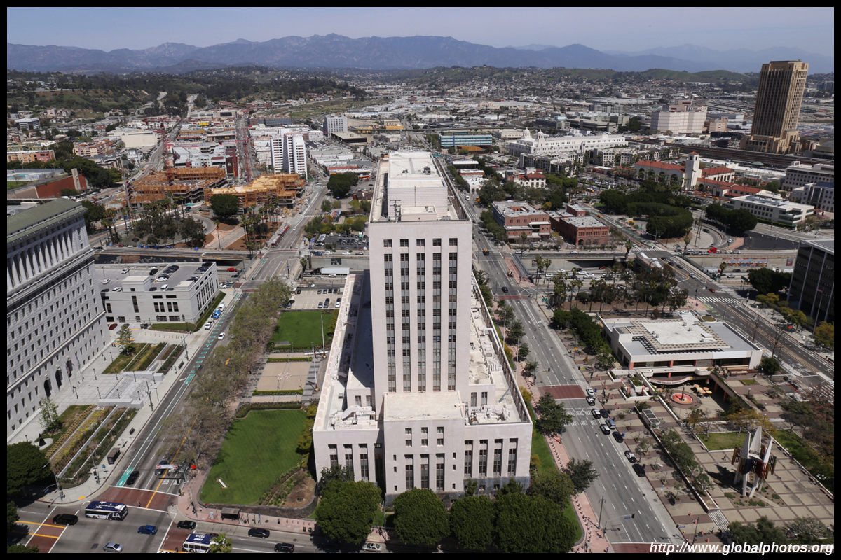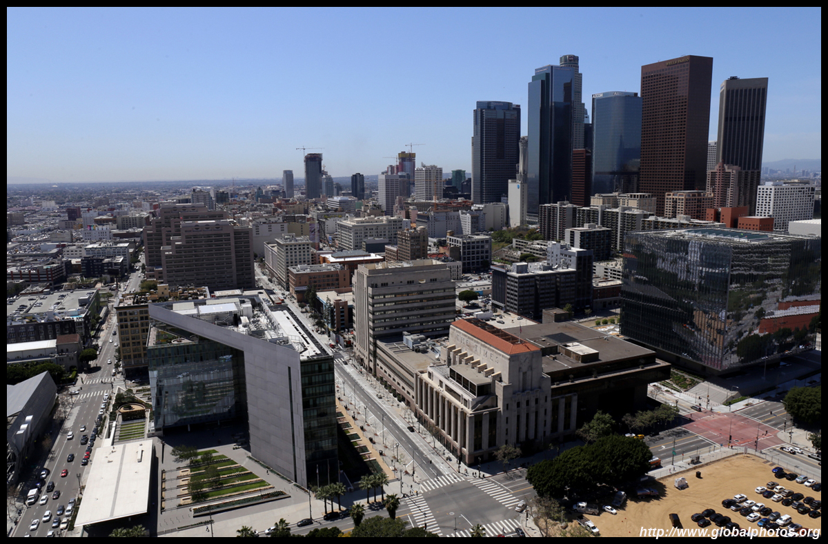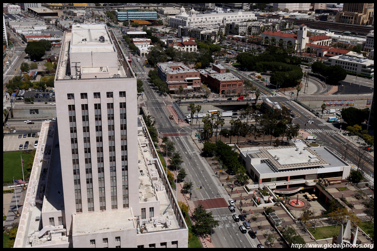 The area around City Hall is not too densely-built up. Eastwards, the blocks beyond are not very safe. That's Skid Row, where many homeless reside.