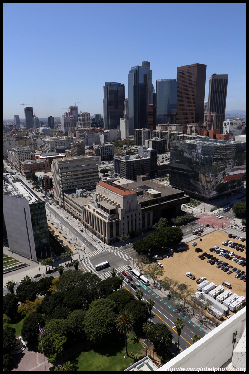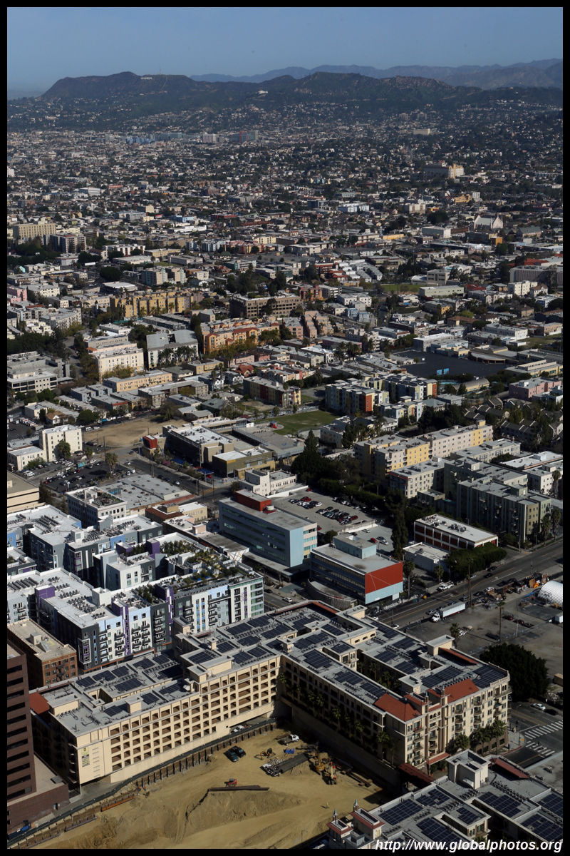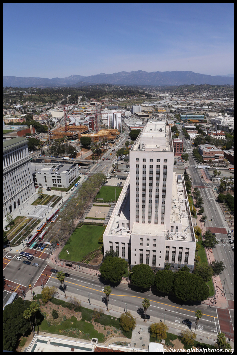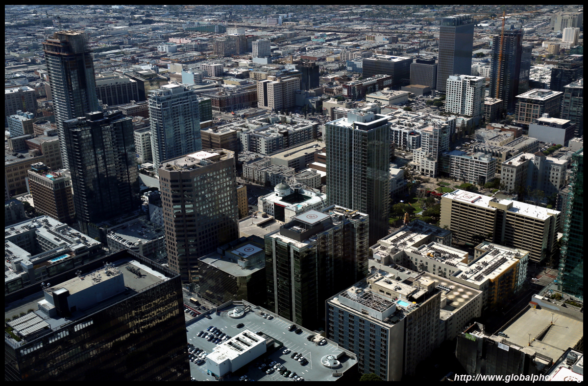 The area around City Hall is not too densely-built up. Eastwards, the blocks beyond are not very safe. That's Skid Row, where many homeless reside.