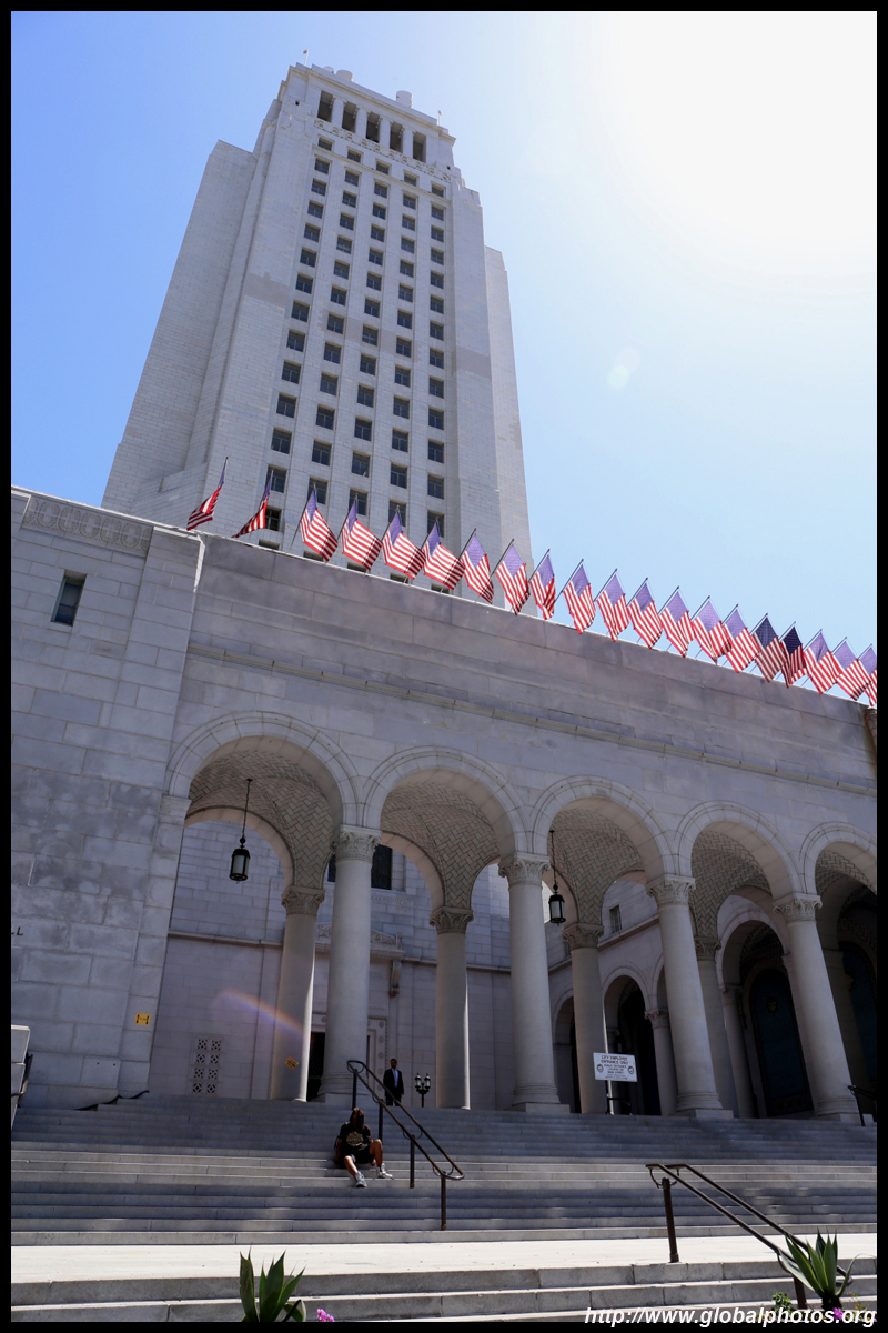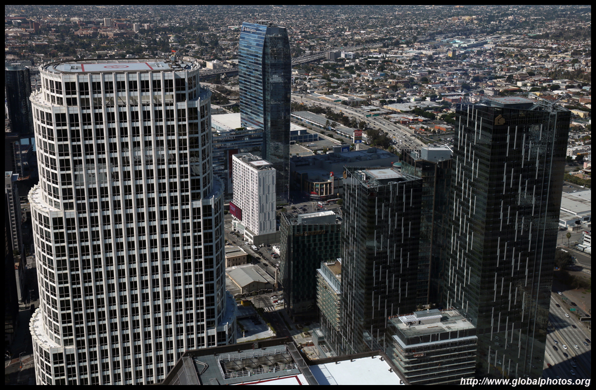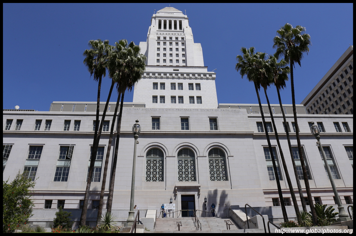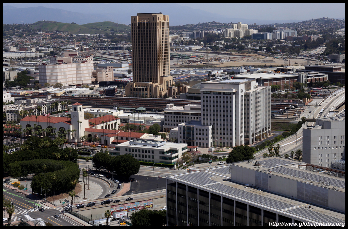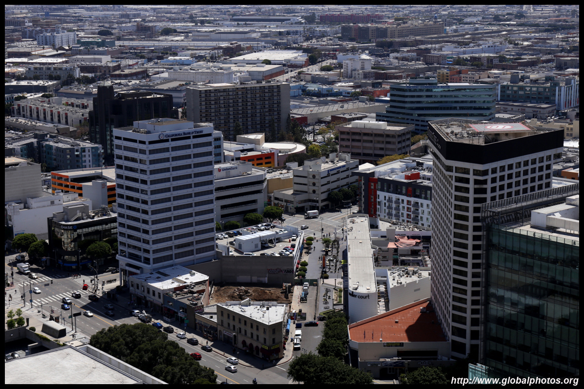 The area around City Hall is not too densely-built up. Eastwards, the blocks beyond are not very safe. That's Skid Row, where many homeless reside.