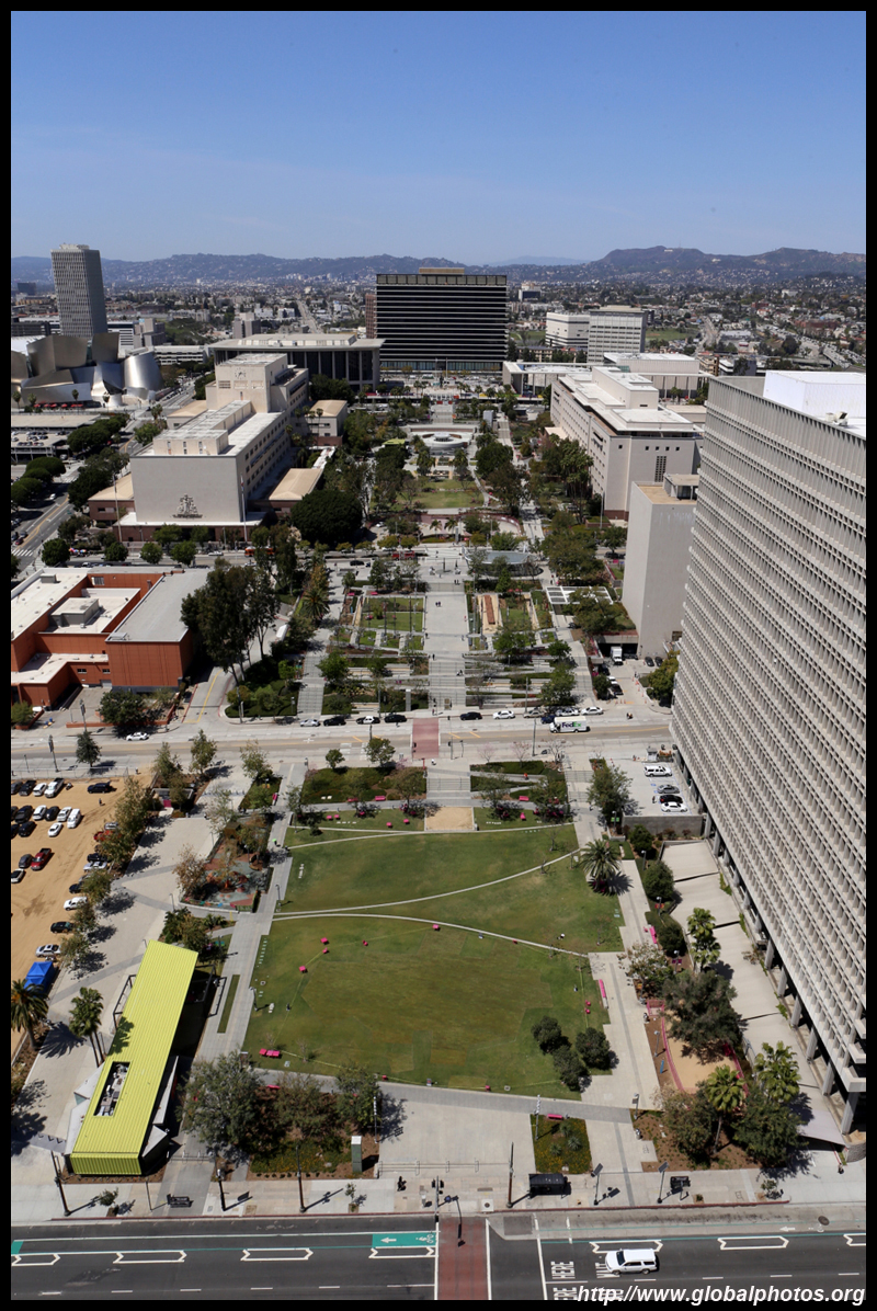 On the west side, City Hall forms an axis with a long linear park with many other government buildings. Note that LA's downtown does not front the Pacific coast.