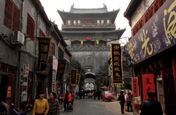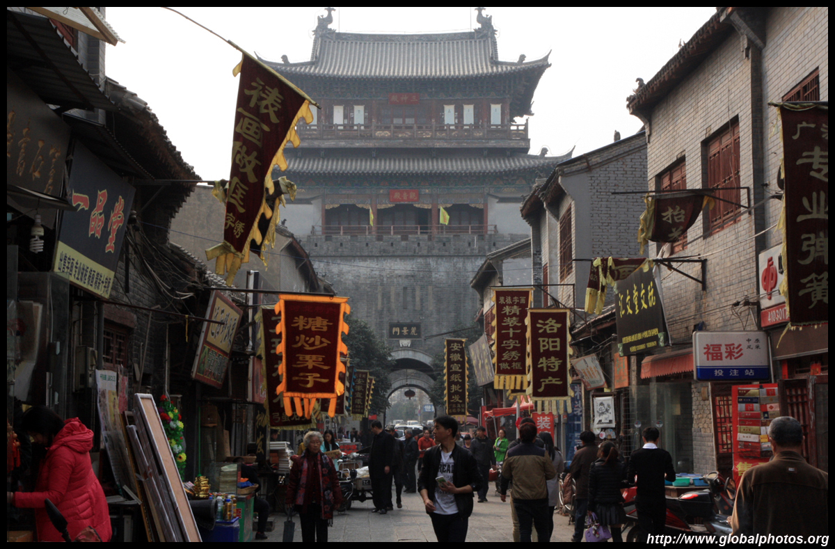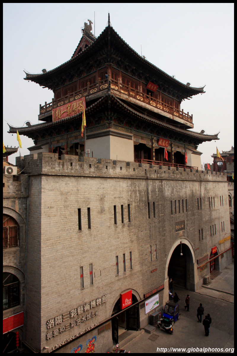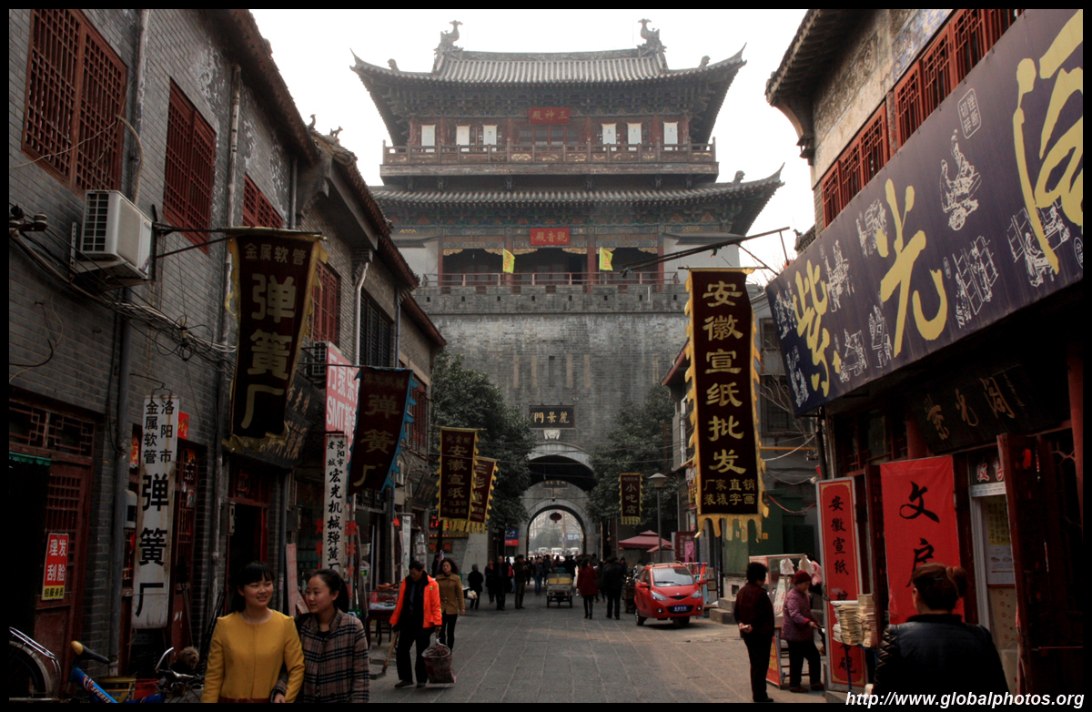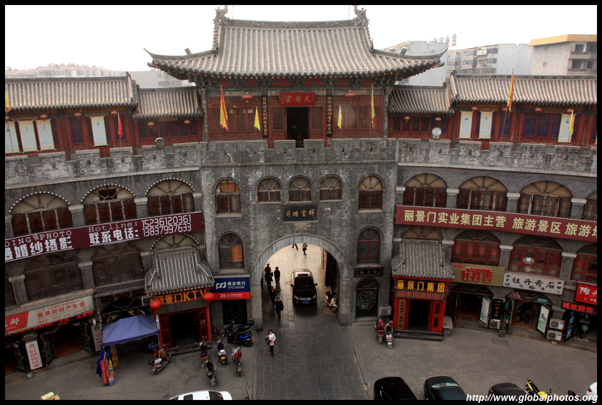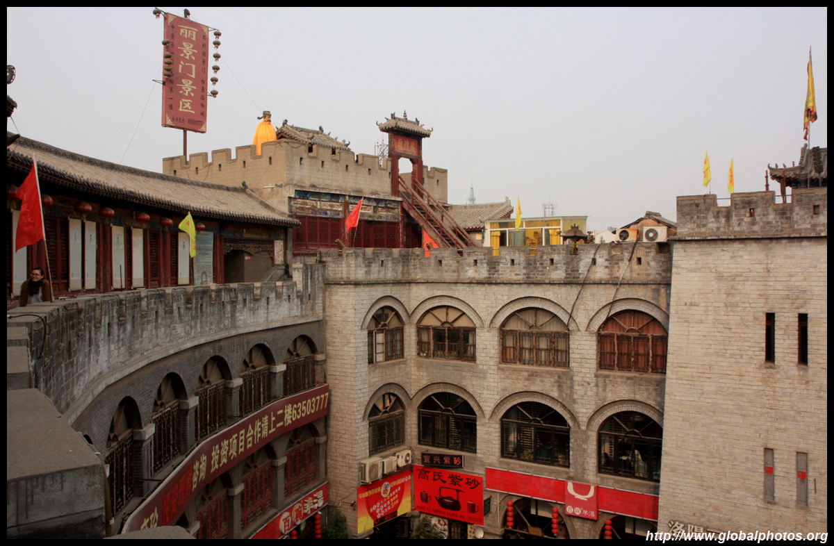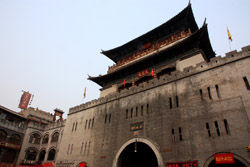 Entry into Luoyang's old town starts at the rebuilt Lijingmen, which follows a lively tourist market through its narrow streets. A small admission allows entry on top of the walls for a view of the city. Today, the gate doesn't separate the urban from the rural areas anymore.