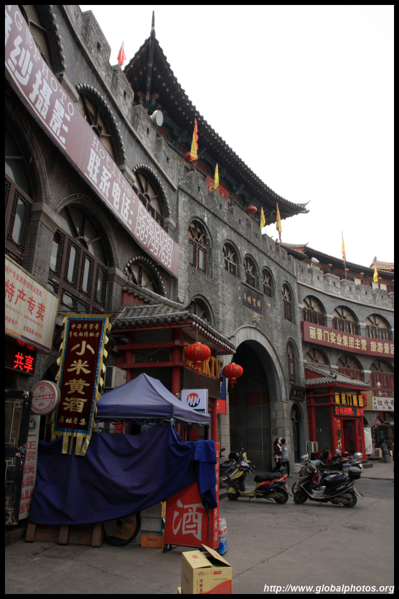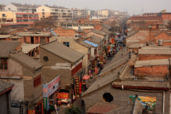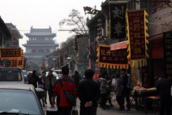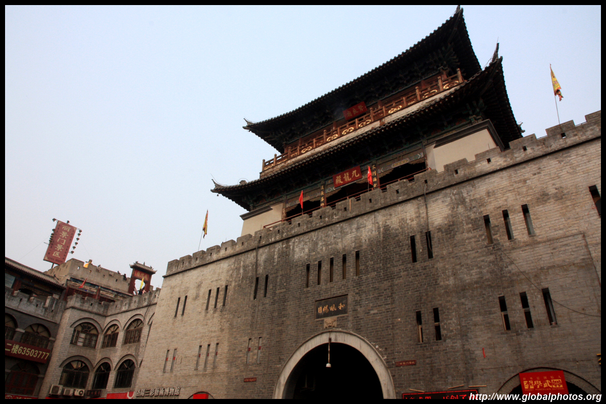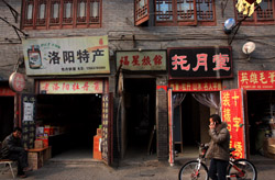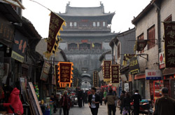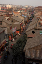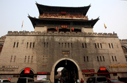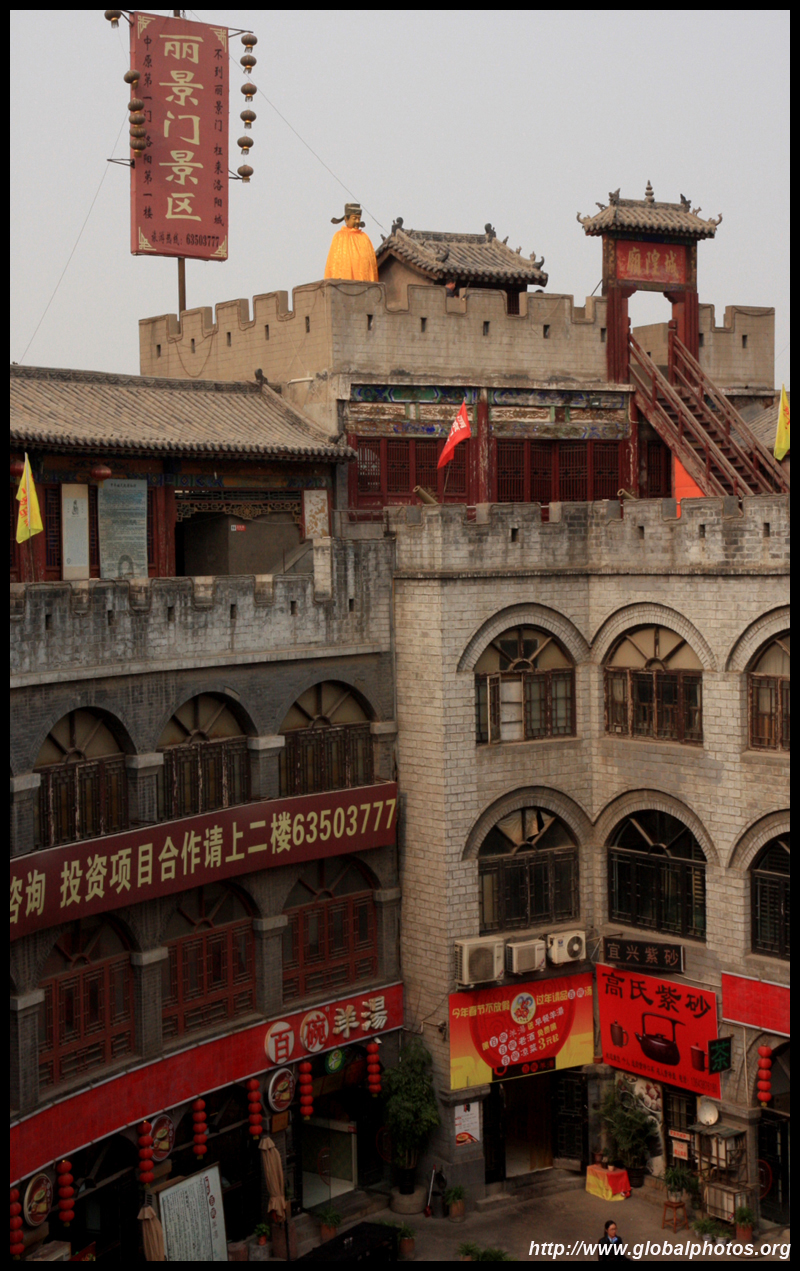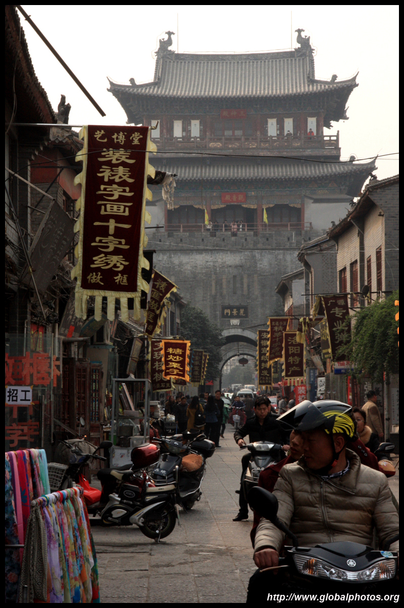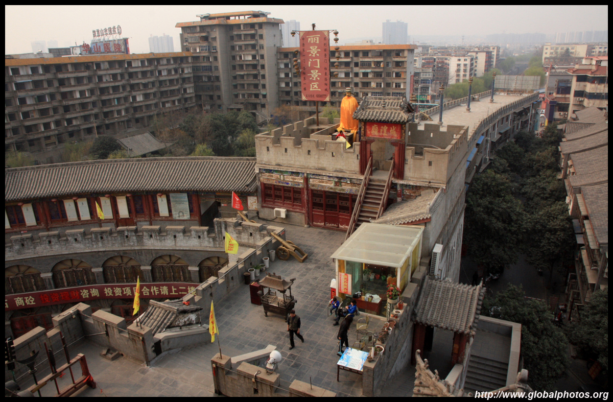 Entry into Luoyang's old town starts at the rebuilt Lijingmen, which follows a lively tourist market through its narrow streets. A small admission allows entry on top of the walls for a view of the city. Today, the gate doesn't separate the urban from the rural areas anymore.