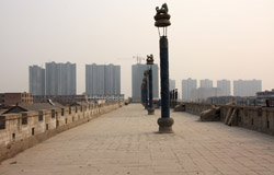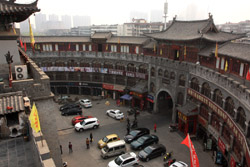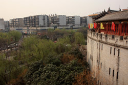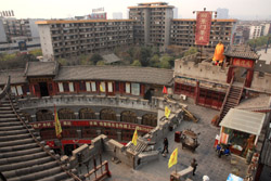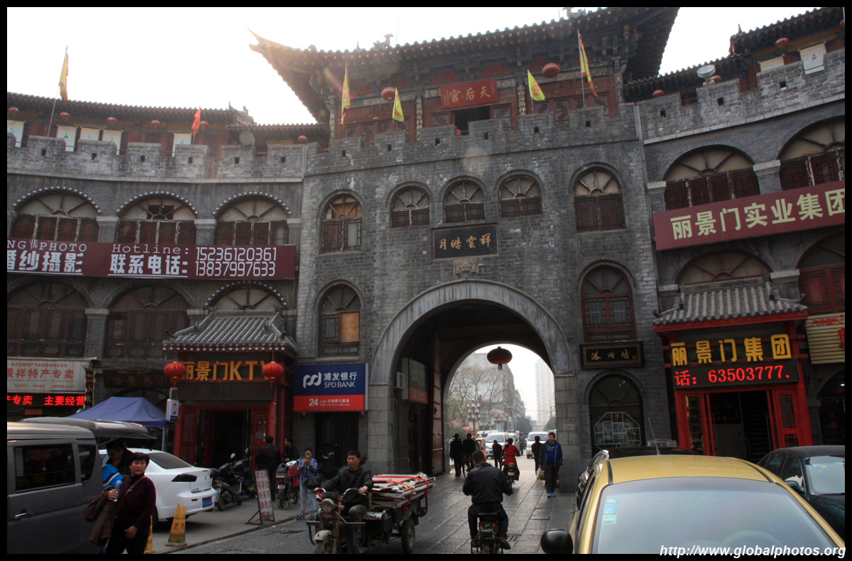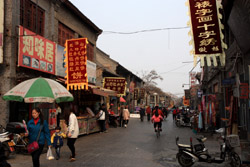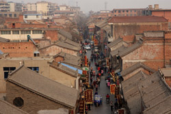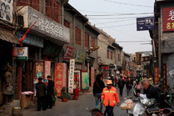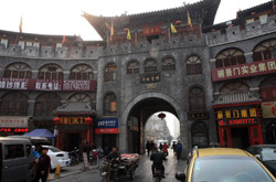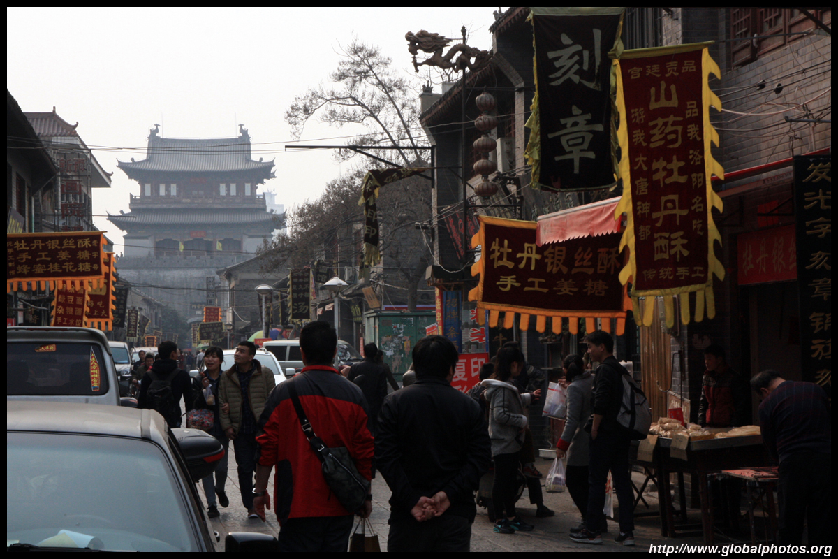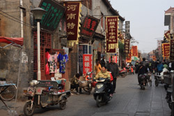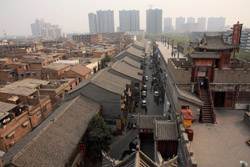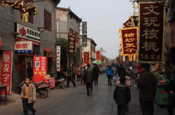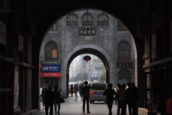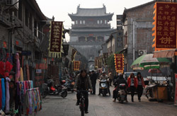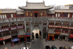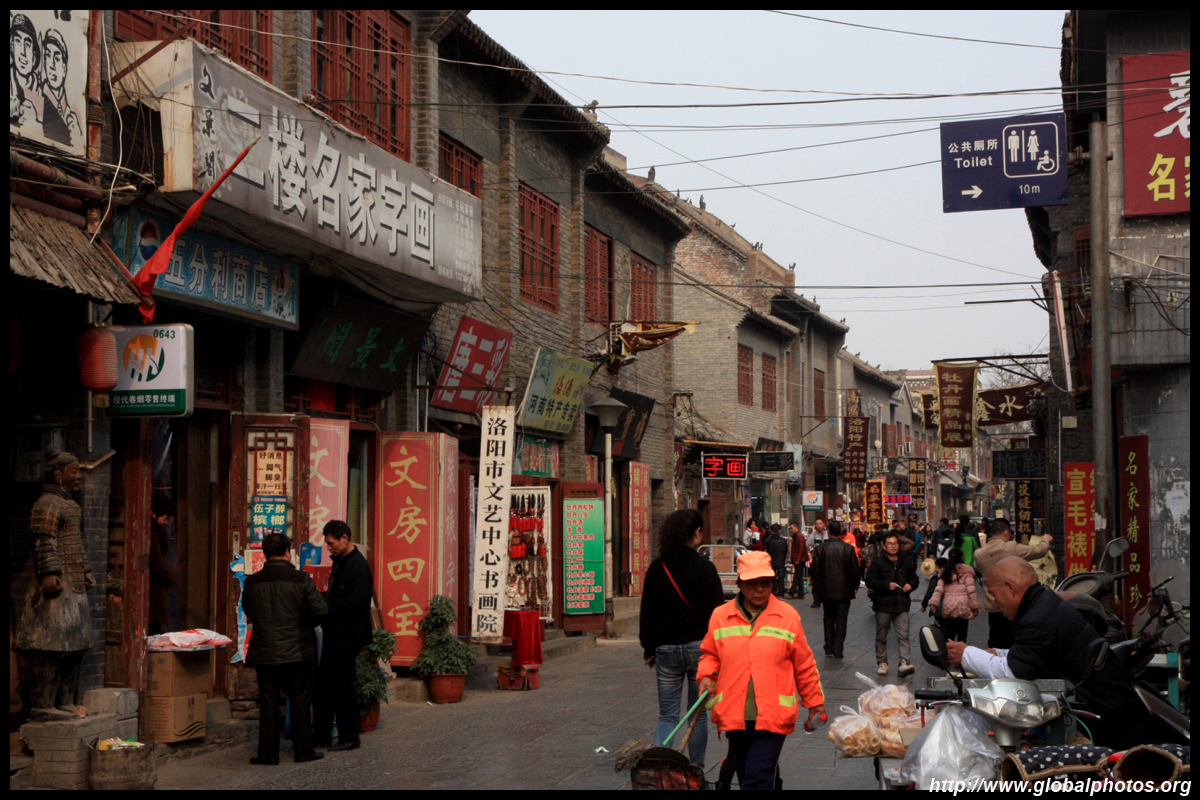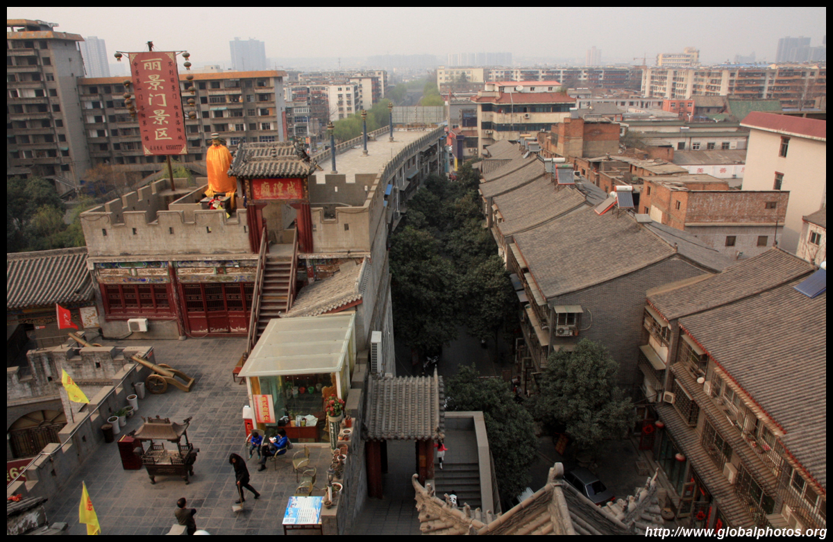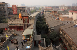 Entry into Luoyang's old town starts at the rebuilt Lijingmen, which follows a lively tourist market through its narrow streets. A small admission allows entry on top of the walls for a view of the city. Today, the gate doesn't separate the urban from the rural areas anymore.