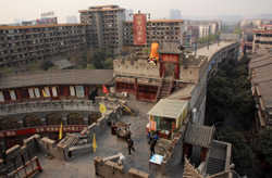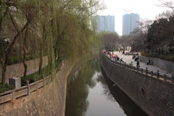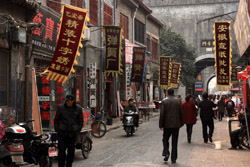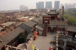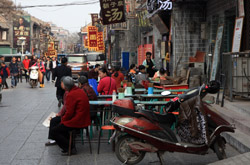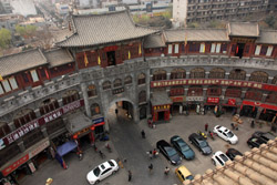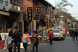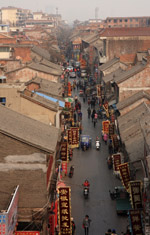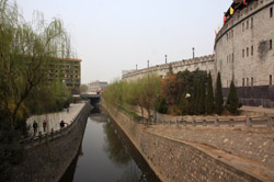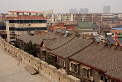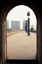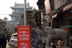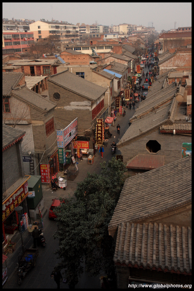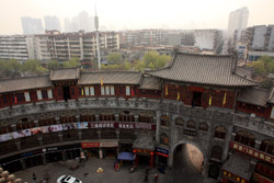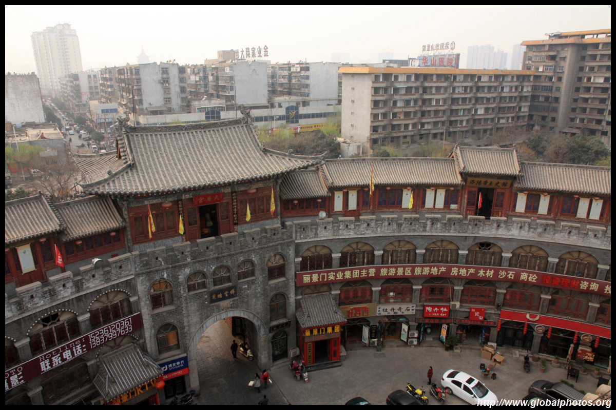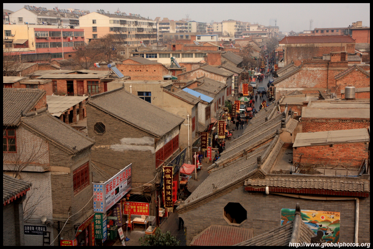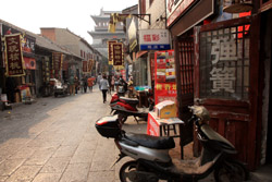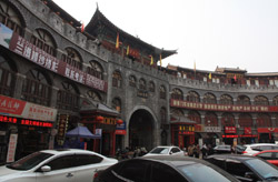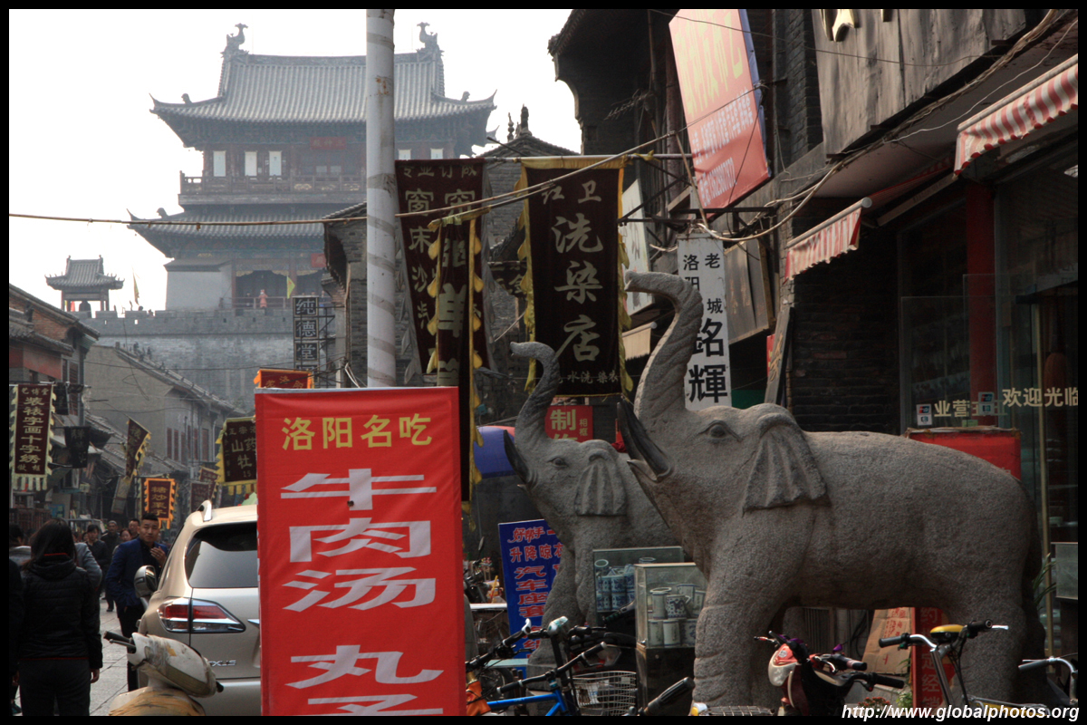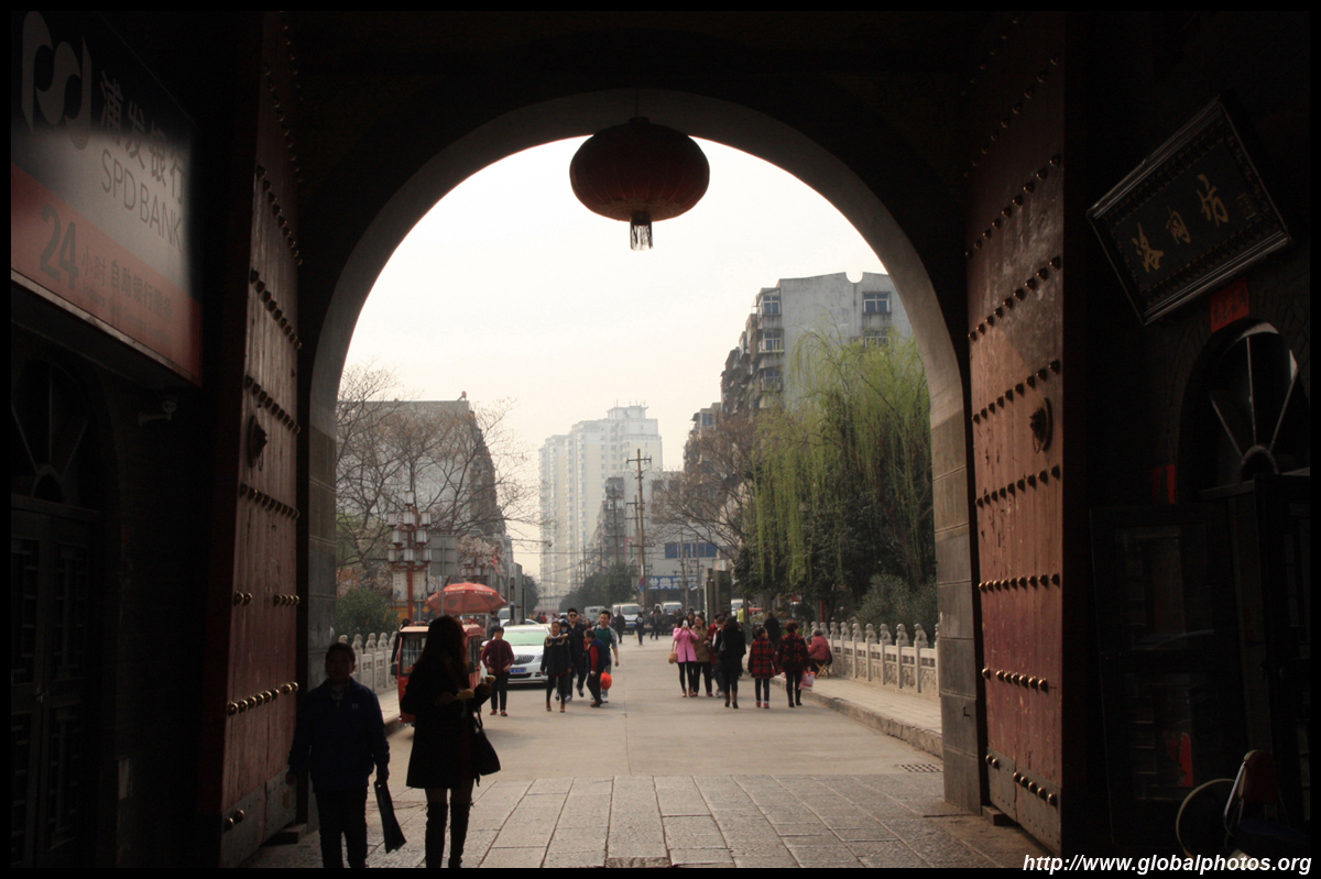 Entry into Luoyang's old town starts at the rebuilt Lijingmen, which follows a lively tourist market through its narrow streets. A small admission allows entry on top of the walls for a view of the city. Today, the gate doesn't separate the urban from the rural areas anymore.