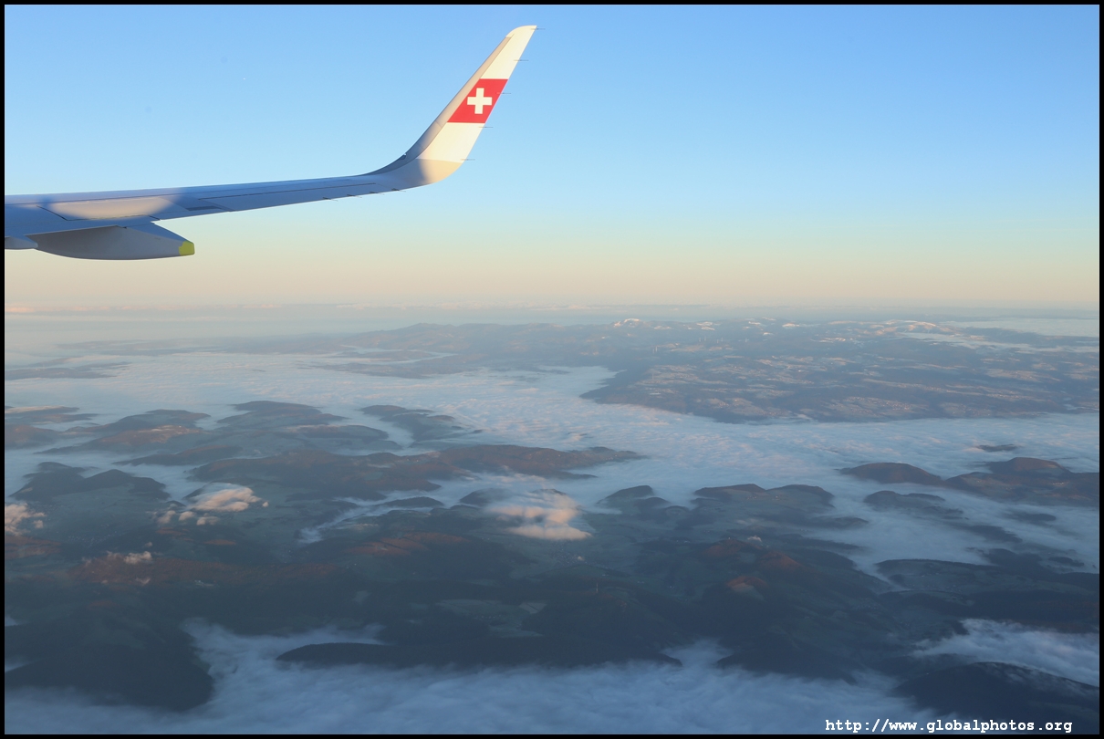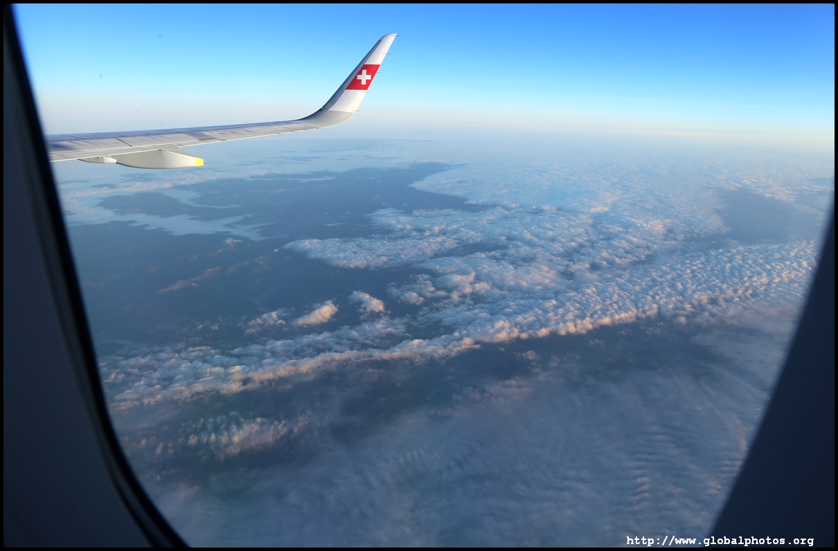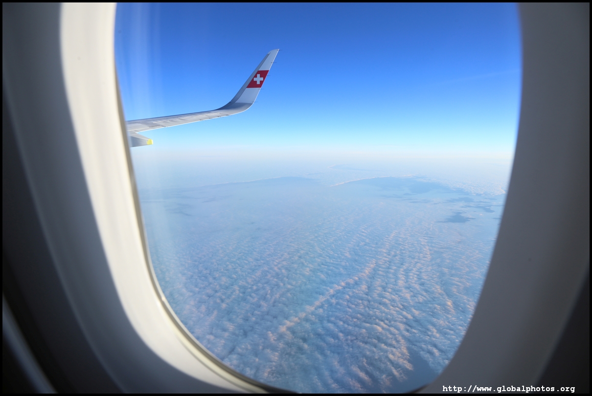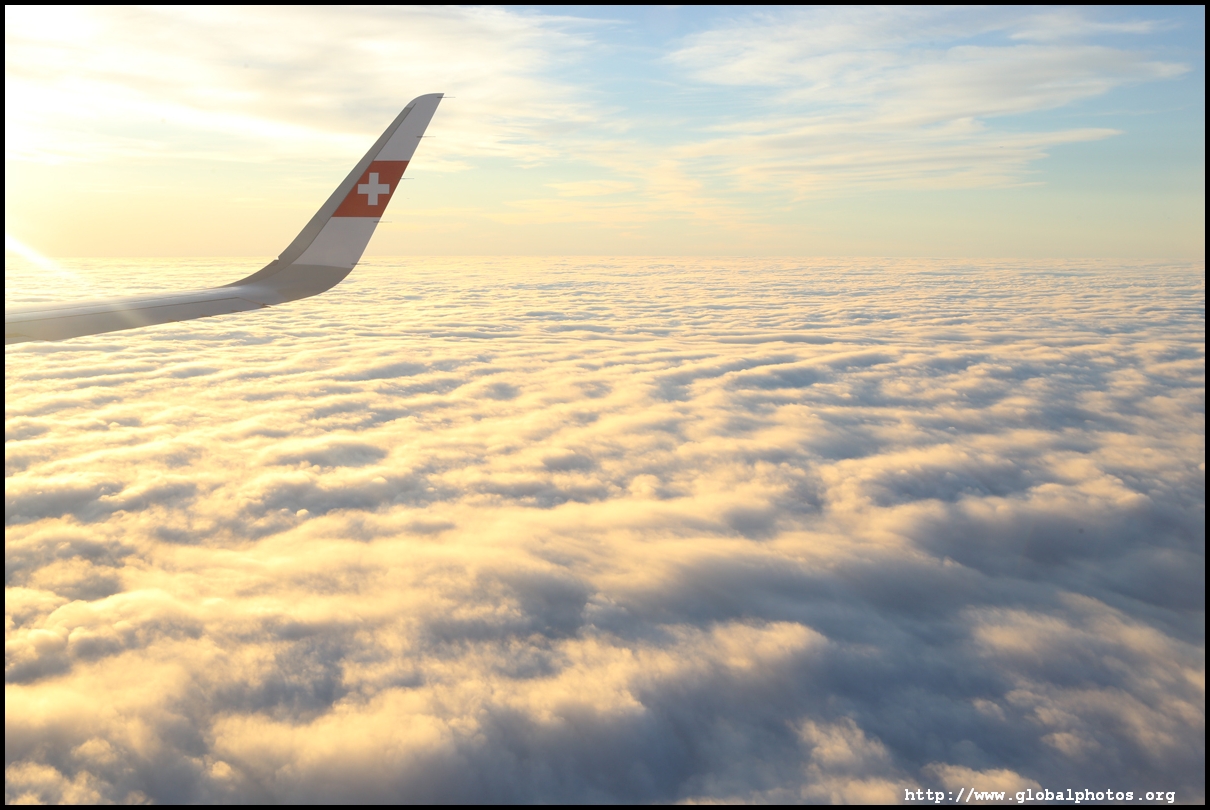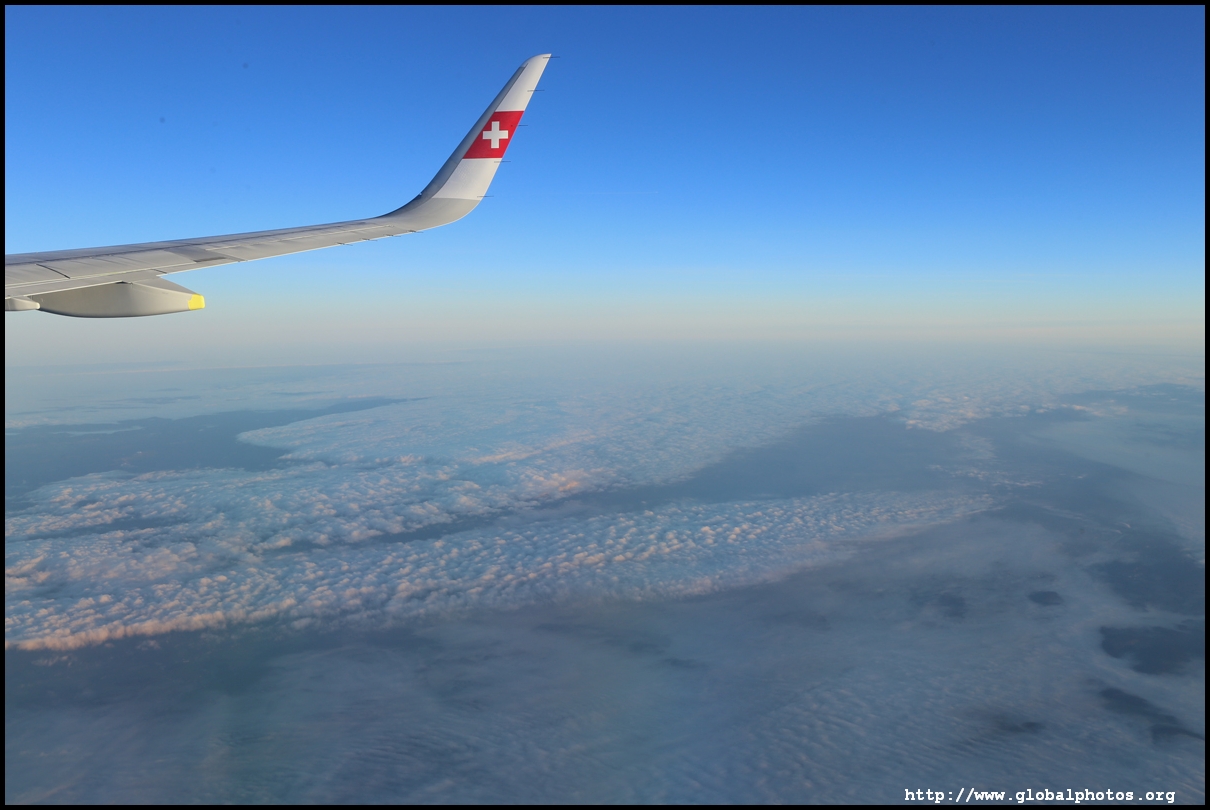 We left the de-icing bay at 8:14am and took off 6 minutes later as the sun started to rise. We rose above the cloud level quickly and it was clear blue sky above.