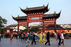 This gate marks the entrance to the Qinhuai tourist area. My first stop is the Zhanyuan Garden, just behind the gate.