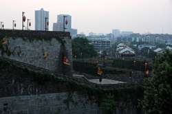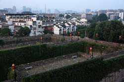 Zhonghua Gate is the main entry point along the historic Nanjing city wall today. The walls date from the start of the Ming Dynasty in the 14th century, and were the most extensive in the world at the time. This is not a simple door in the wall. It is a reinforced defense structure, cemented by mortar frm glutinous rice, with gates within gates and chambers that can confuse and trap the enemy.