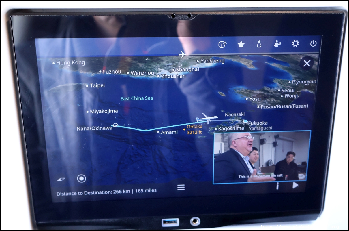 I didn't quite believe that but have to reluctantly accept my fate. I settled into my seat just shy of 10:30am. I snatched up a left window beforehand (seat reservation was free as part of the original redemption) hoping to get some good views of Fukuoka on arrival. We ended up pushing back at 10:47am, almost a full hour behind schedule, and chances of catching my Haneda flight are now slim. The IFE had a lot of entertainment options for this short domestic flight. The safety video featured Pokemon but also reminded us not to take photos of other passengers and crew without permission, a strange statement and a first on all my travels. We took off towards the south at 10:58am for the hour and a half flight to Fukuoka. Luckily, the weather was not a washout this morning and I got pretty decent views of Okinawa as we looped around to continue north. I haven't taken Japanese airlines for a number of years and I wasn't sure what to expect on their domestic flights. For comparison, sandwiches were offered on my last short flight from Taiwan so I was expecting a meal of some sort for today's longer flight. However, it seems Japanese airlines have taken a page from cost cutting. We were only offered a drink and no other food. The crew had a laminated sheet showing the options. Besides the typical water and juice, the was a beef soup available, which I picked out of curiosity. It was fairly salty! We skirted along Kyushu's western coast and I could spot Nagasaki's island airport below. So it was a bit strange that the remaining flight time seemed a bit long with Fukuoka not far away. Following the flight map, it soon became obvious we would be taking a very long approach into Fukuoka with a number of loops in an S-shape. By now, I pretty much gave up hopes of making my Haneda flight. It was a bit hazy out there as well so I couldn't make out the city in the distance. We landed at 12:32pm, almost an hour behind. By now, the next flight to Haneda would be 2 minutes past its departure time.