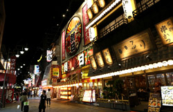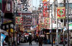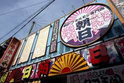 After the original tower was destroyed by fire in 1943, the second-generation Tsutenkaku Tower opened in 1956 and saw over 1 million visitors in 1957. As the district declined, so did its popularity, with less than 200,000 visitors by 1975. The 108m-tall tower is now dwarfed by many other buildings in the city, but its observation deck still commands decent views of the city from a different perspective.