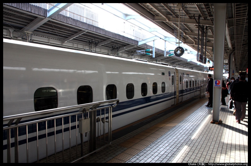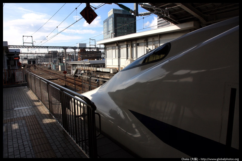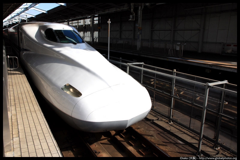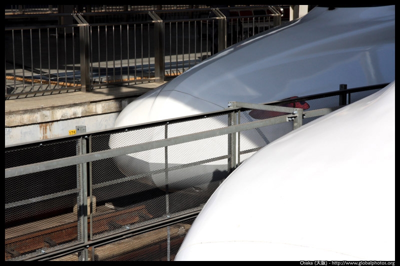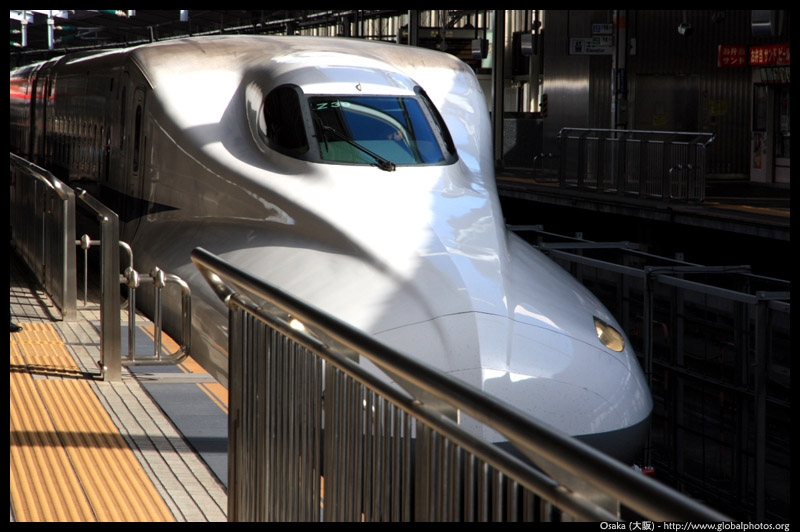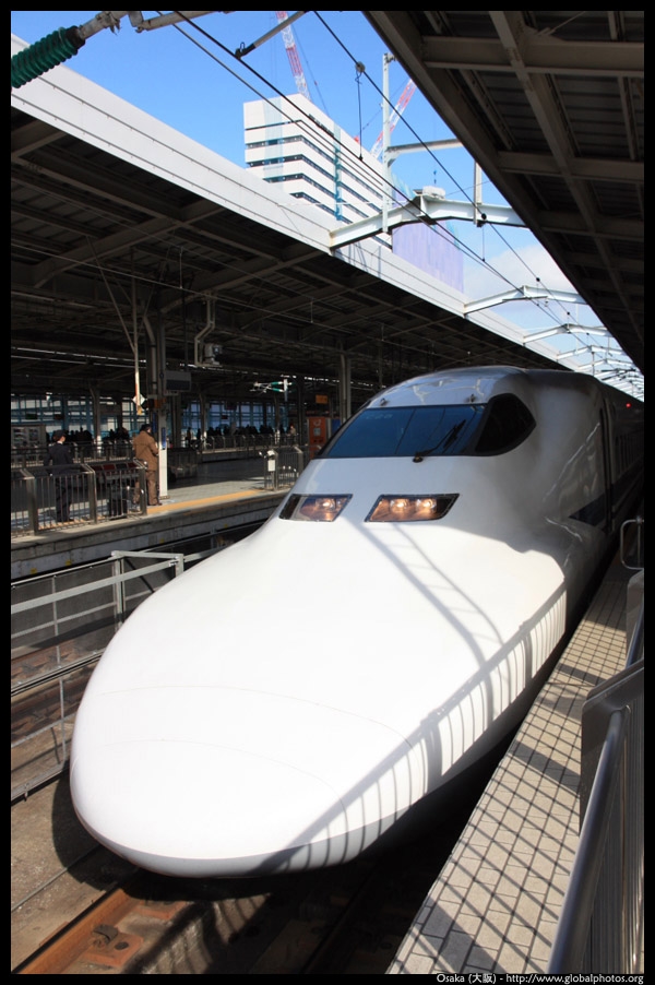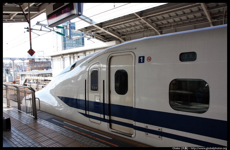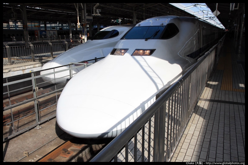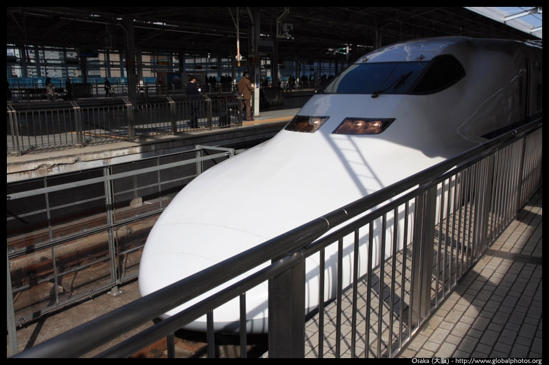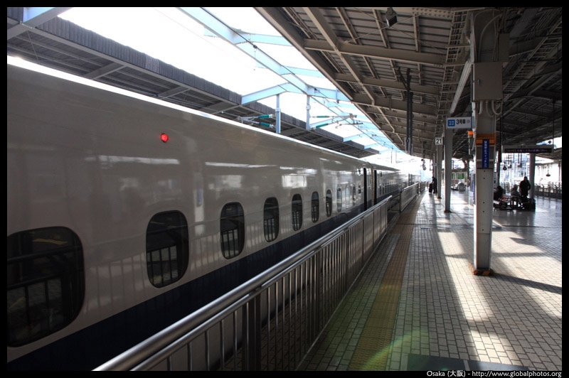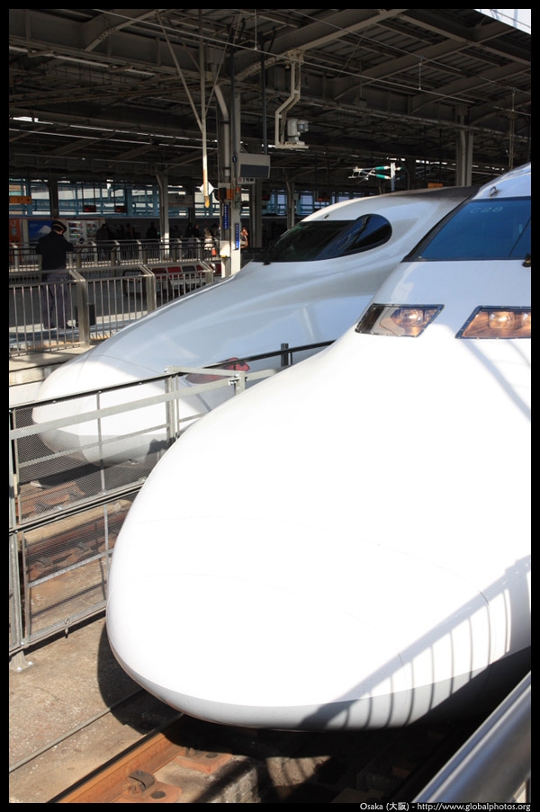 The Shinkansen runs very frequent service from Osaka to Tokyo and points west. They stop at segregated platforms at Shin-Osaka station, so a Shinkansen ticket is needed to spot and photograph these trains.