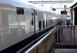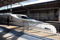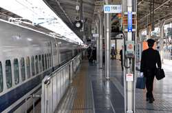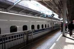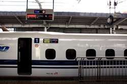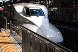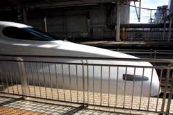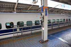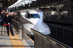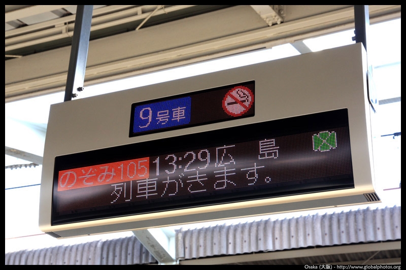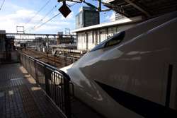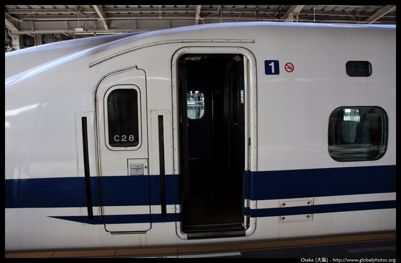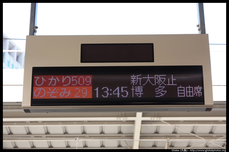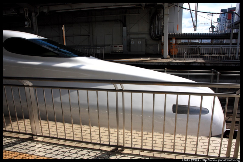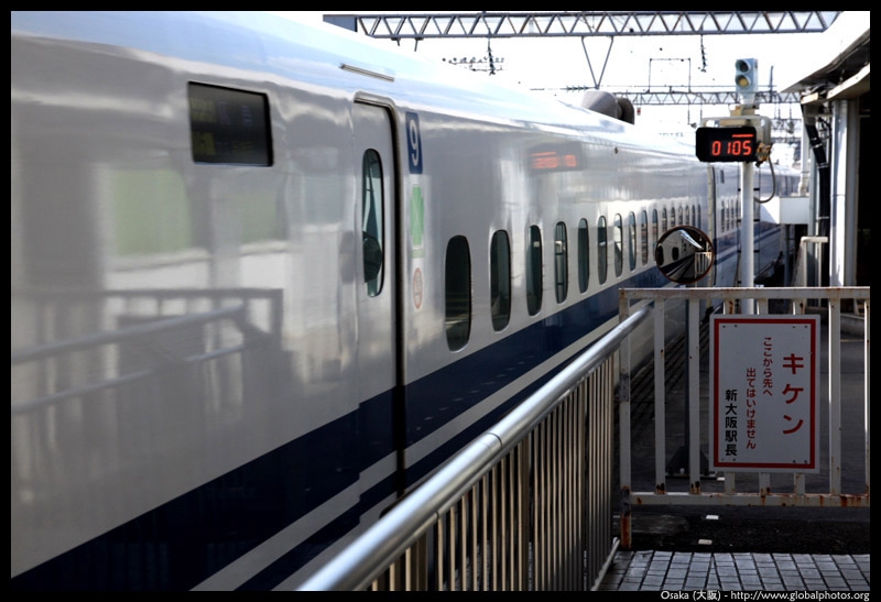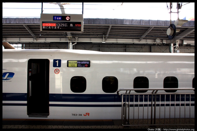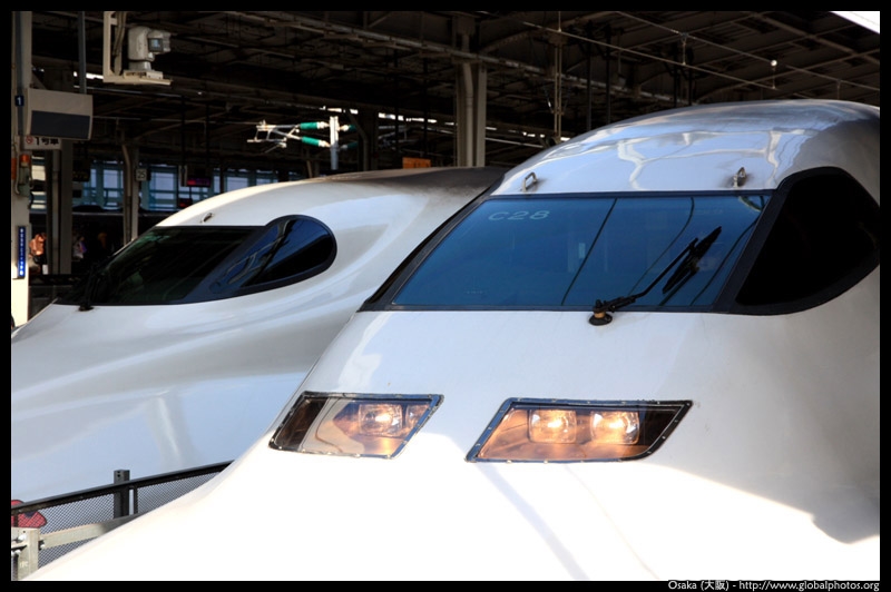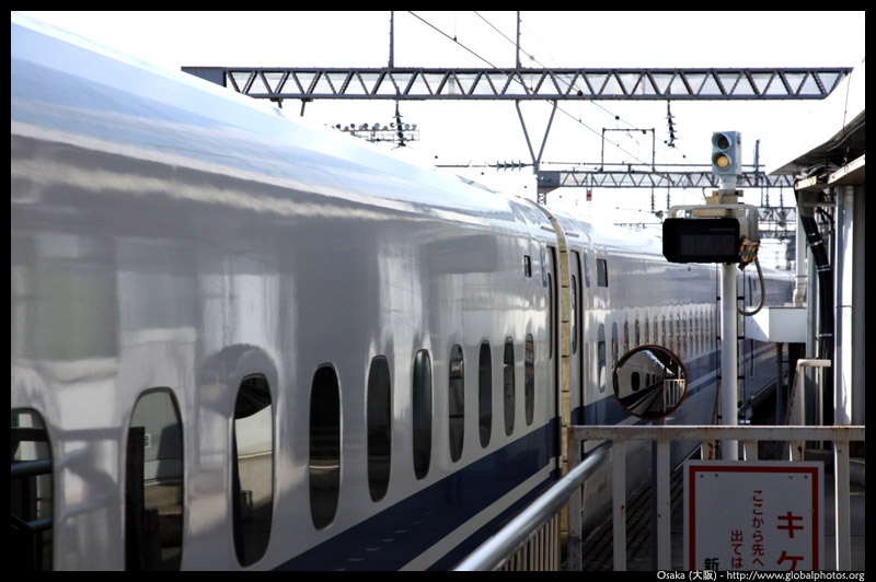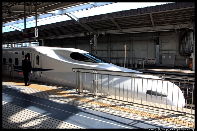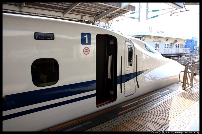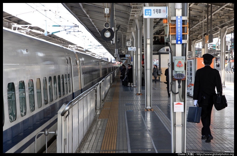 The Shinkansen runs very frequent service from Osaka to Tokyo and points west. They stop at segregated platforms at Shin-Osaka station, so a Shinkansen ticket is needed to spot and photograph these trains.