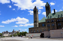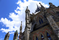 Parliament consists of 3 buildings atop Parliament Hill. The Centre Block, the main building with the distinctive Peace Tower, houses the chambers of the House of Commons and the Senate. The East Block housed the first Prime Minister's office. Members of Parliment work from the West Block.