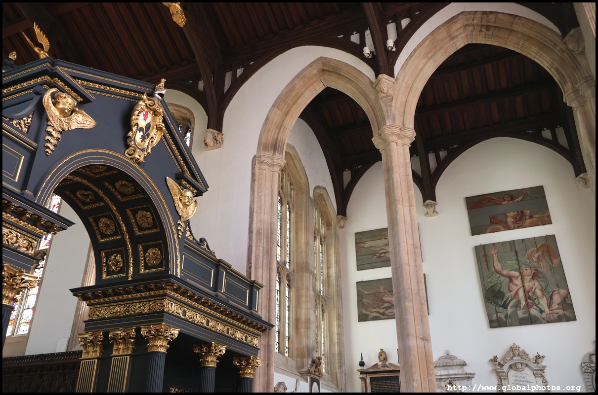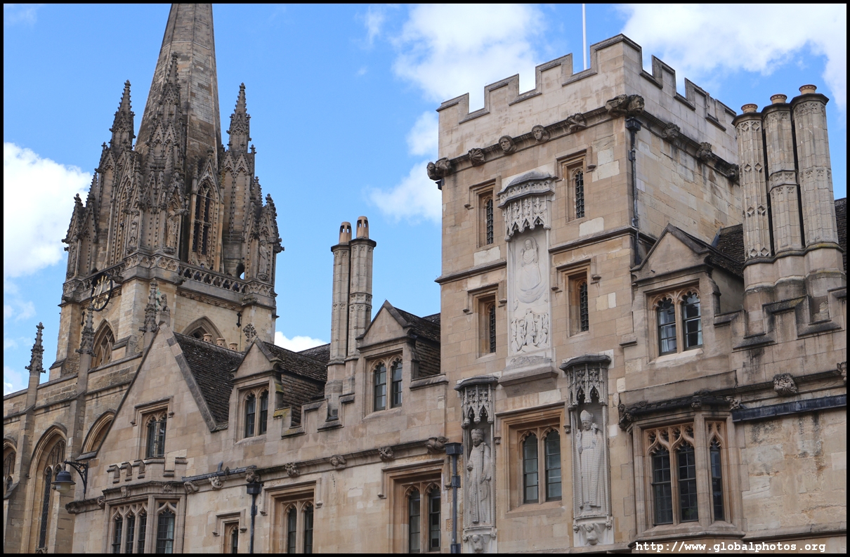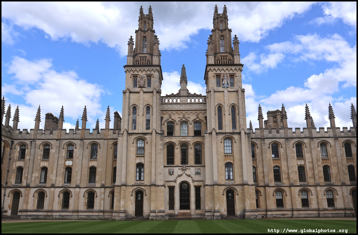 All Souls College is just to the east and admits only "fellows", or distinguished scholars, through election by existing fellows or by exam.It was planned and built in the early 15th century by the Archbishop of Canterbury, receiving its foundation charter from King Henry VI in 1438. It was envisioned as an institute of advanced study, a graduate college in today's speak, so it historically never admitted undergraduates. The Gothic chapel includes a black baroque screen designed by Sir James Thornhill in 1716.