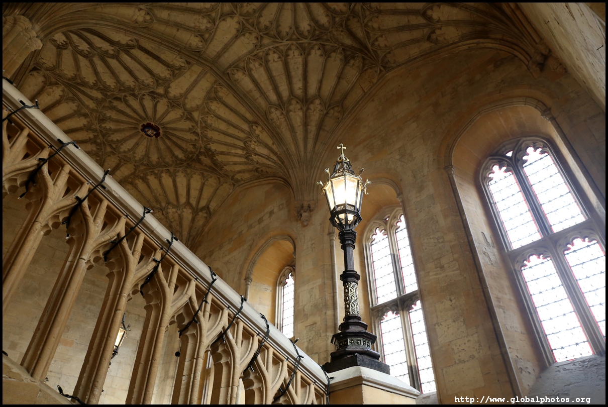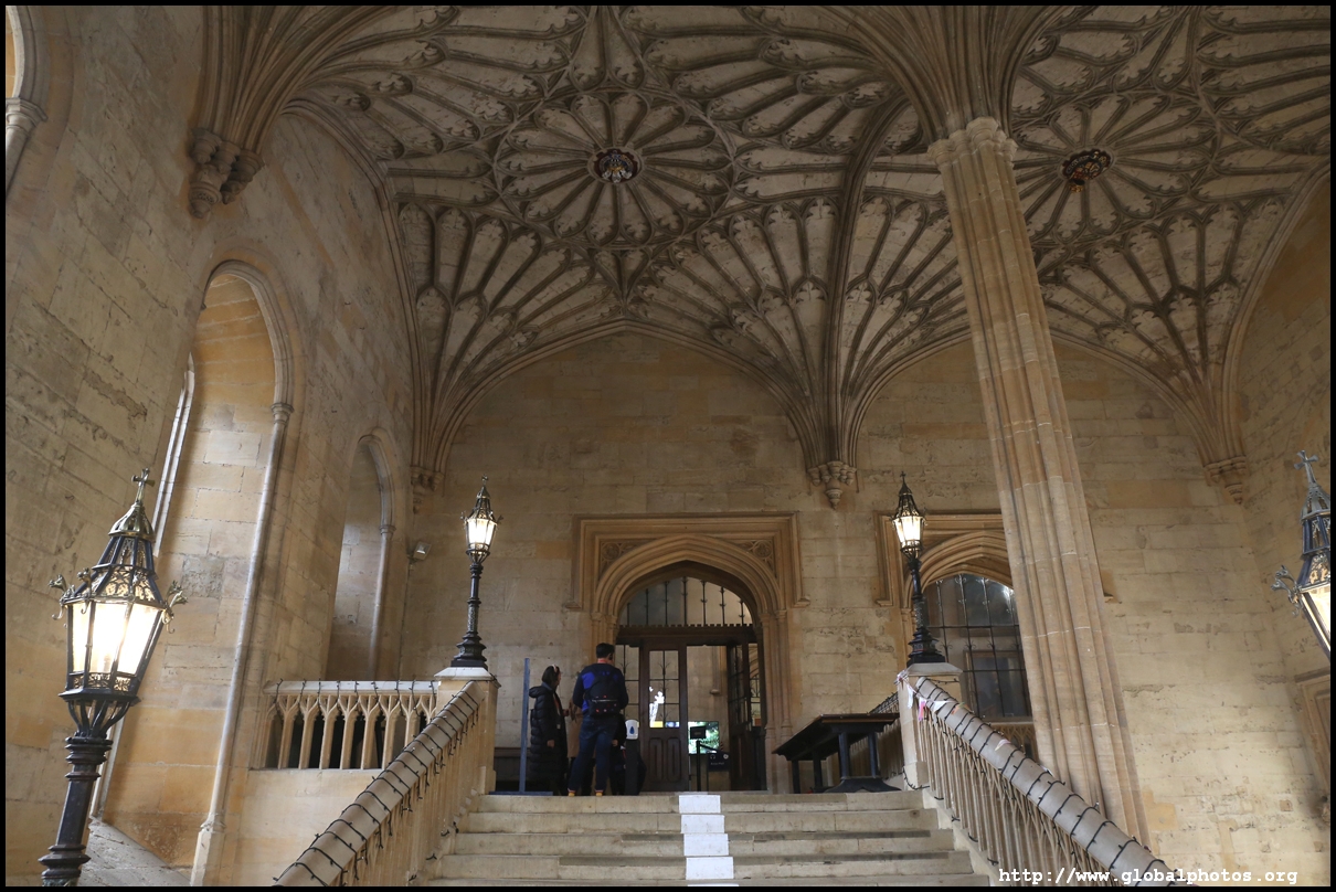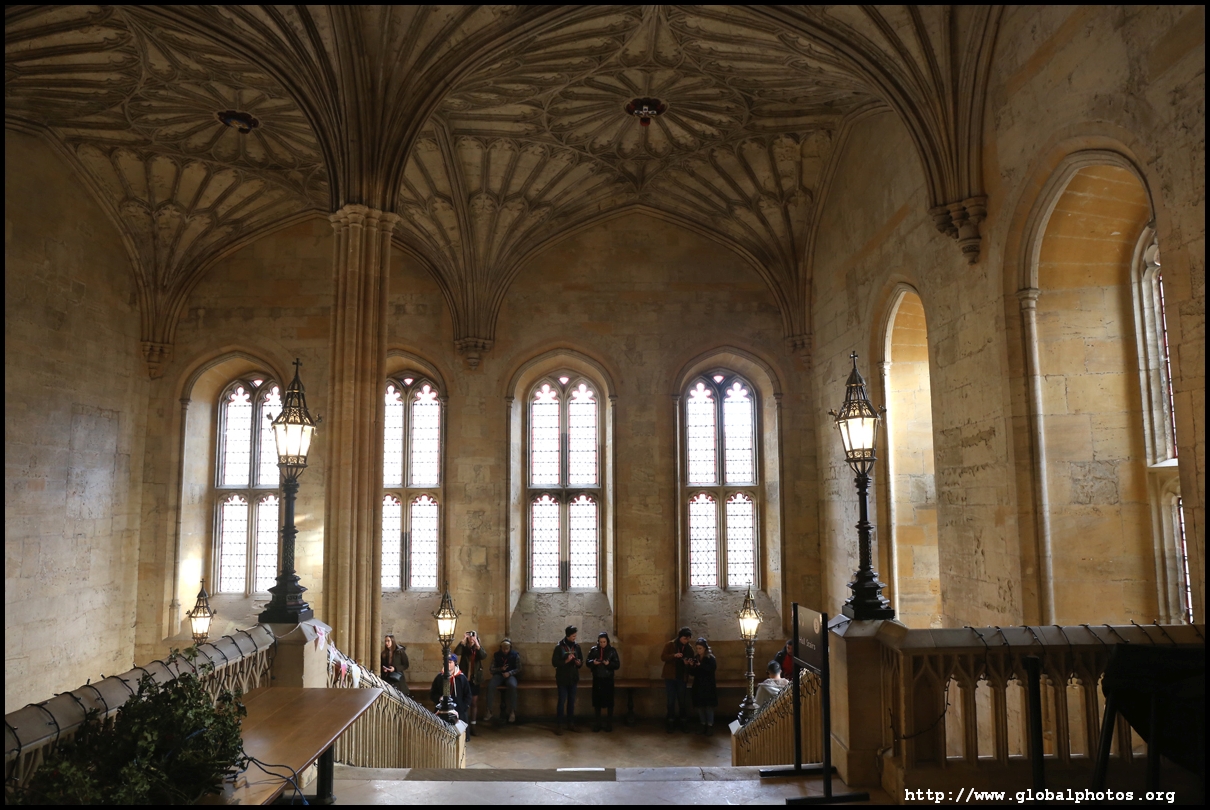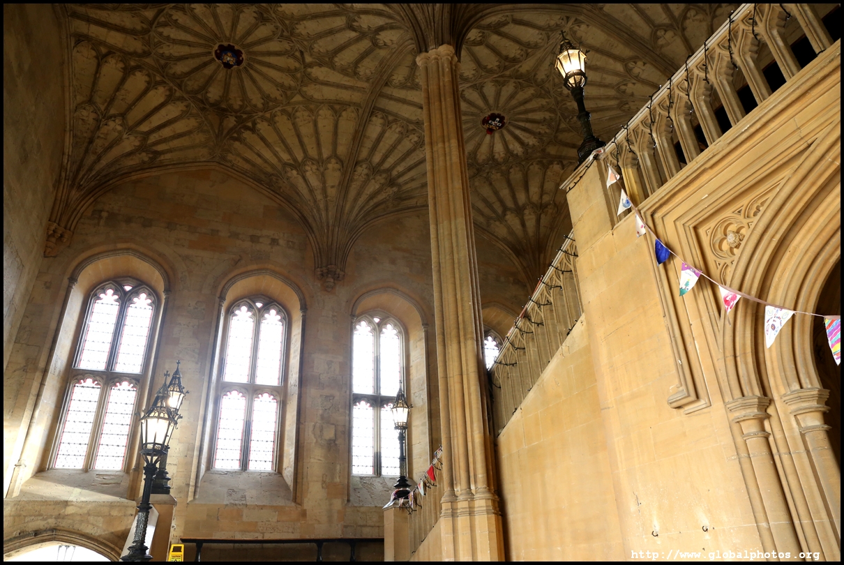 The first major interior space to visit is the Bodley Tower, where I climbed up the staircase to reach the Great Hall. Built in the early 19th century, the fanned ceiling design is actually far older, having been installed before the 17th century civil war.