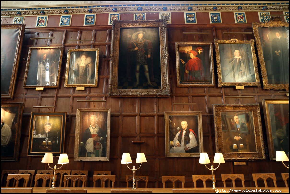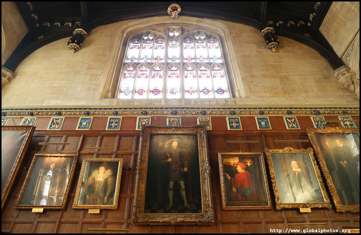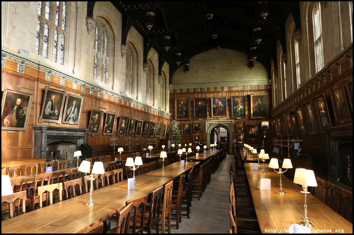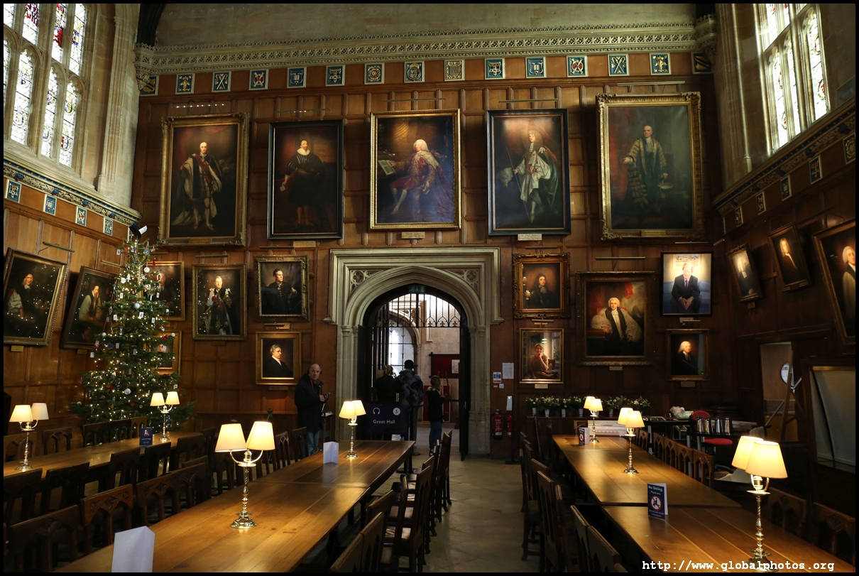 The Great Hall was completed in the 1520s and was the larest hall in Oxford until the 1870s. The portraits on the walls show famous members of the college, and they have a fairly distinguished group of alumni, including 13 British Prime Ministers. This hall was featured in the Harry Potter films as Hogwarts' dining hall.