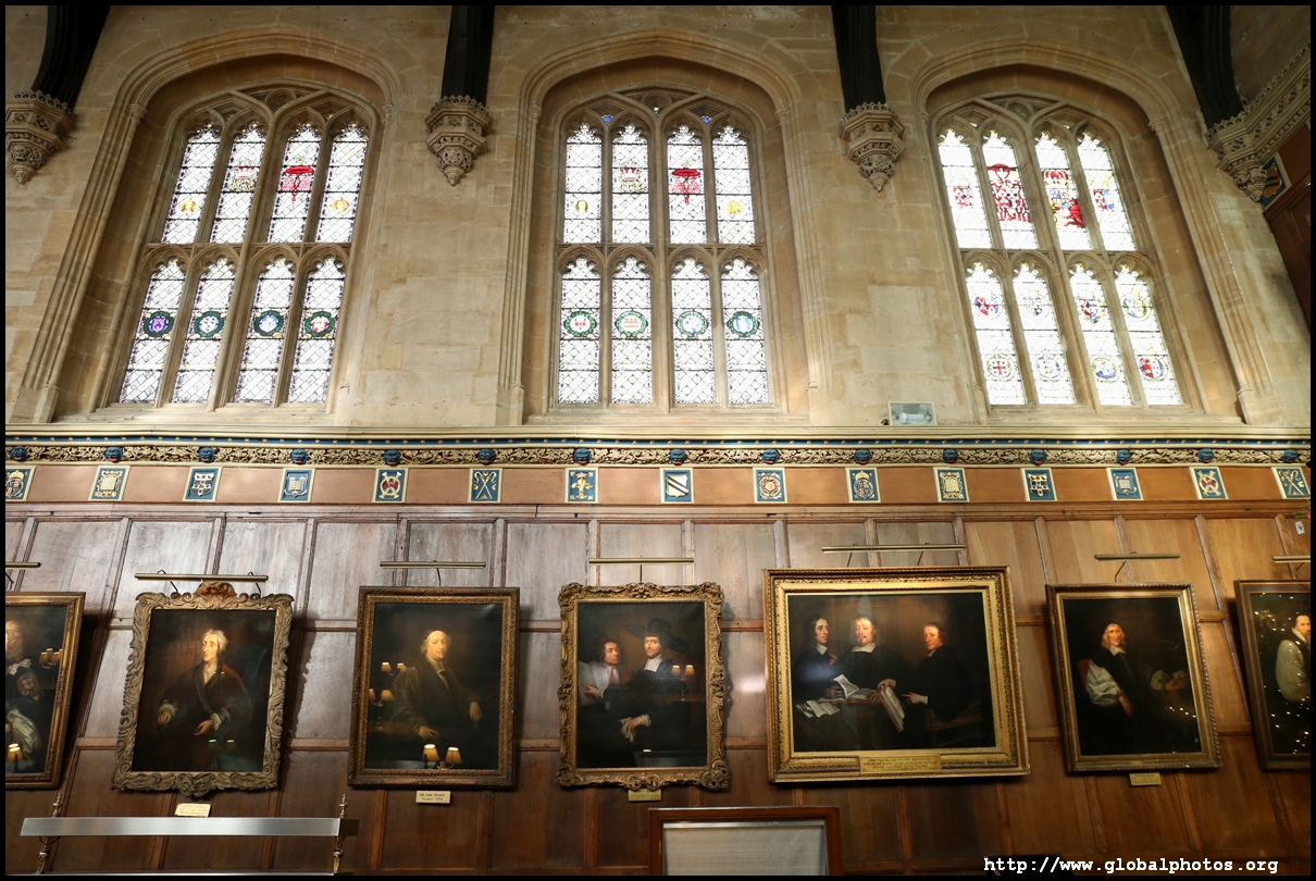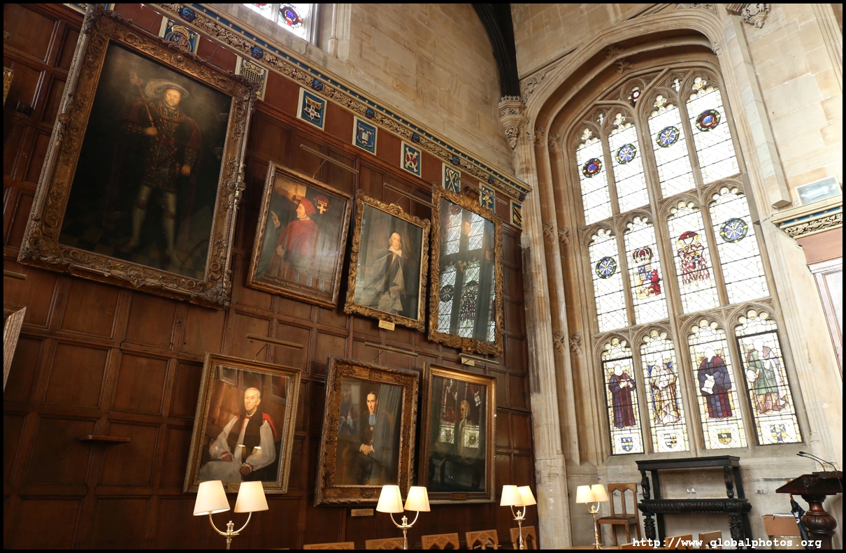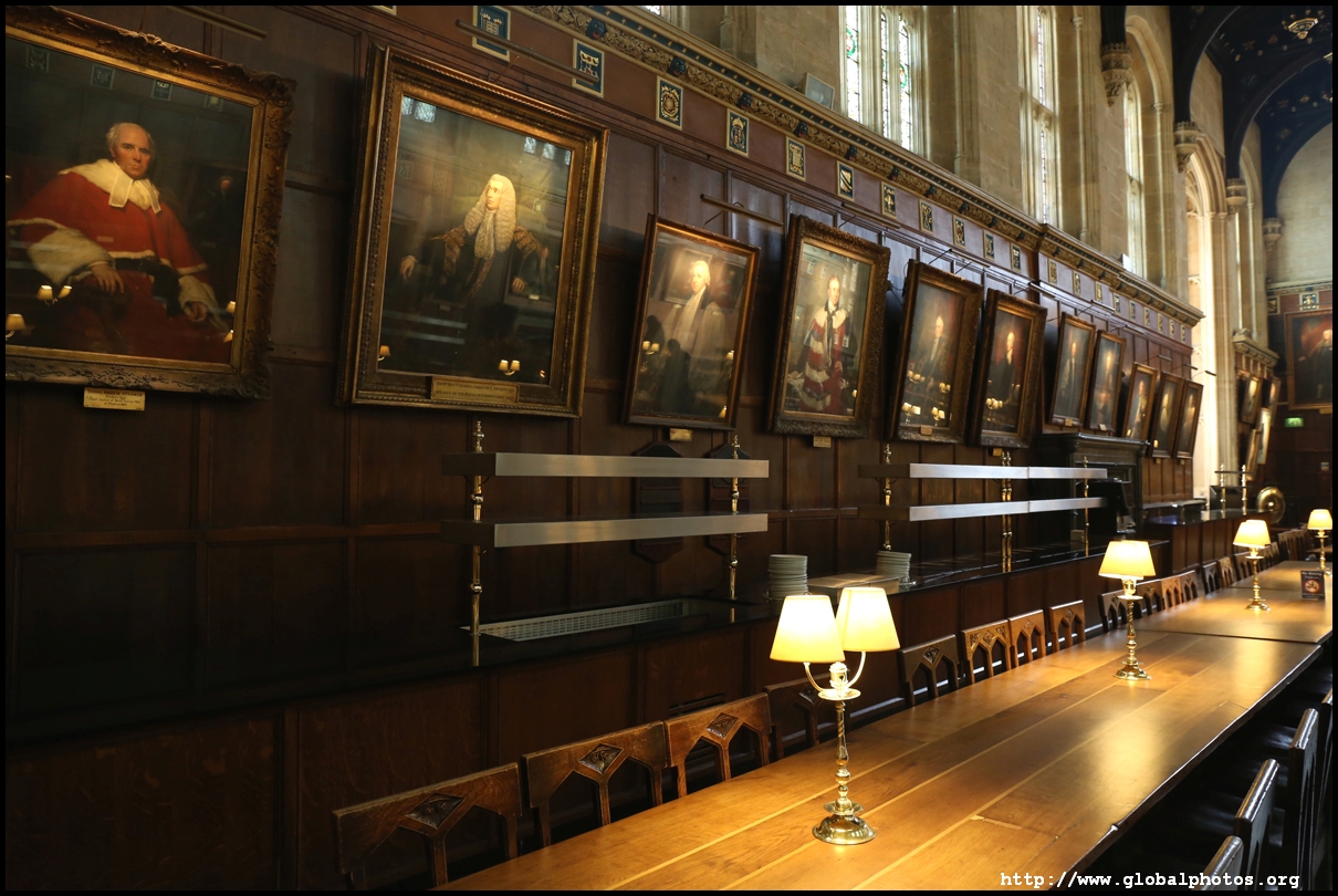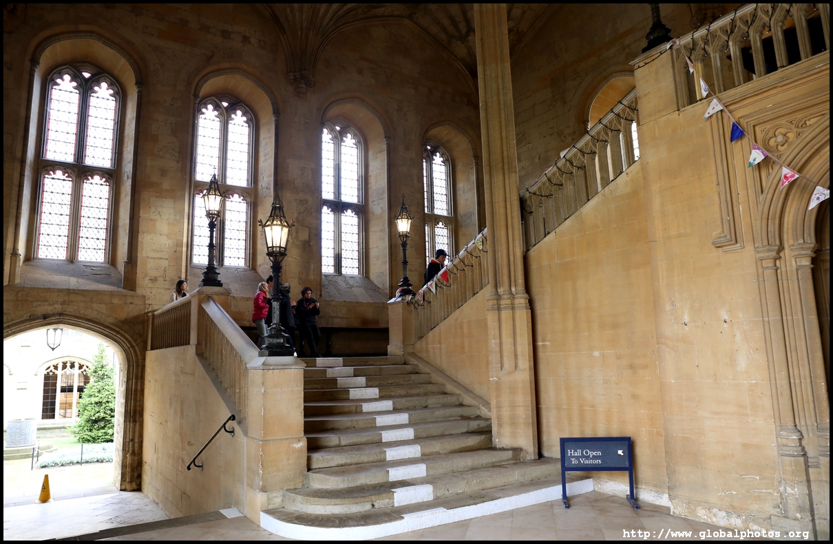 The Great Hall was completed in the 1520s and was the larest hall in Oxford until the 1870s. The portraits on the walls show famous members of the college, and they have a fairly distinguished group of alumni, including 13 British Prime Ministers. This hall was featured in the Harry Potter films as Hogwarts' dining hall.