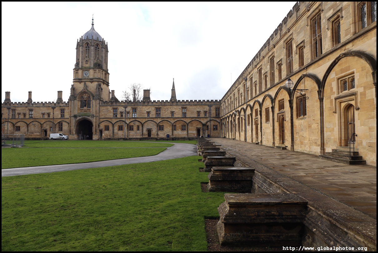 On the other side is the Tom Quad, which is framed by the 17th century Tom Tower, whose bell, Great Tom, has been heard across Oxford since 1684 to signal curfew time for students to return to college. The 101 himes are rung at 9:05pm, which is Oxford time for 9pm that was retained even after GMT was adopted in 1852.
